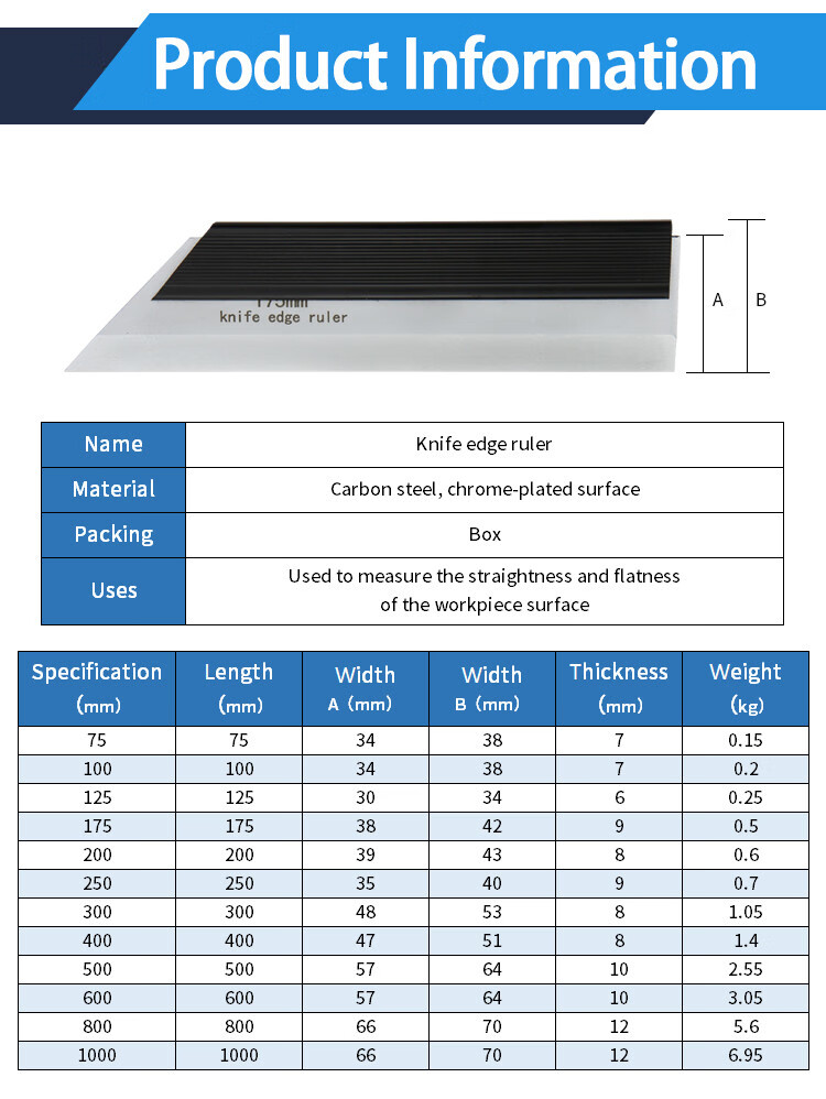 Yuren carbon steel surface chrome-plated blade ruler blade flat ruler elevator car cylinder head flatness measuring ruler 75mm