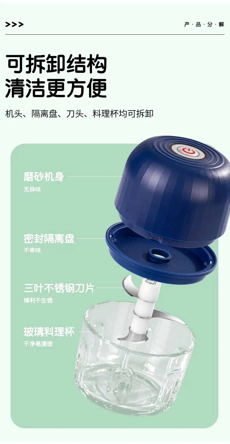 Electric garlic press Typec rechargeable cooking machine minced food garlic masher cooking machine blue + 260ml + high power