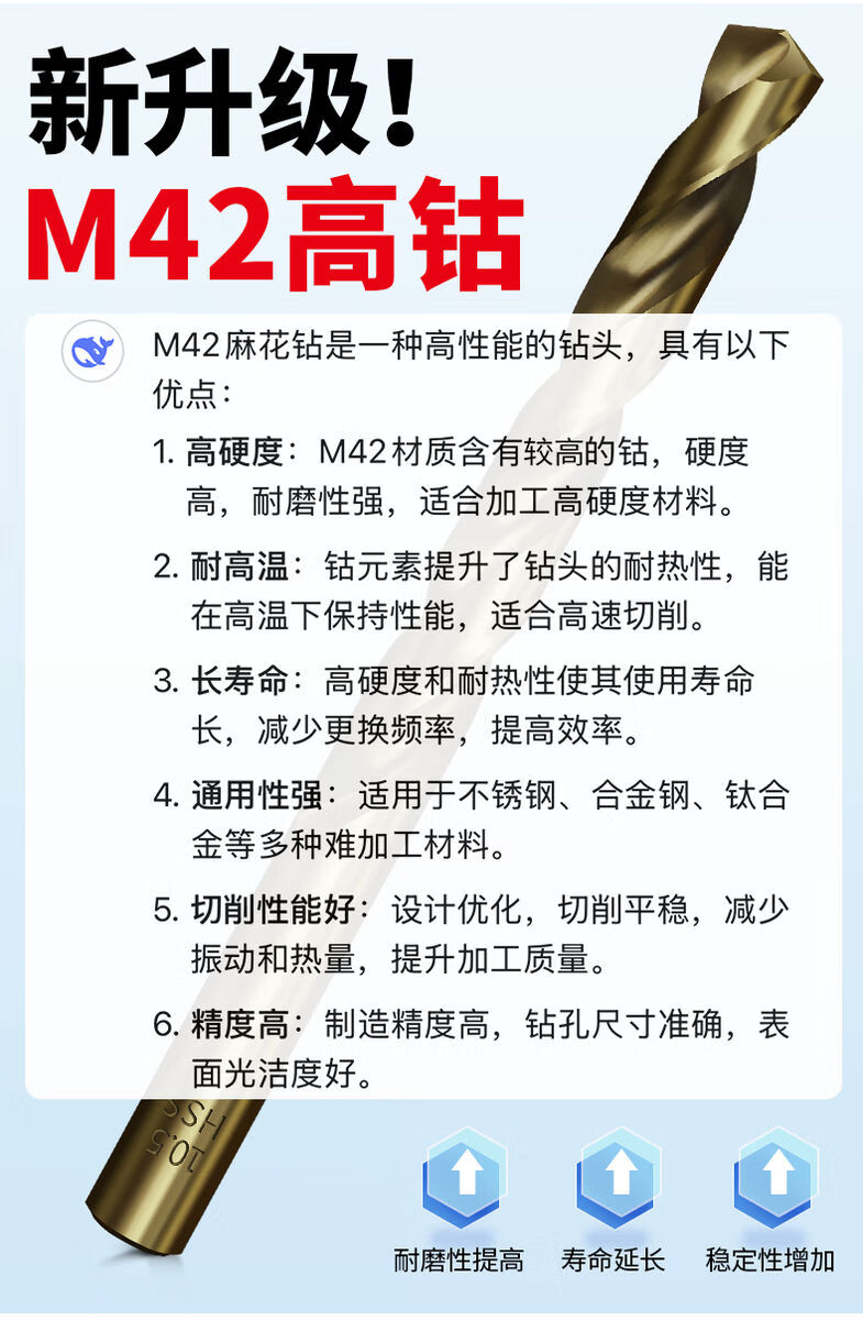 Wing Fantasy High Cobalt 42 Twist Drill Electric Drill Straight Shank Drill Bit High Hardness Iron Box 19 Pieces Cobalt Twist Drill