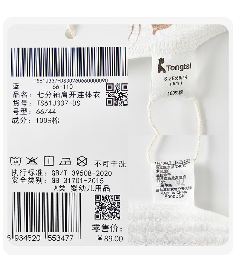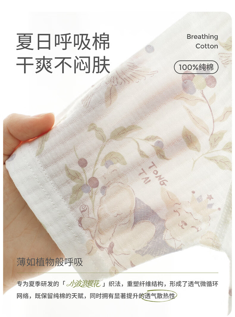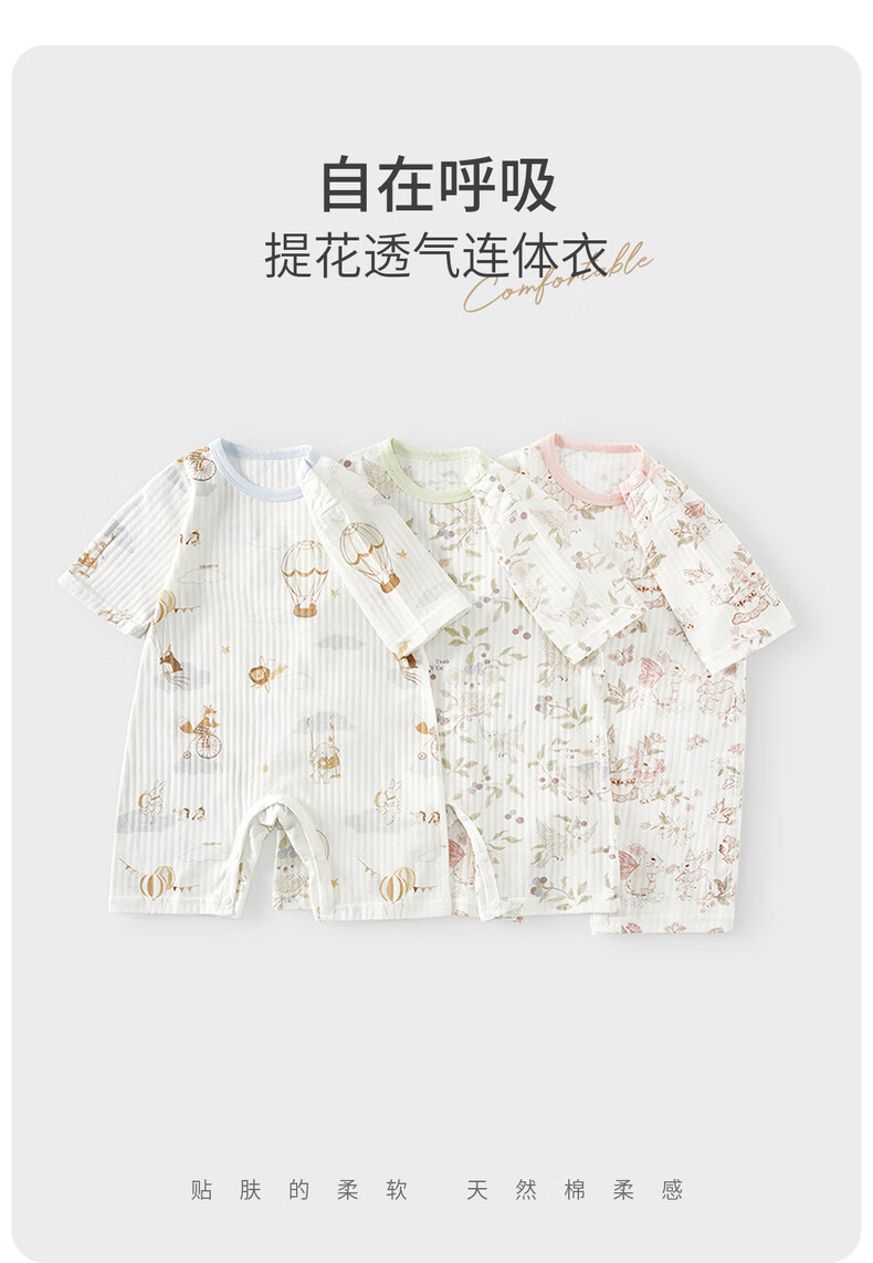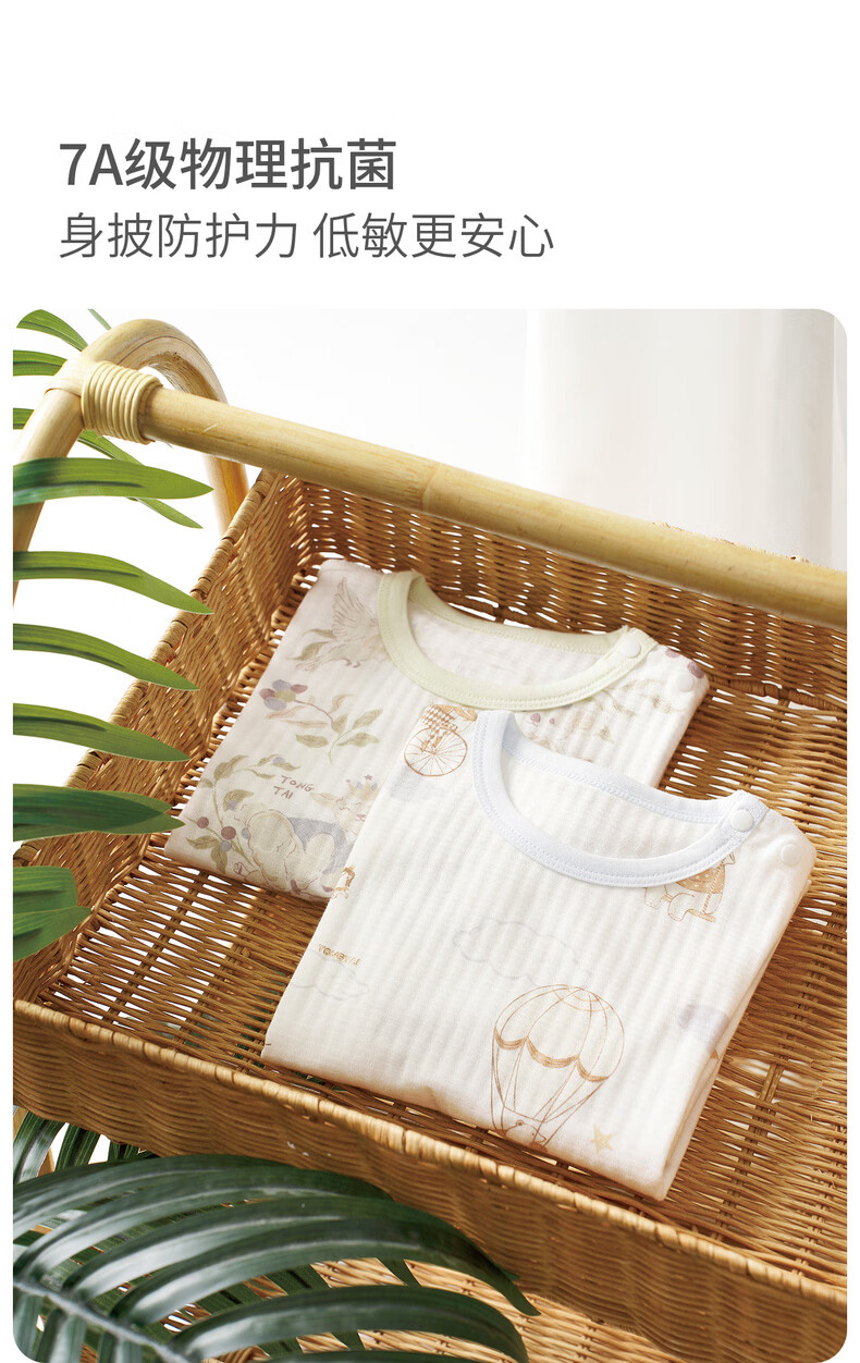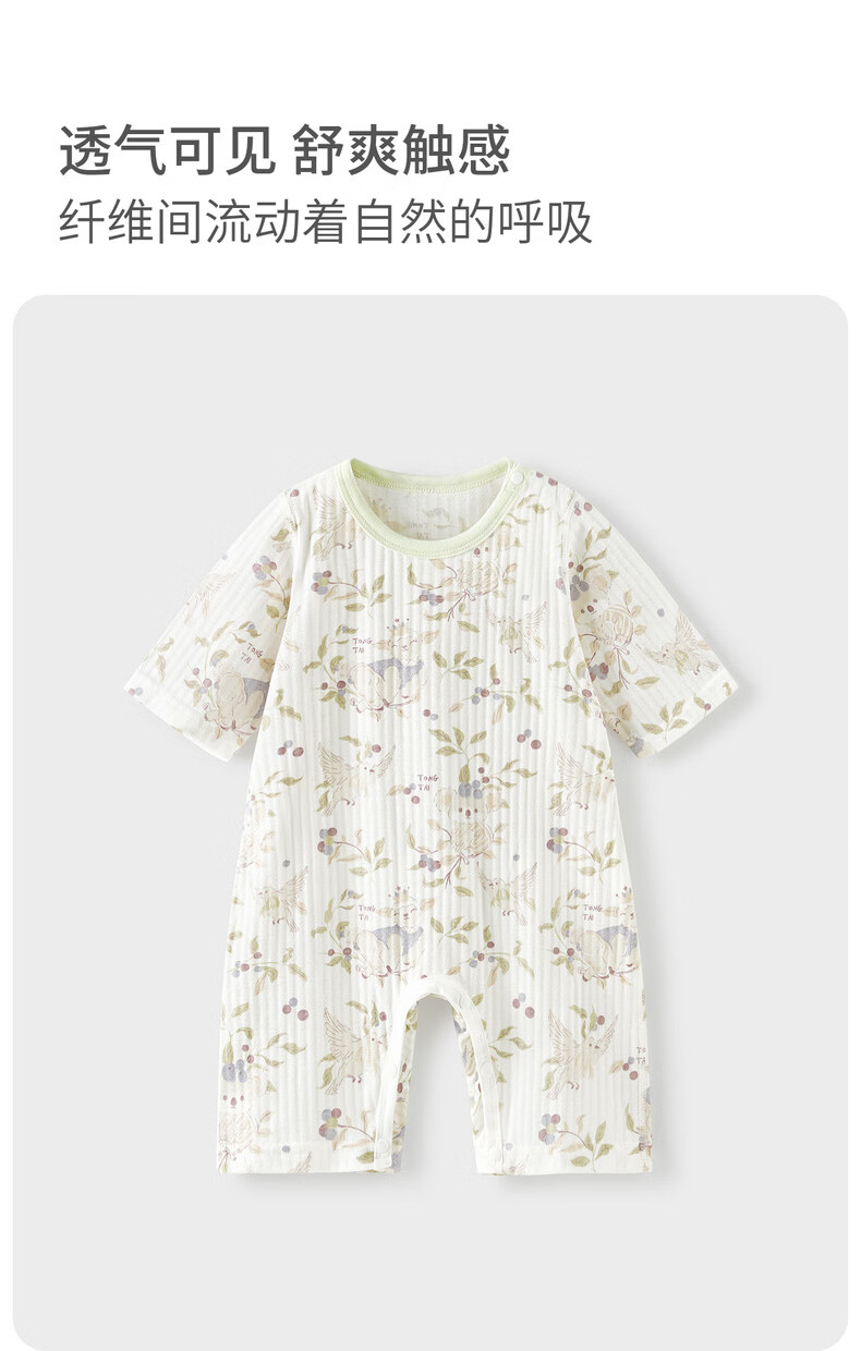 Tongtai (TONGTAI) baby jumpsuit, summer pure cotton baby clothes, children's three-quarter sleeves, nine-quarter pants, romper, pajamas, blue 66cm
