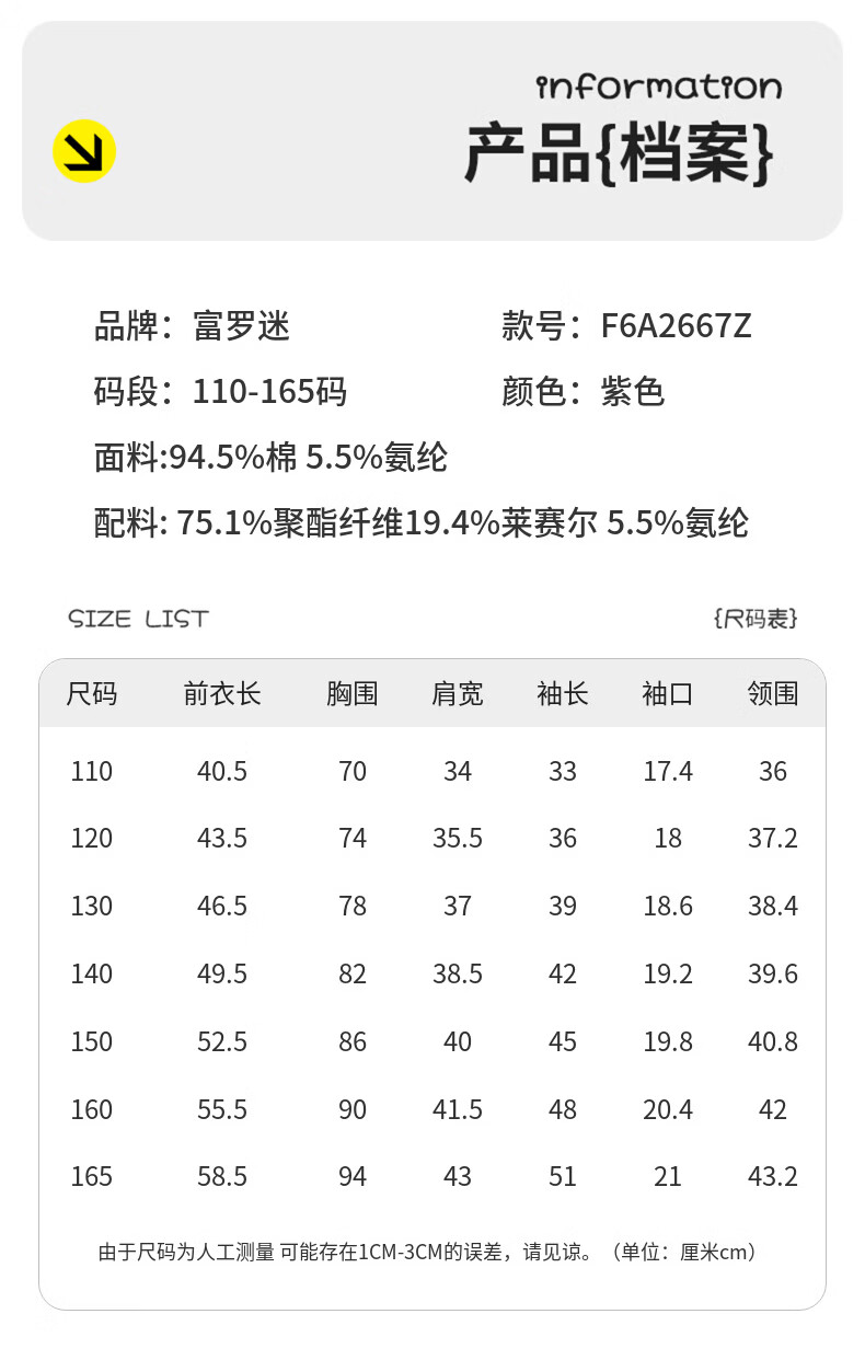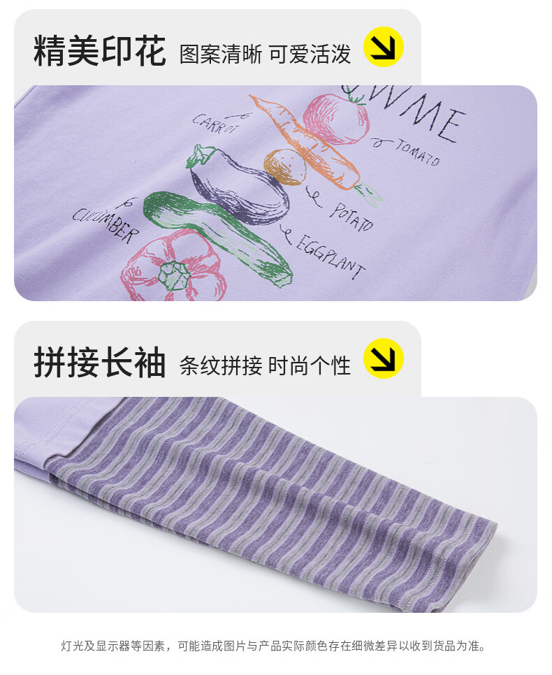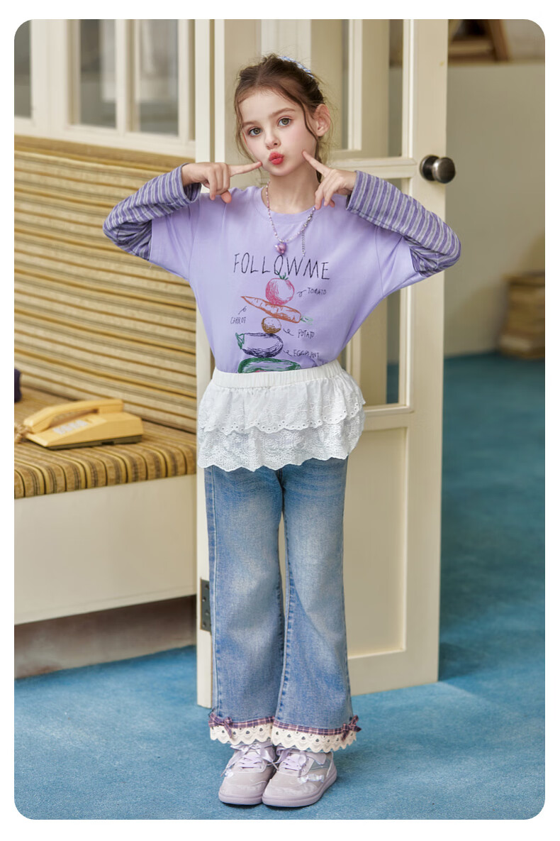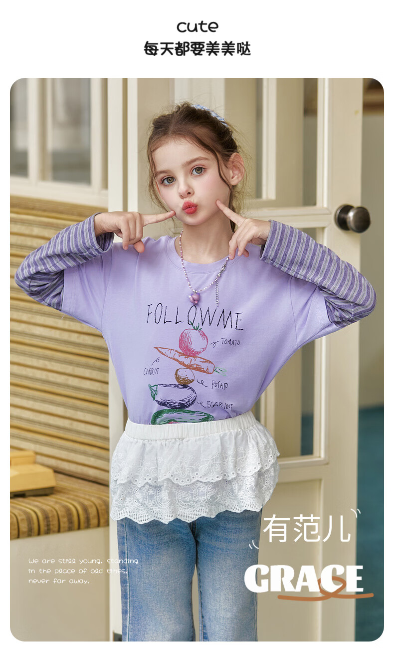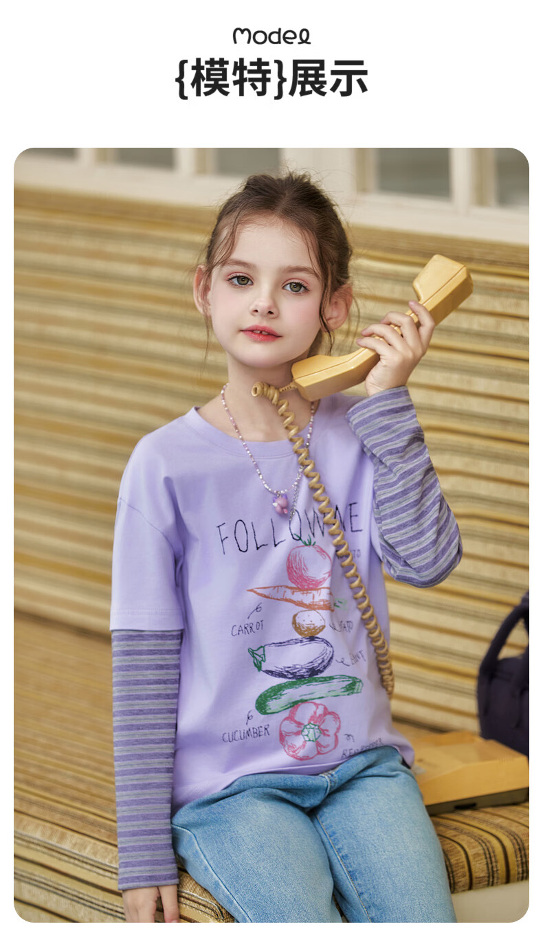 Fuluomi girls fake two-piece T-shirt spring new casual striped stitching long-sleeved T-shirt purple 110