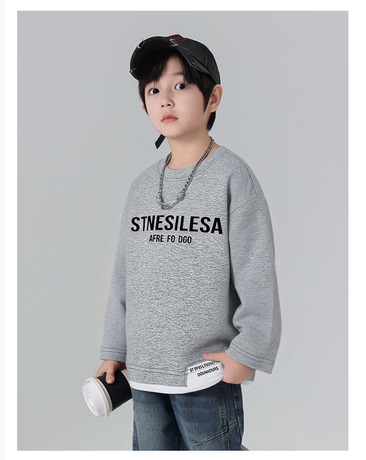 Yoyo Fairy Tale Children's Long Sleeve T-shirt Spring and Autumn Cotton Comfortable 2026 Boys' Spring Bottoming Shirt Medium and Big Children's Top Fashionable Gray Don't be too big, if you are too fat you can go up one size 110