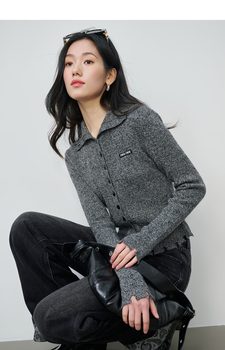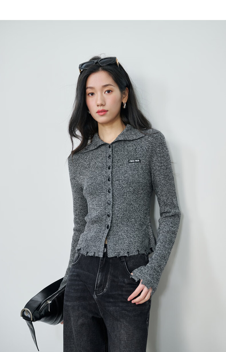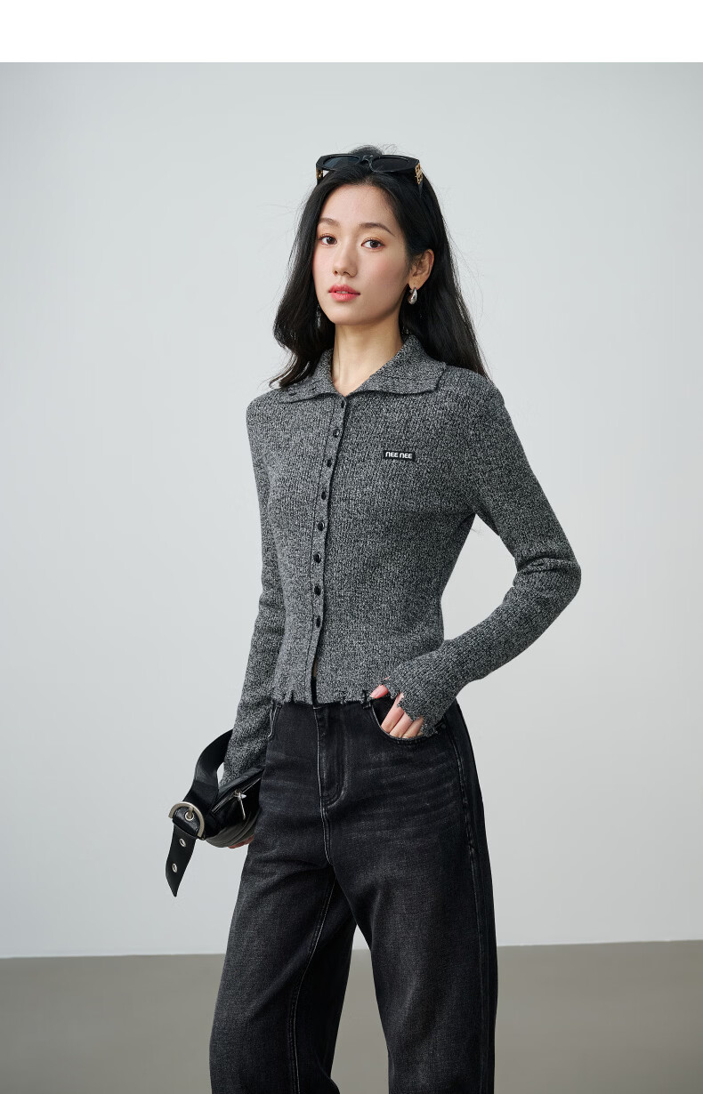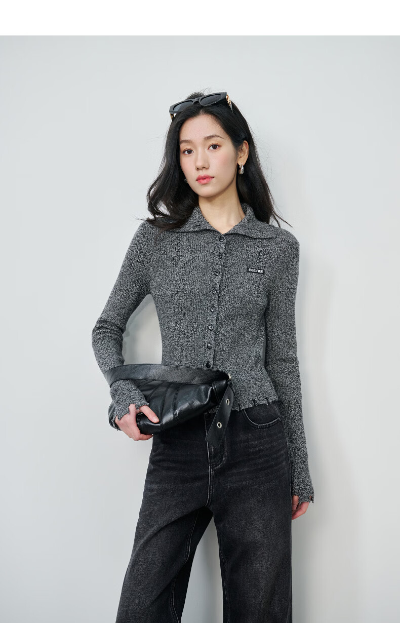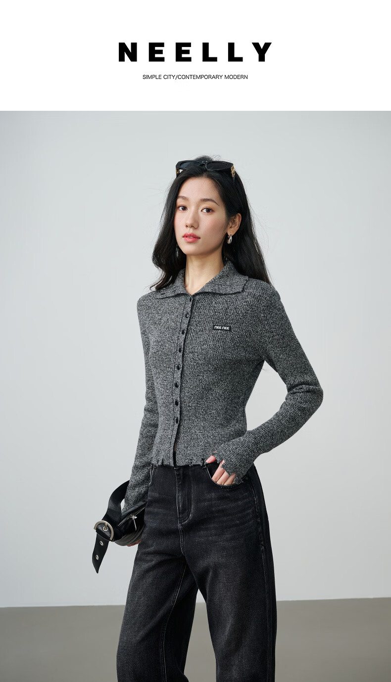 NEELLY shopping mall's new spring style slim-fitting lapel gentle knitted cardigan for women slimming and skin-friendly top Galaxy Gray S