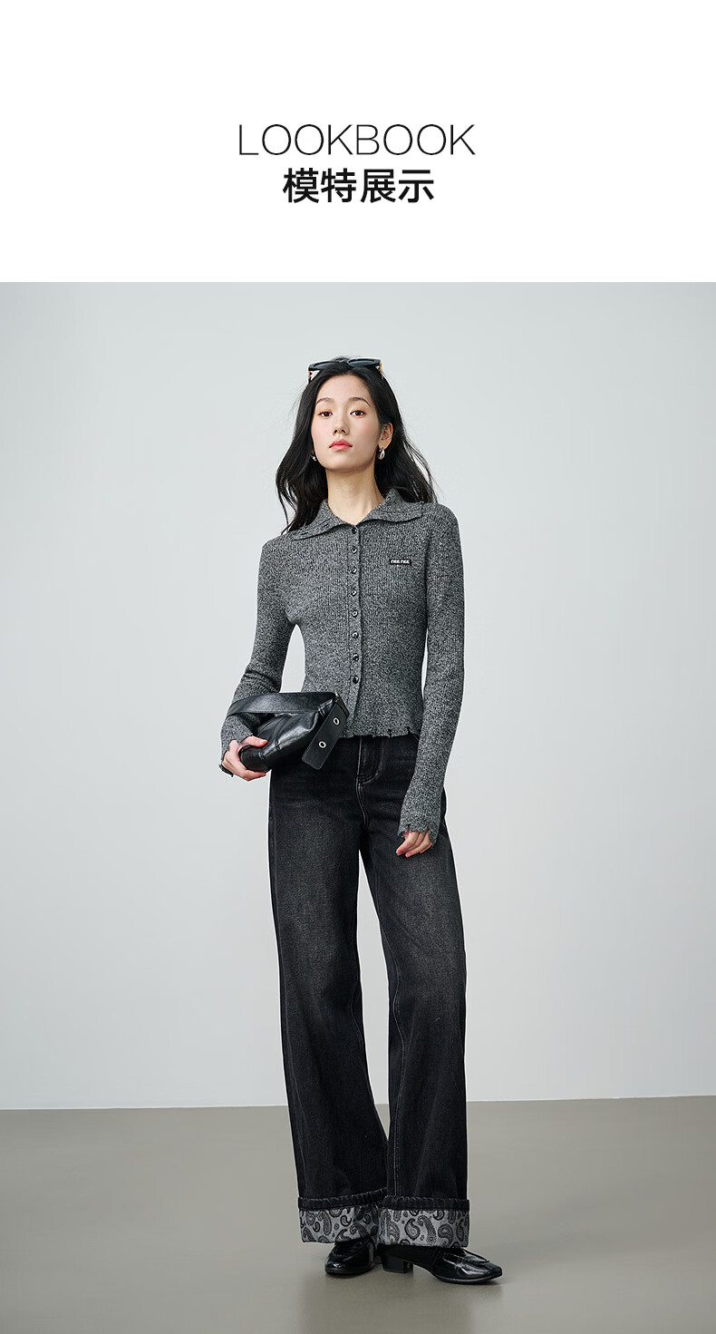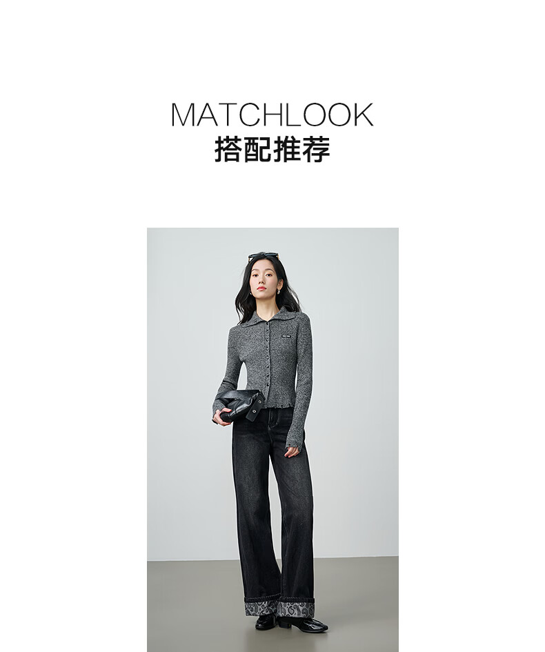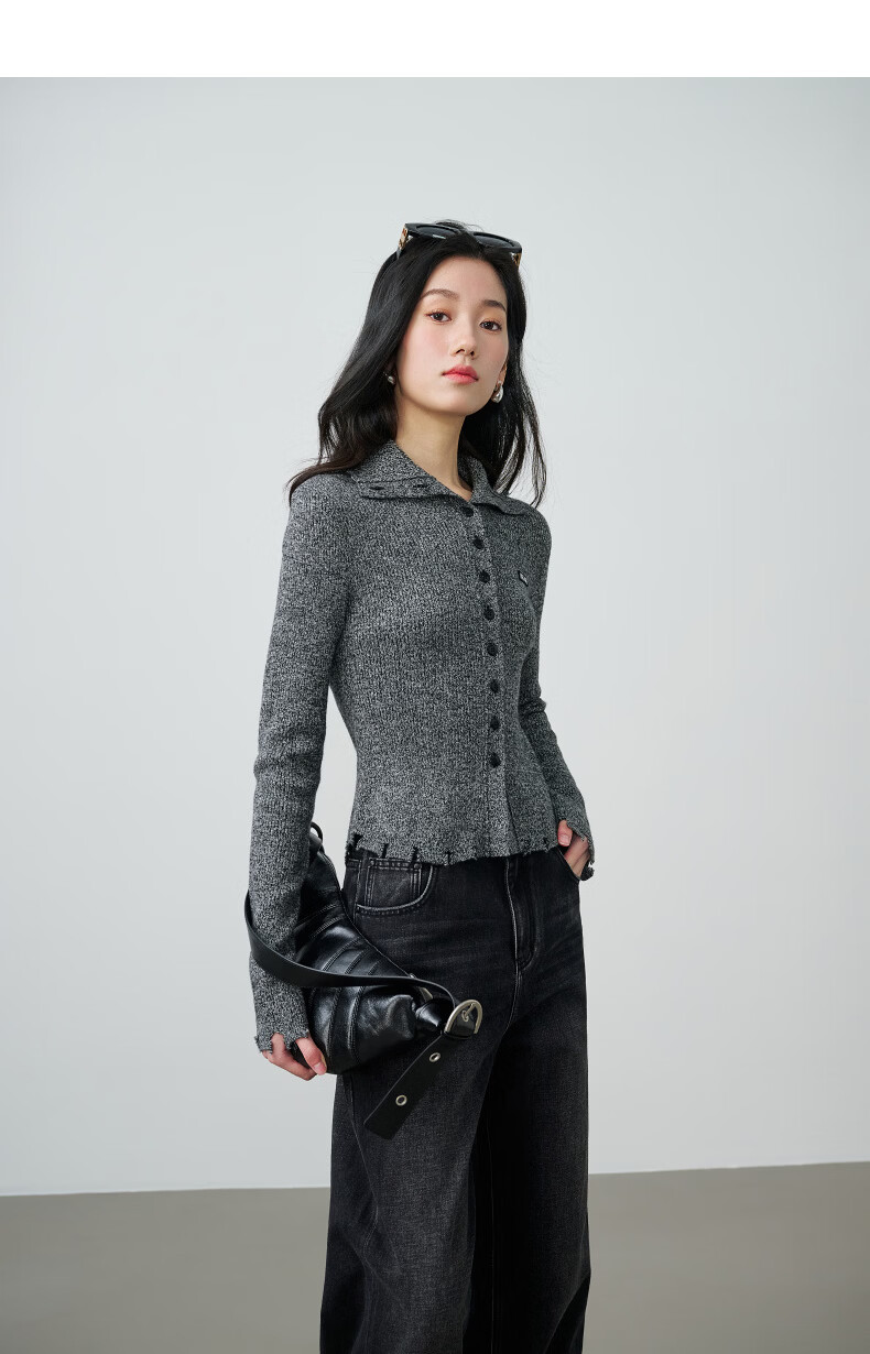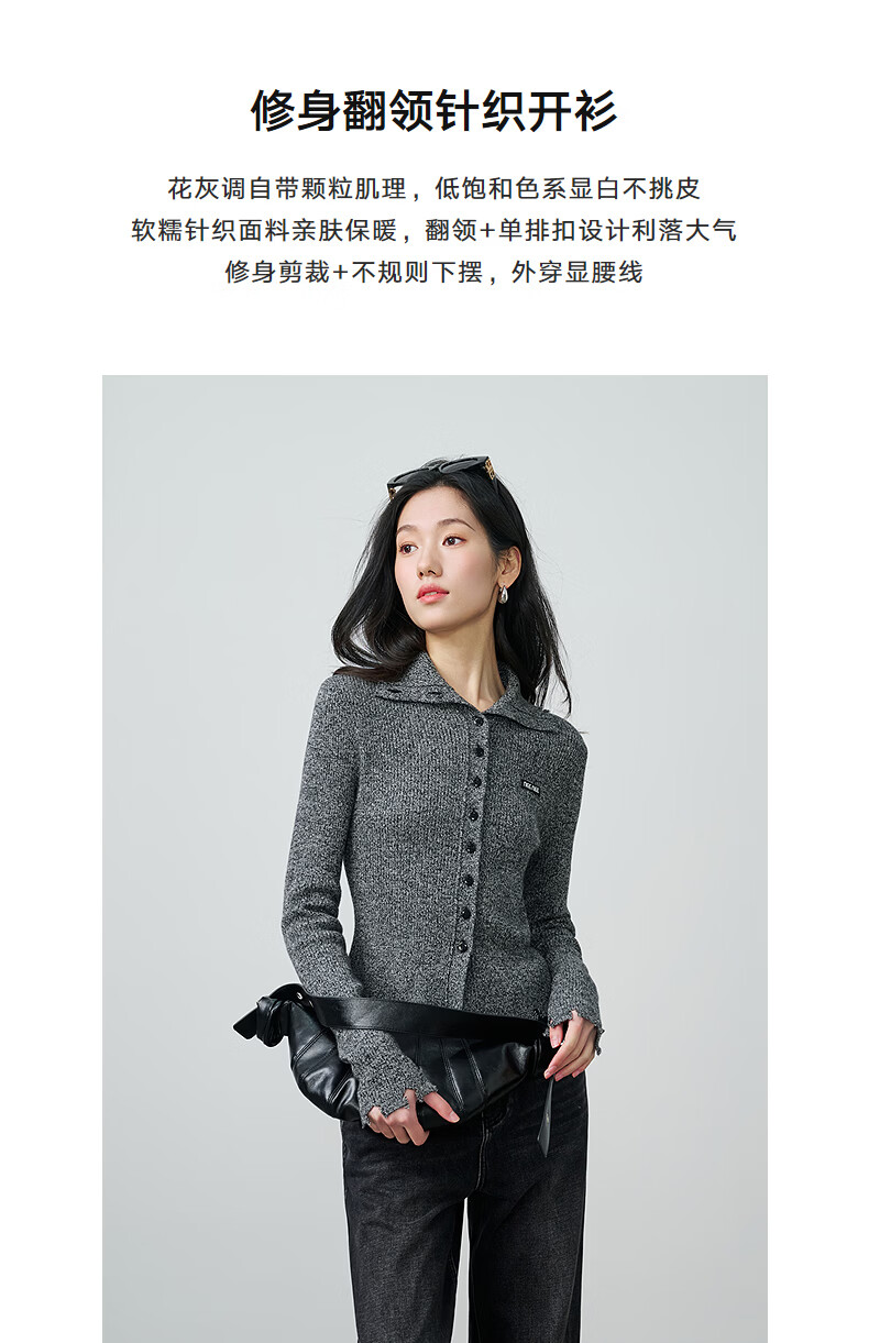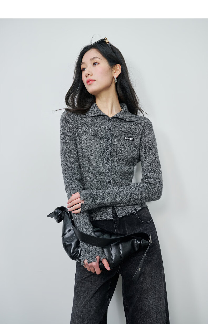 NEELLY shopping mall's new spring style slim-fitting lapel gentle knitted cardigan for women slimming and skin-friendly top Galaxy Gray S