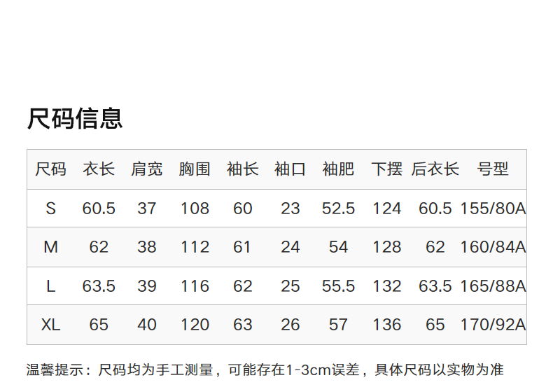 China(cm) 72-76 76-81 81-87 87-93 93-98