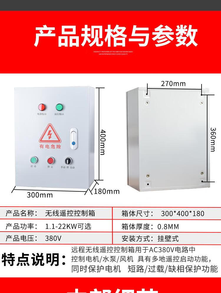 Motor fan water pump distribution box wireless remote control start switch three-phase 380V complete set of control box cabinet B type wireless remote control switch 5000 meters 1 piece