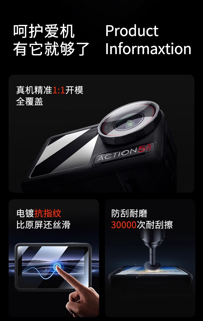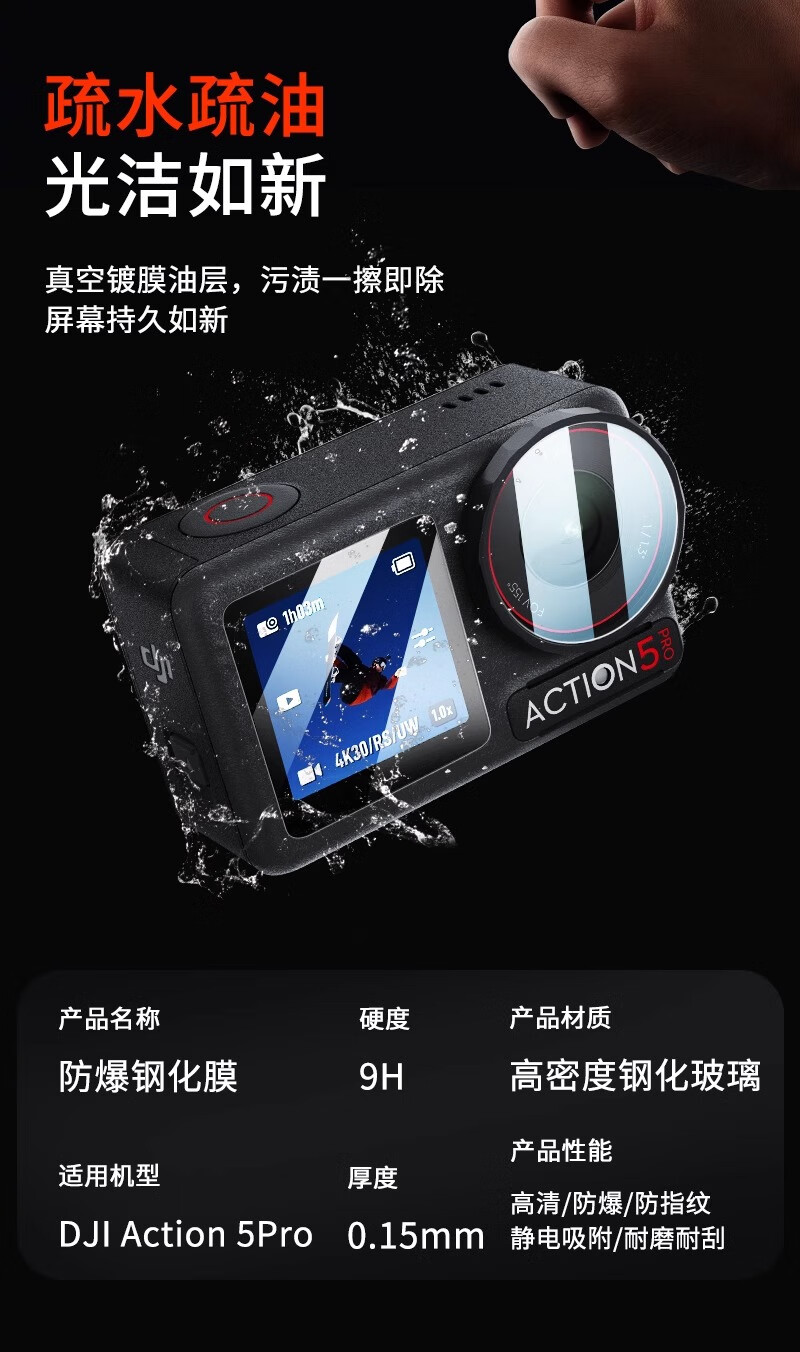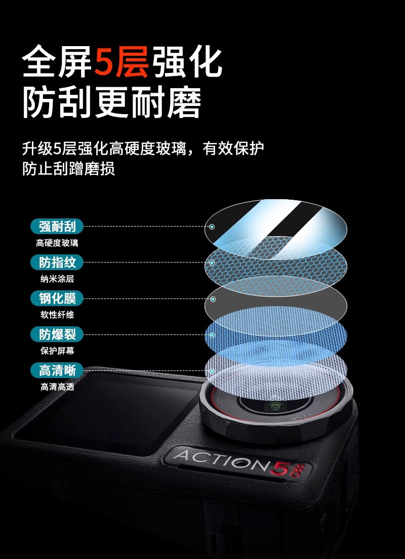 Yangfeisi hot-selling 2W 100% positive review, suitable for DJI action5pro tempered film ar anti-reflective film screen protector A5pro/4 outdoor 4-piece set, threaded firm version