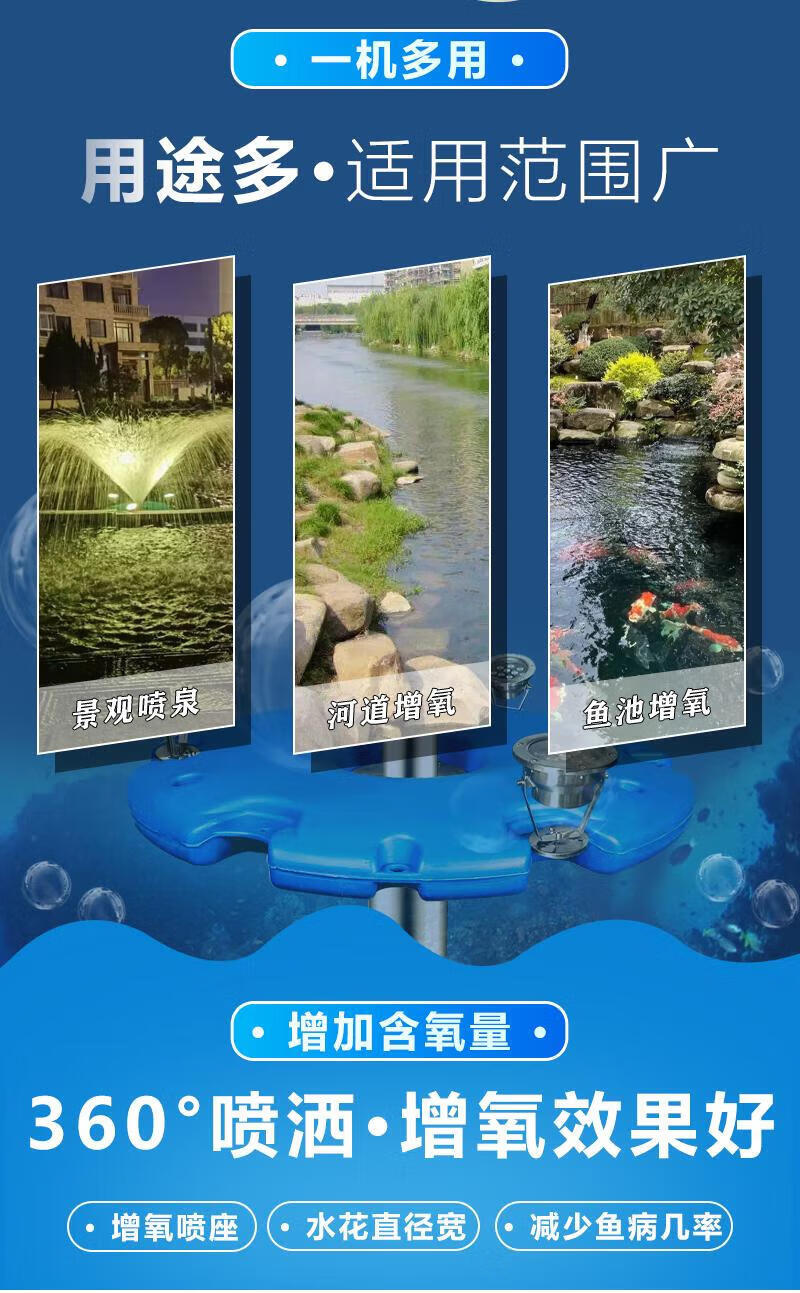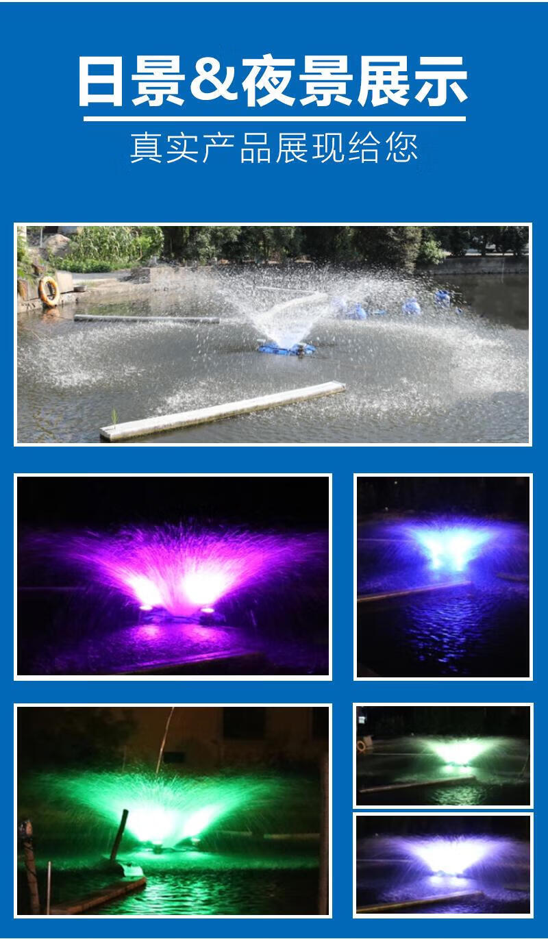 Fountain Aerator Colorful Lights Fountain Aerator Park Solar Fountain Landscaping Water Pump Pond Aerator 220V Single Phase 1500W with Seven-Color Colorful Lights