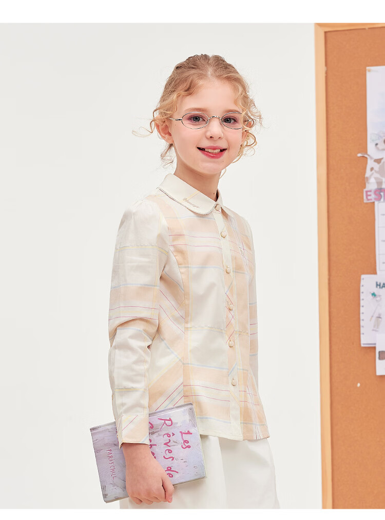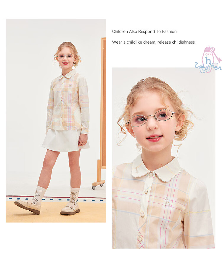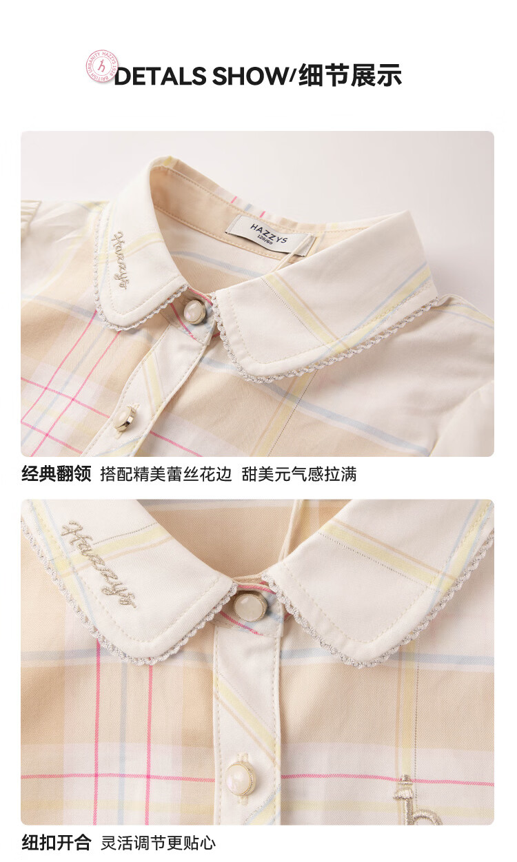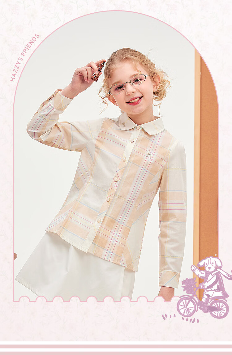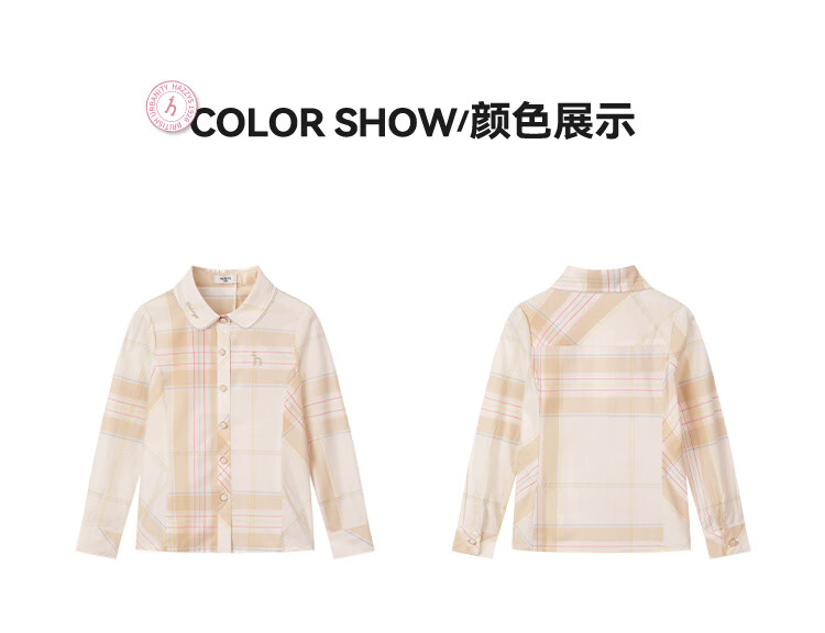 HAZZYS children's clothing girls' shirt 2026 Spring College Lapel Temperament Long Sleeve Top Gray Khaki 165