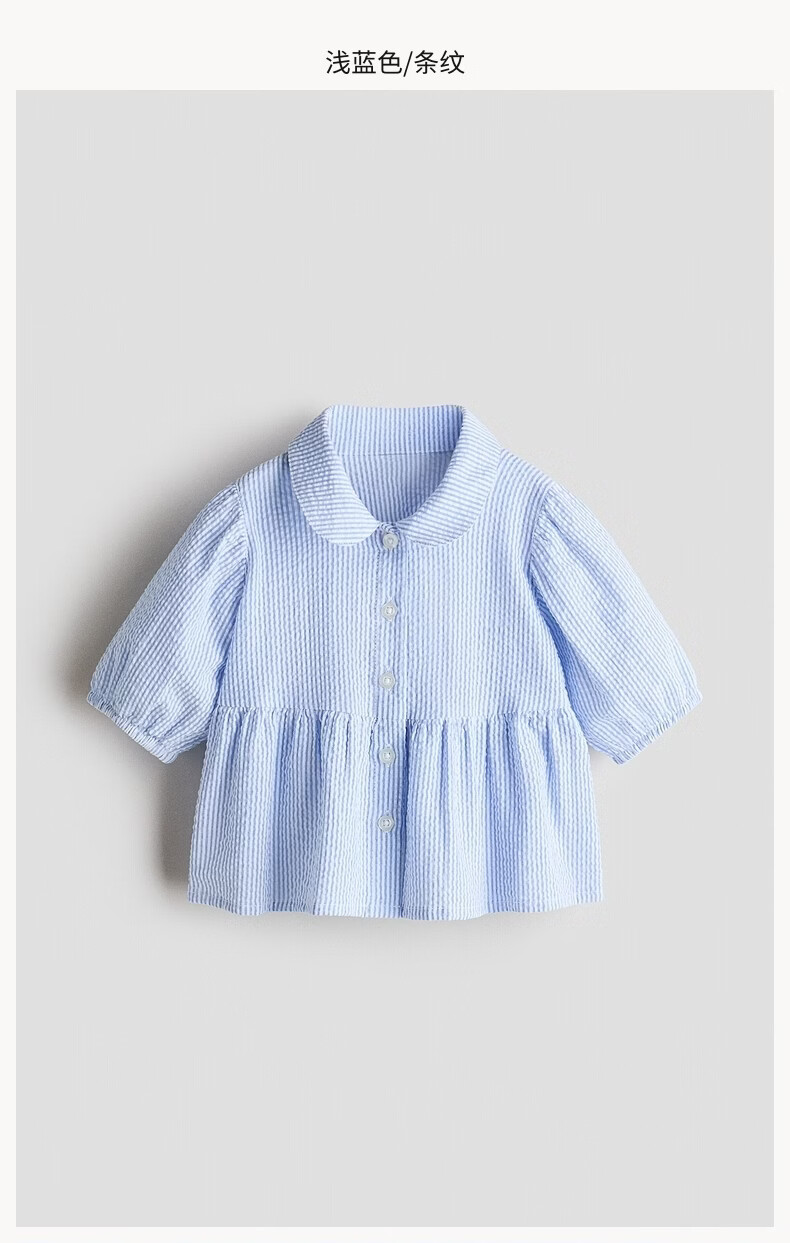 H&M2026 Spring New Children's Clothing Baby Girl Cotton Dot Tulle Top 1298242 Light Blue/Stripes 100 100/56(2-3Y)