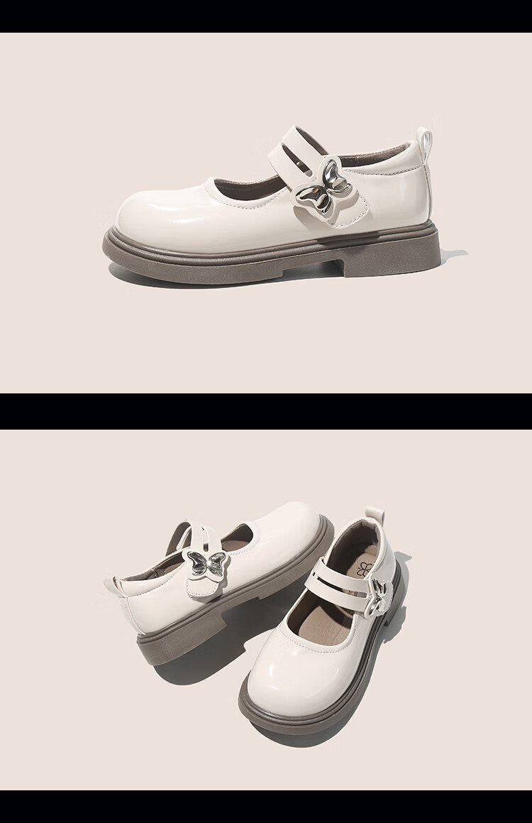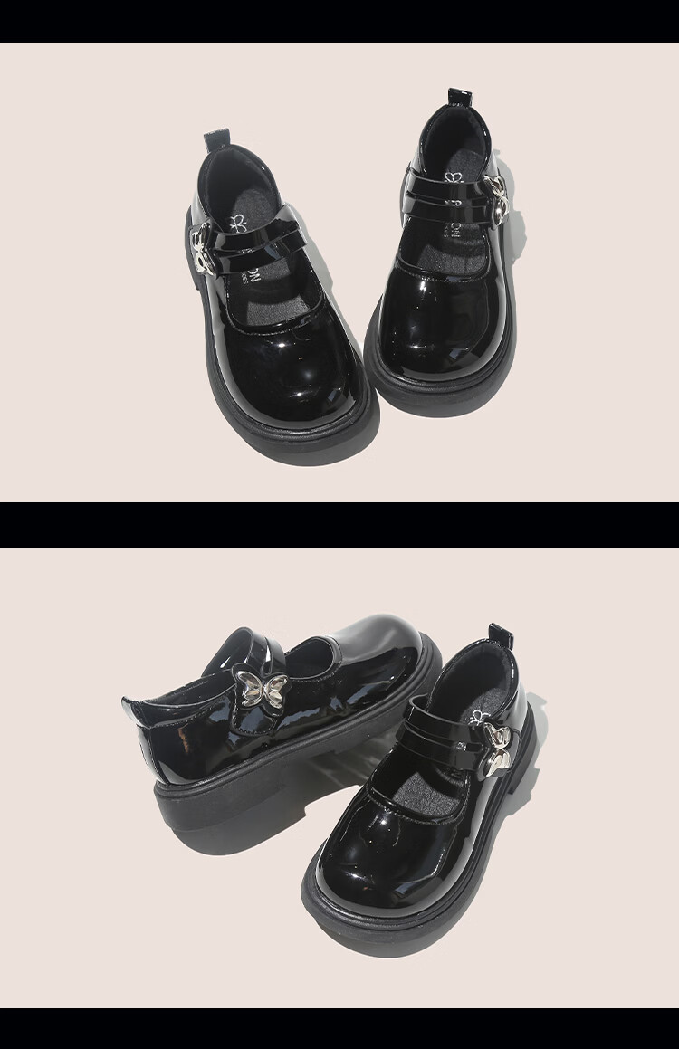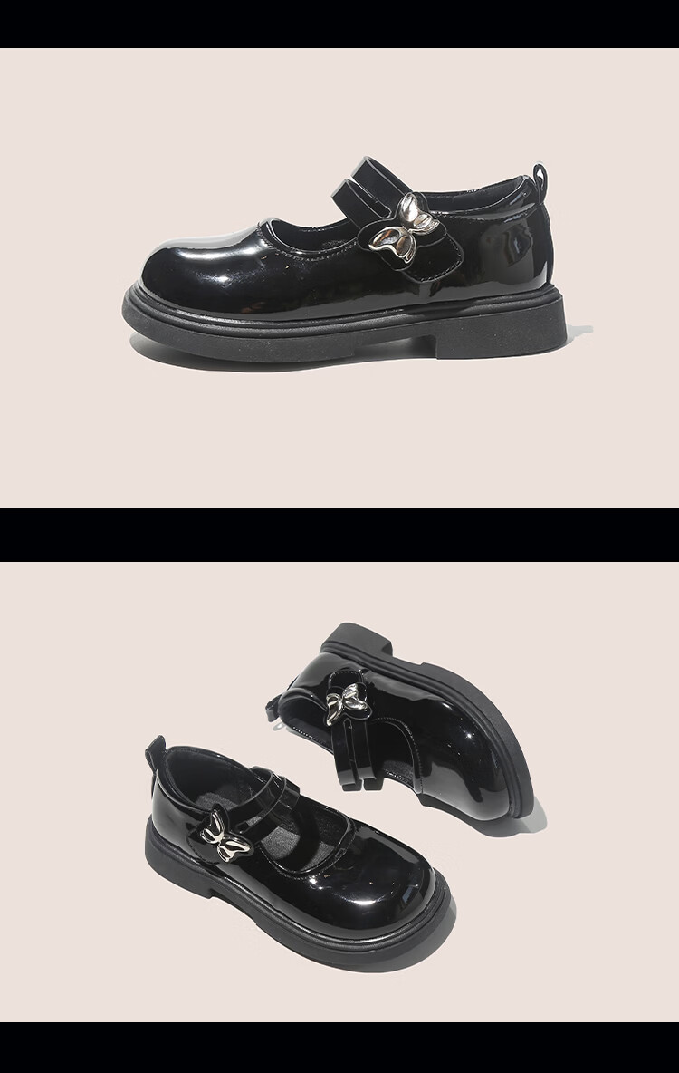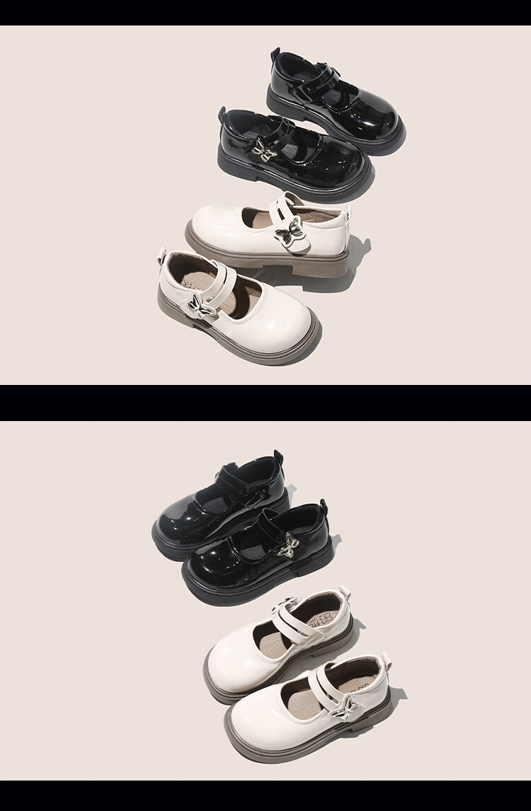Girls Butterfly Strap Small Leather Shoes Spring Simple Fashion Children's Princess Shoes Black Versatile Mary Jane Shoes Black 27