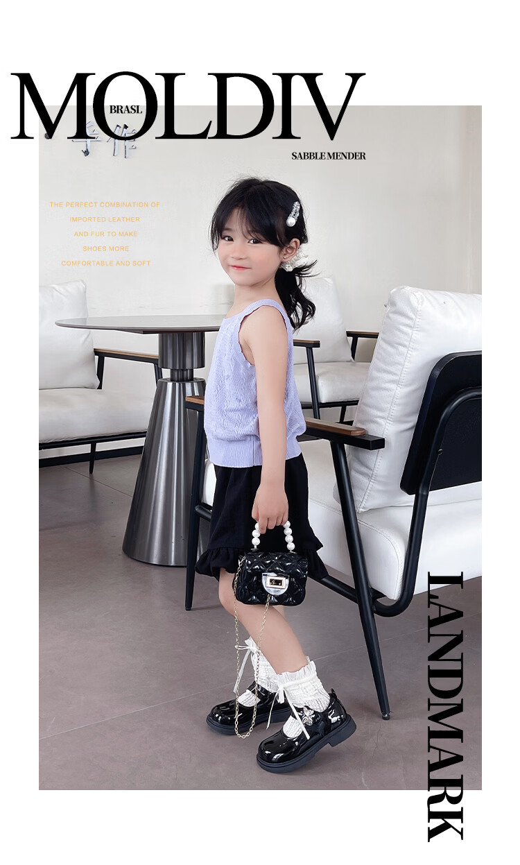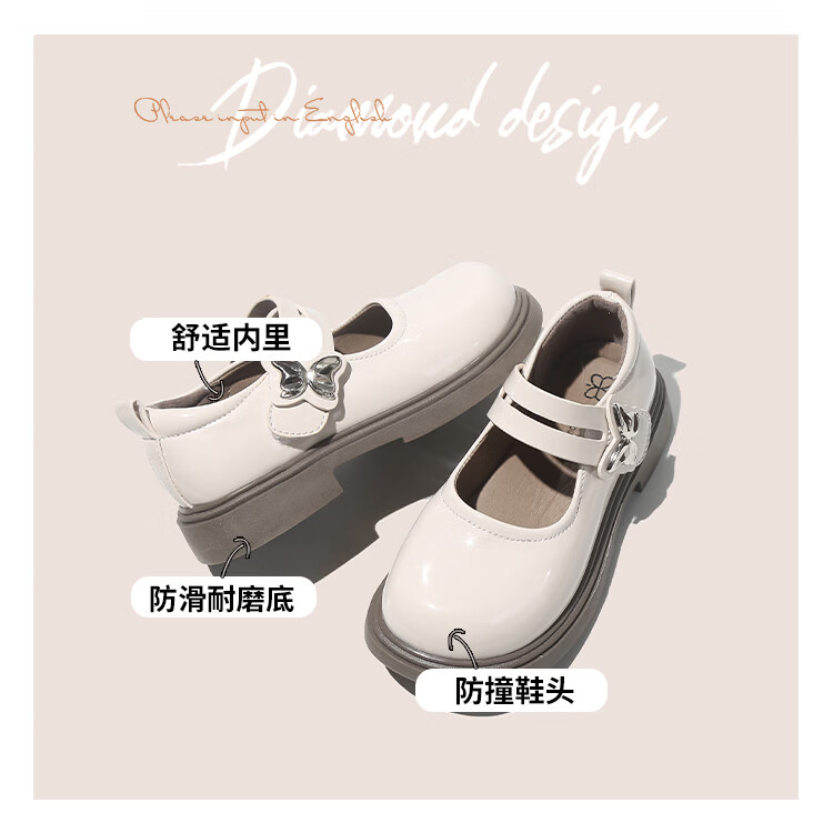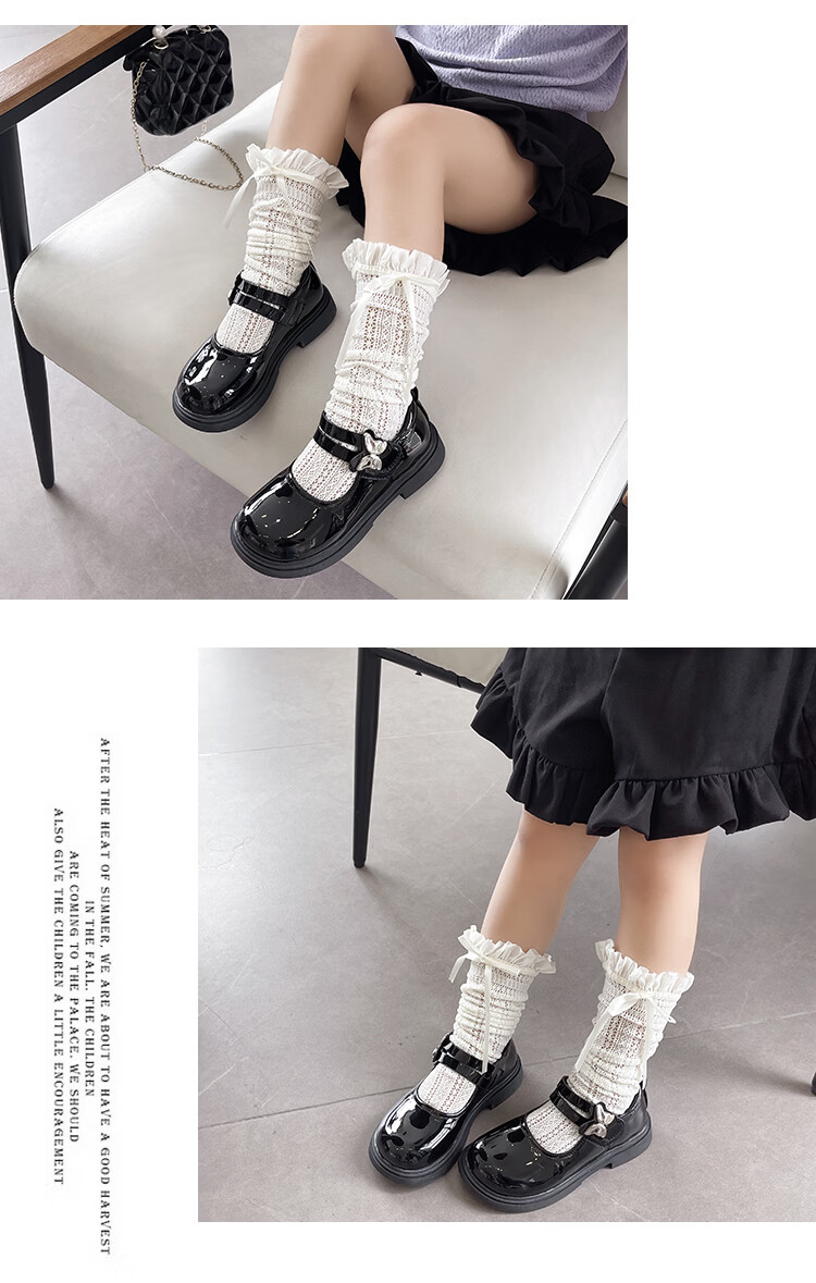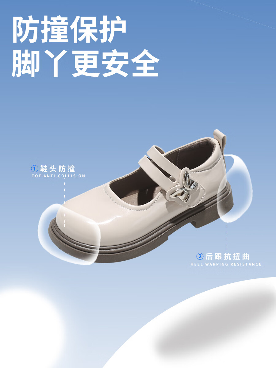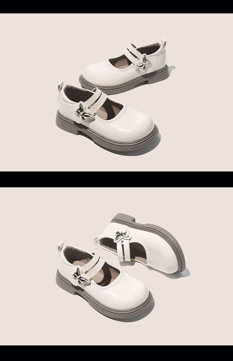 Girls Butterfly Strap Small Leather Shoes Spring Simple Fashion Children's Princess Shoes Black Versatile Mary Jane Shoes Black 27