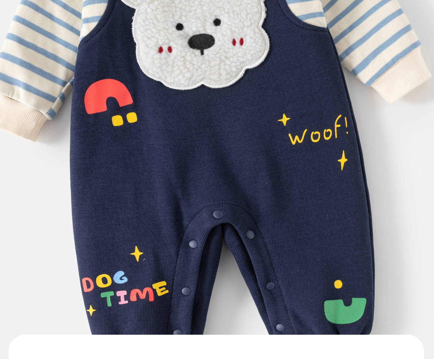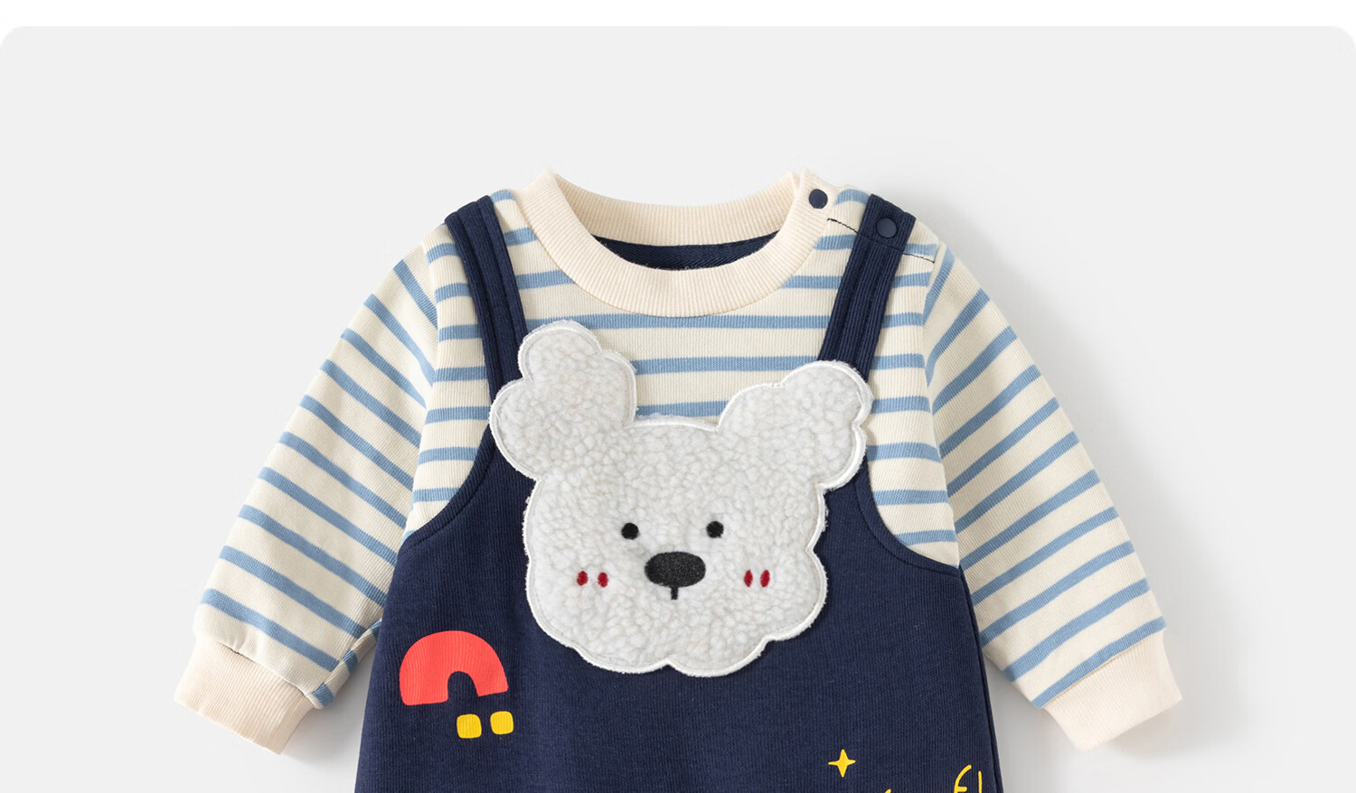 Banxidi baby clothes spring baby jumpsuit male baby outing clothes spring and autumn super cute fake two-piece overalls crawler suit blue 66cm