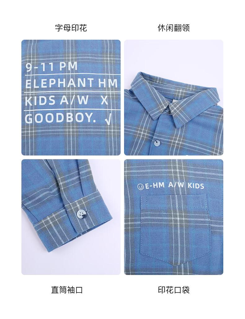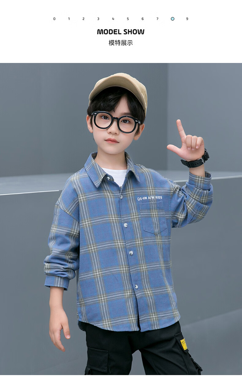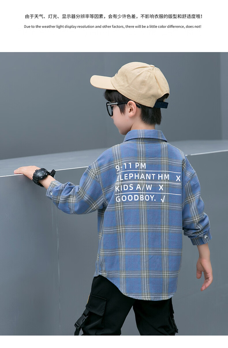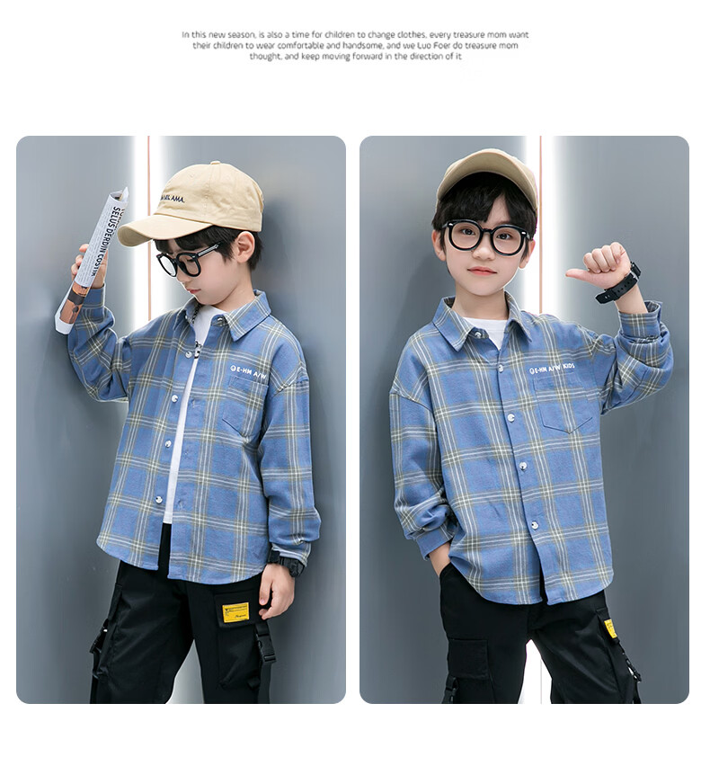Children's clothing boys' long-sleeved shirt spring and autumn new pure cotton checkered shirt medium and large children's striped plaid shirt handsome and trendy blue 130 (recommended height is about 125)