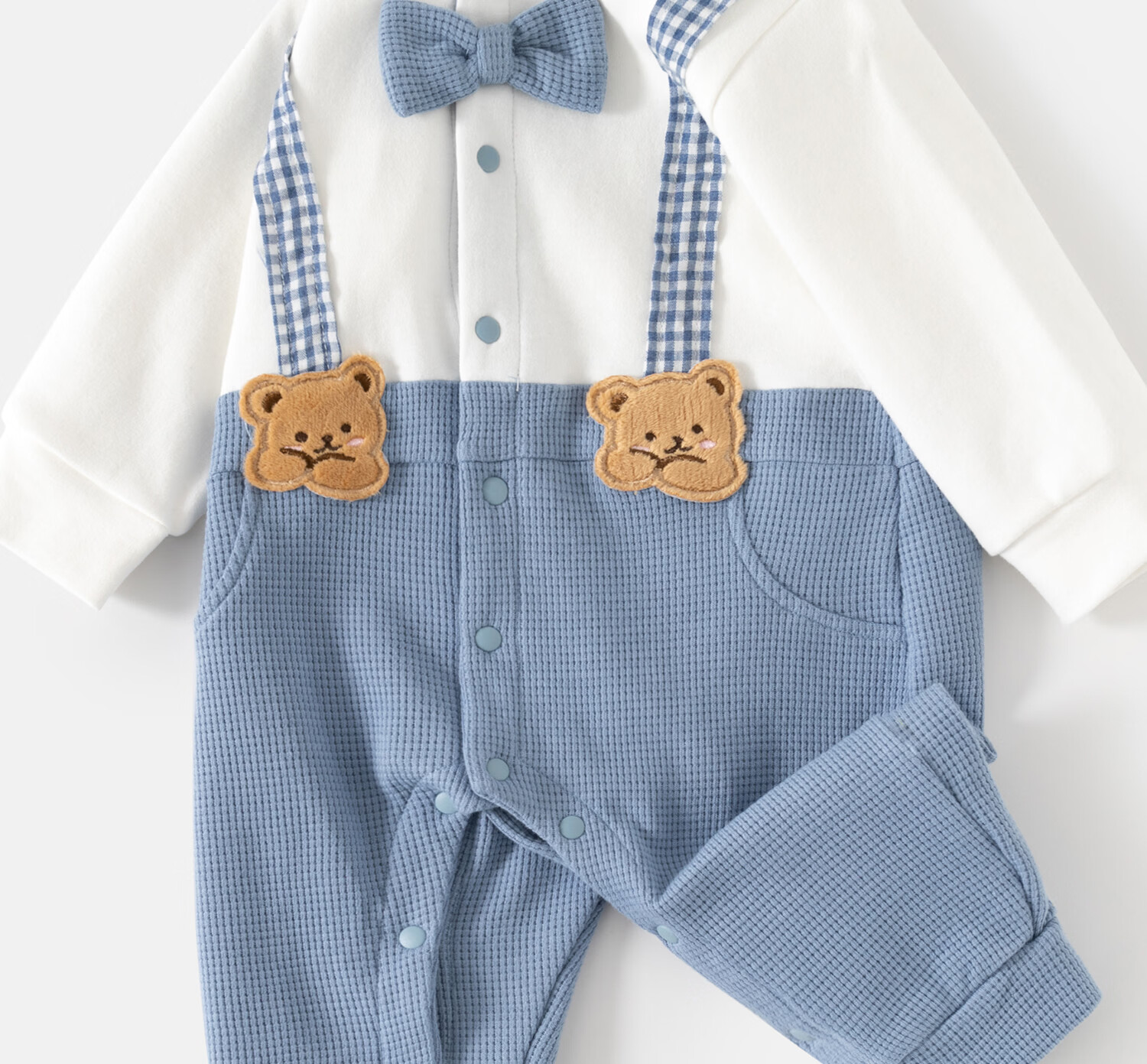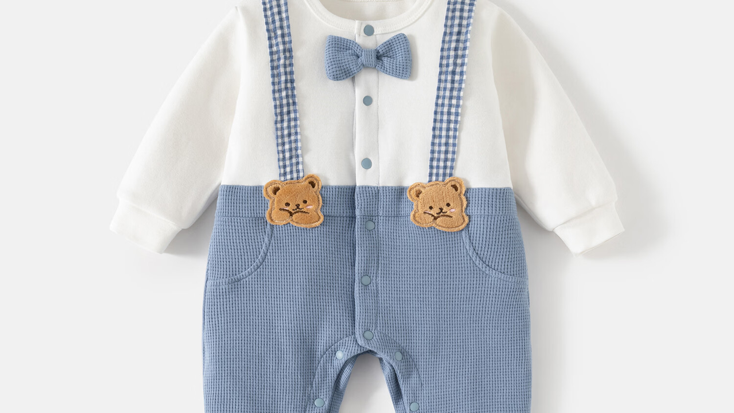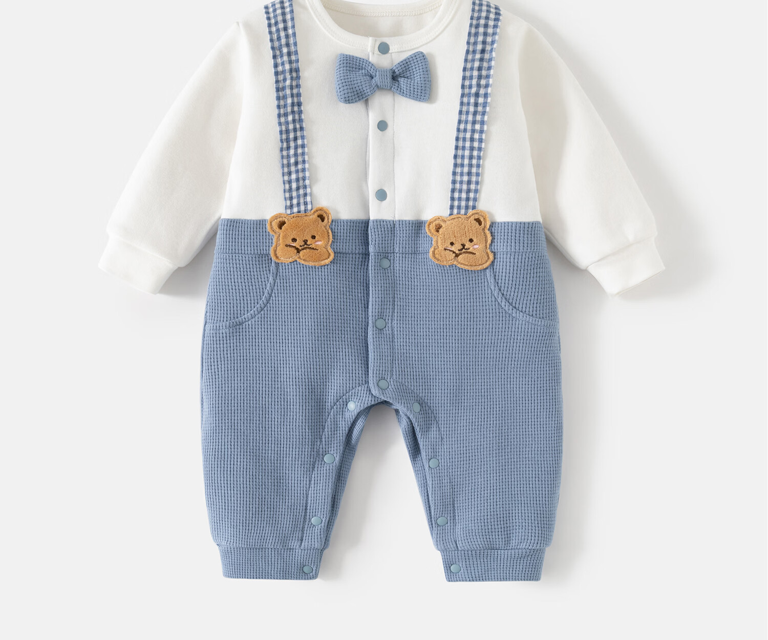 Banxidi baby clothes, spring clothes, infant jumpsuits, boys' men's romper, fake two-piece overalls, going out, blue 80cm