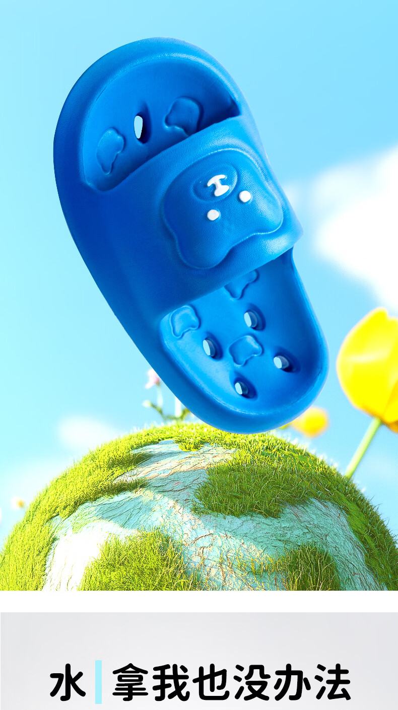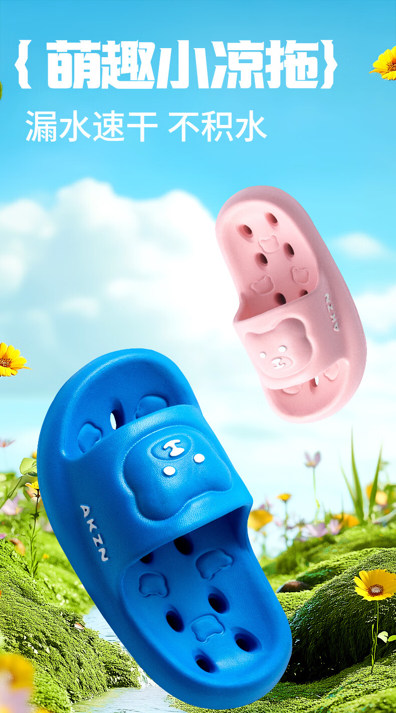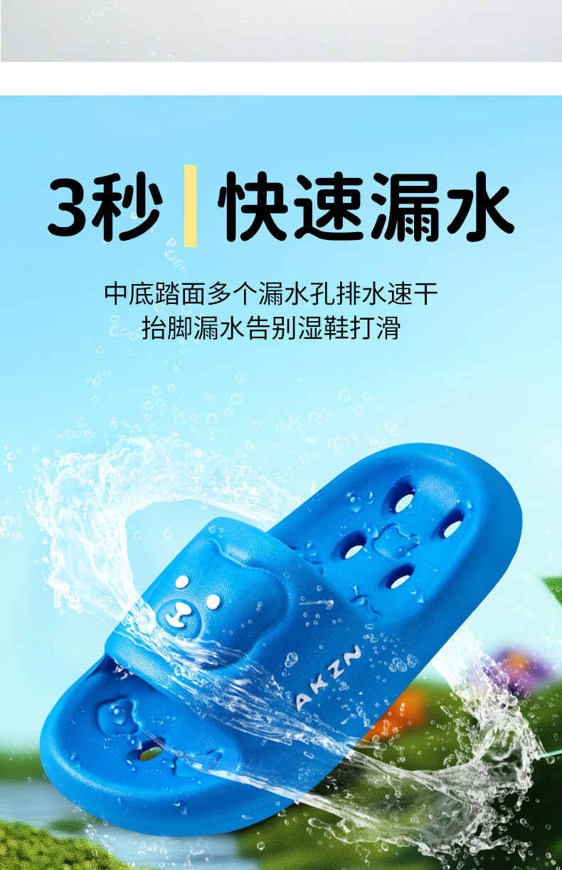 儿童拖鞋男童洗澡专用新款男孩宝宝浴室防滑漏水凉拖鞋夏女童 天蓝色 34 -35标准码