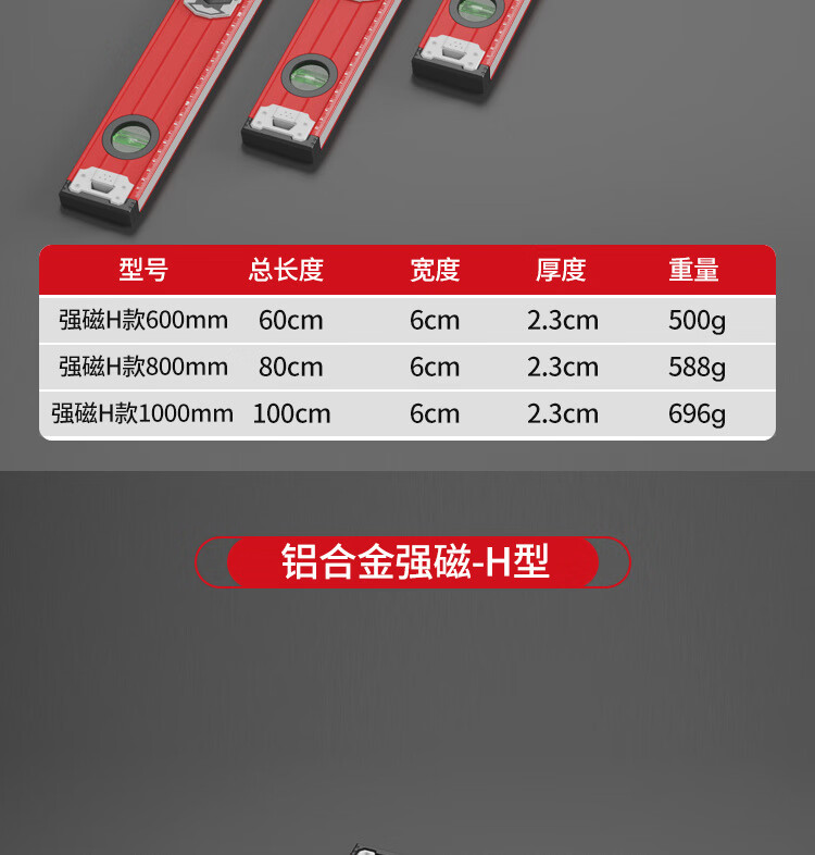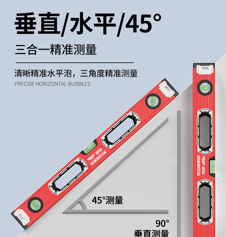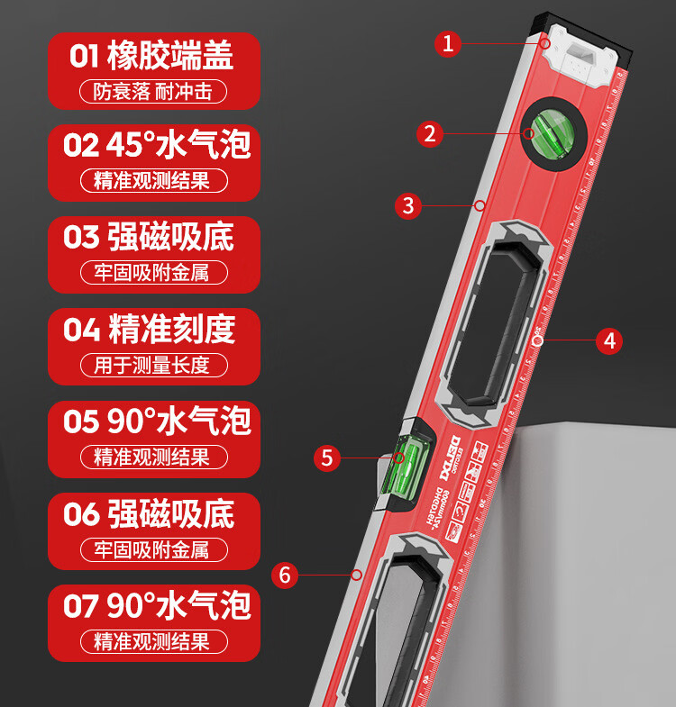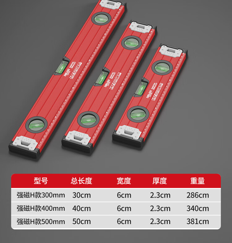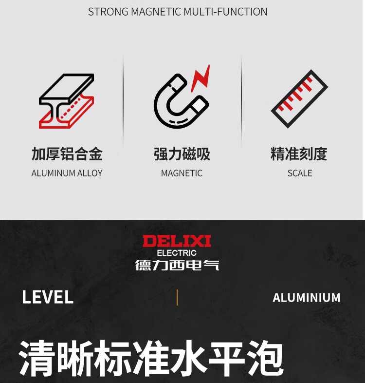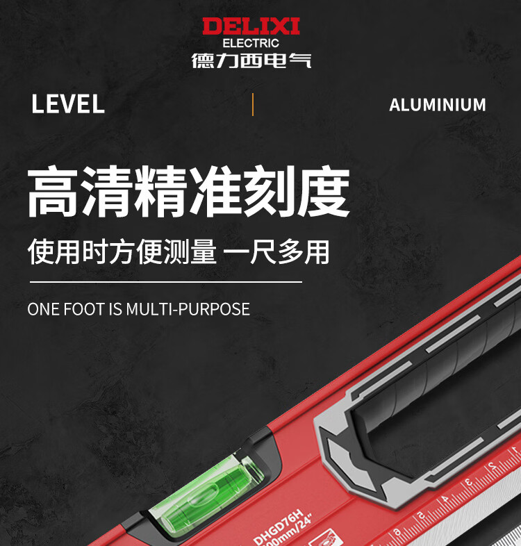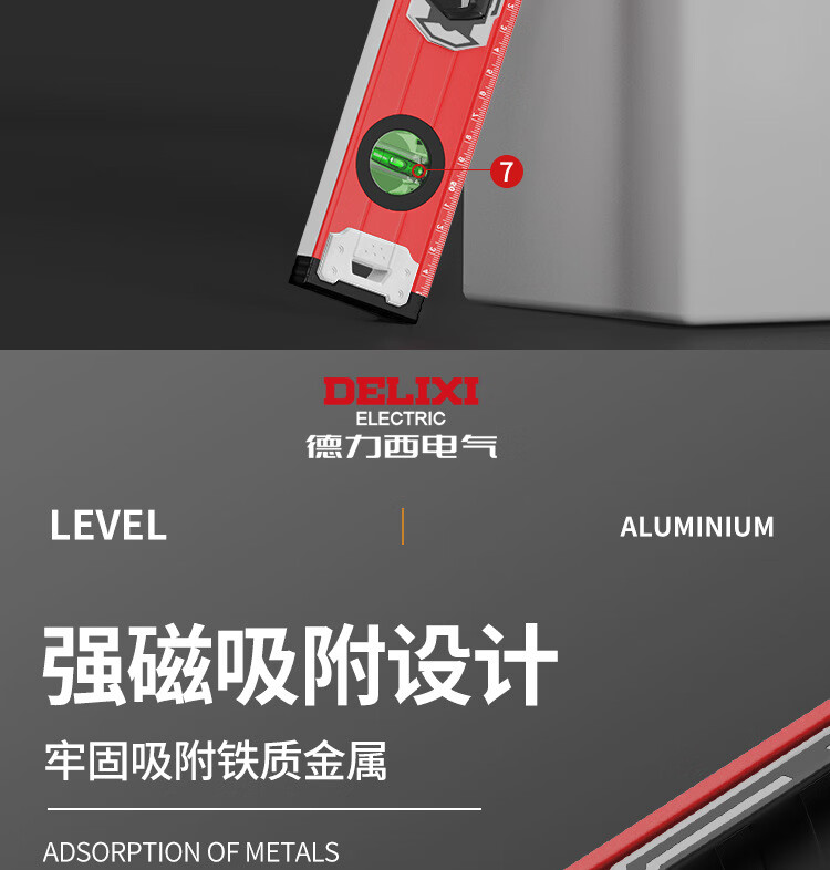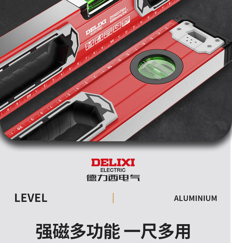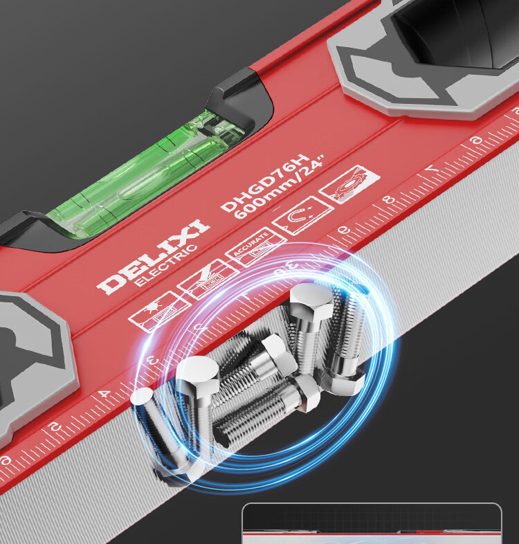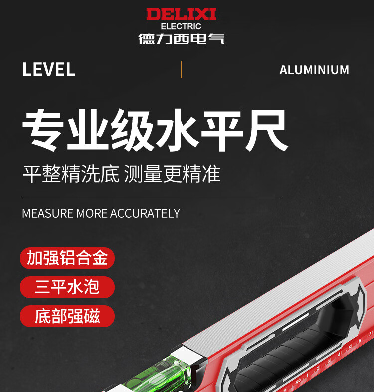 Delixi Electric High-precision thickened solid aluminum alloy strong magnetic multi-Specifications building decoration level ruler professional strong magnetic 400MM level ruler