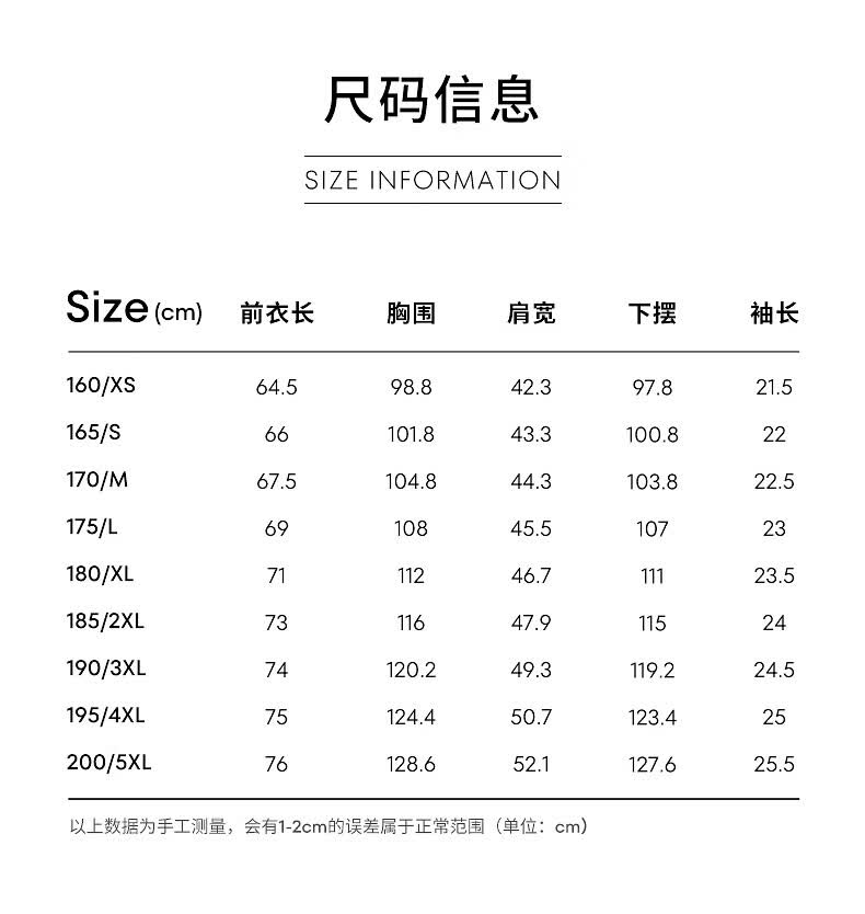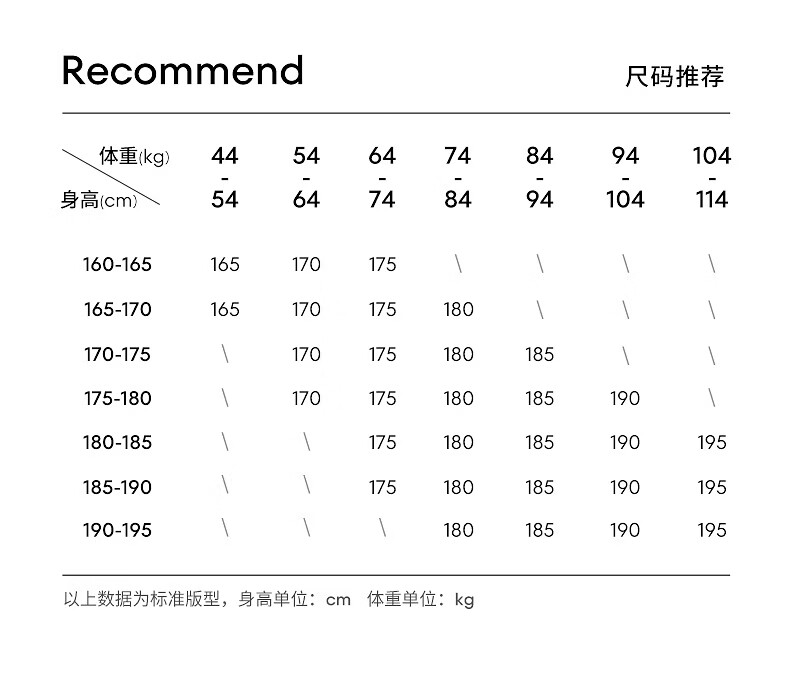 China (cm) 160-165/84-86 165-170 / 88-90 167-172 / 92-96 168-173 / 98-102 170-176 / 106-110