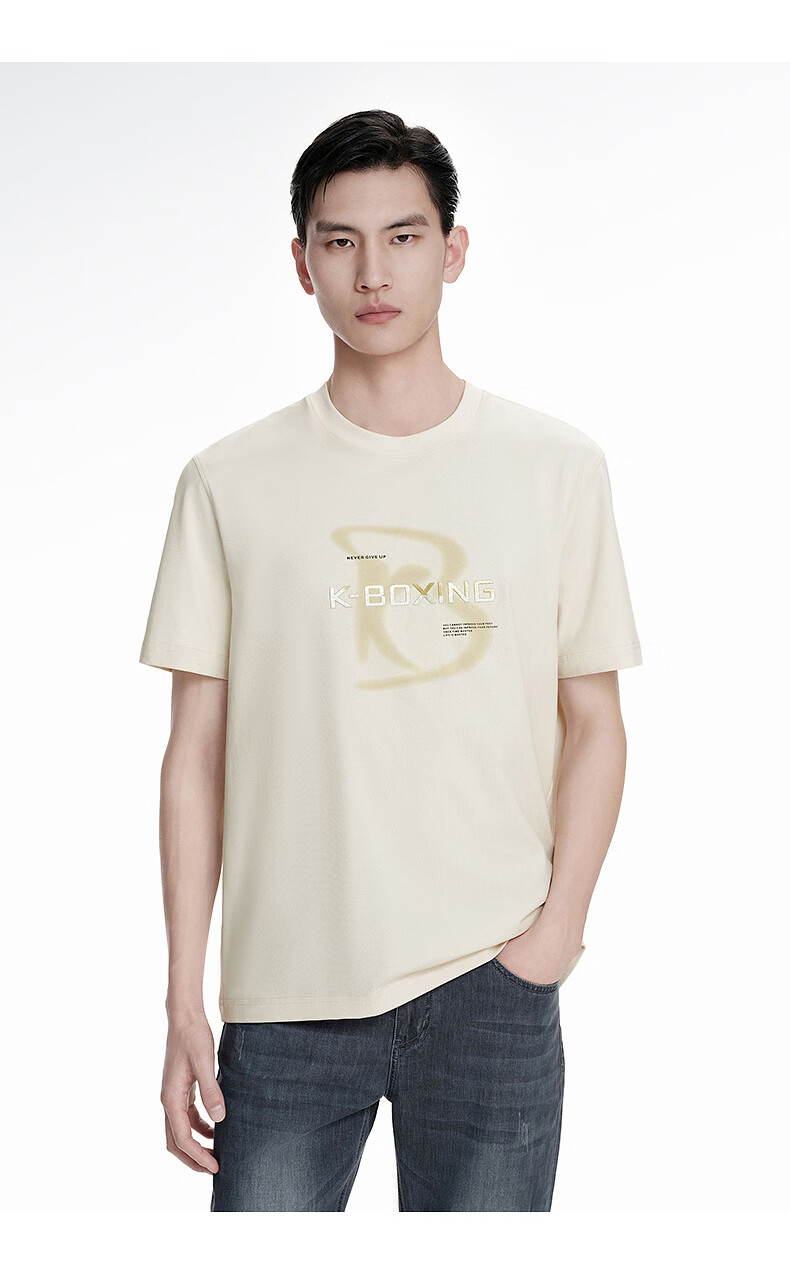 K-Boxing Men's Summer Fashion Printed Trendy Short-Sleeved T-Shirt NTCK2661 Off-White XL