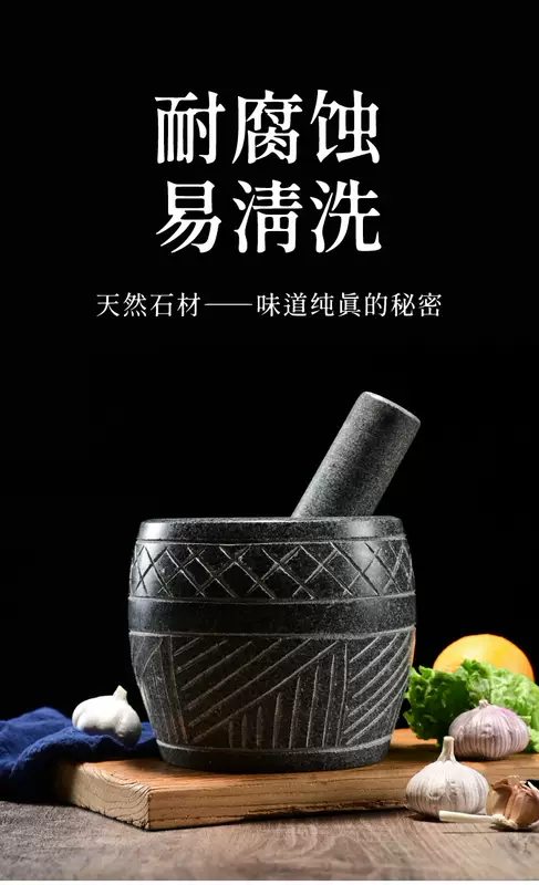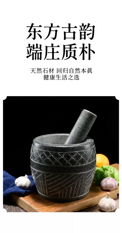 Yusenyi large handmade garlic press stone garlic mortar household grinder stone mortar for pounding medicine, smashing pepper, peeling garlic garlic press large black stone carving with stone handle
