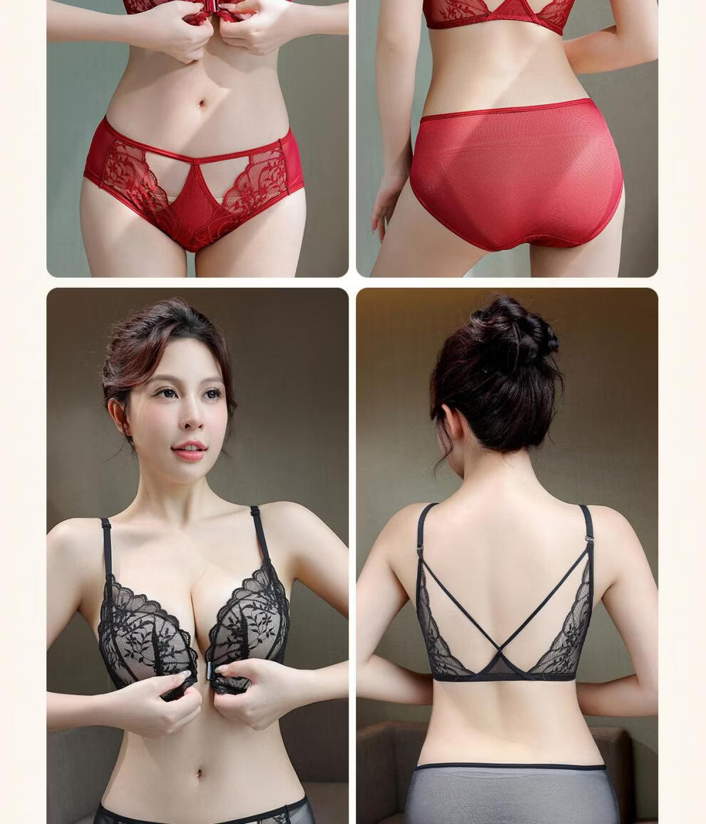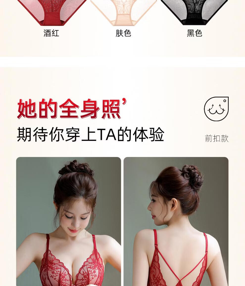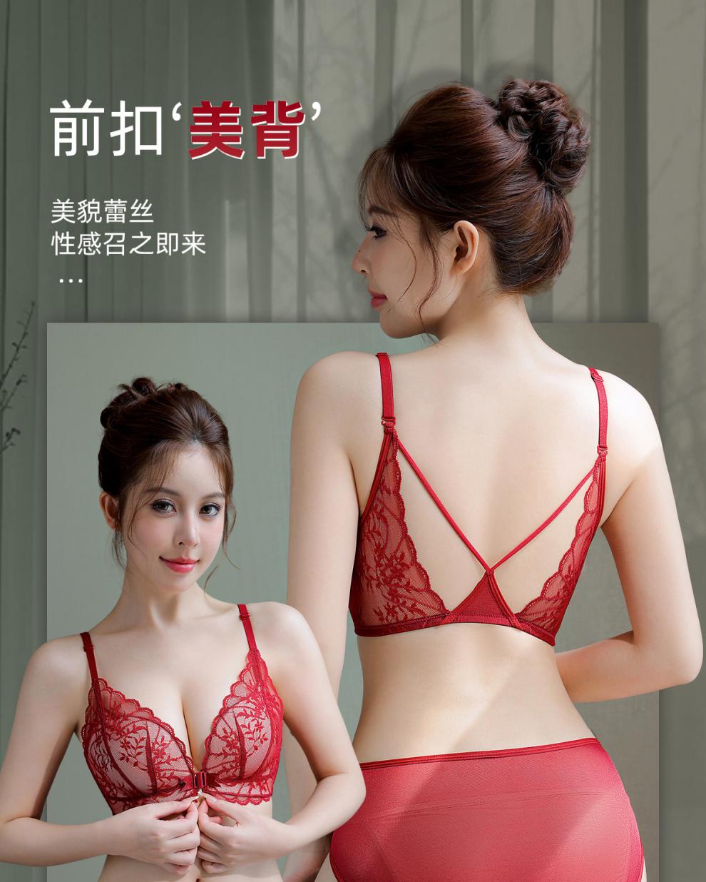 Victoria's Secret Birth Buckle Lace Beautiful Back Deep V Sexy Underwear for Women to Push Up Small Breasts Skin Color Single Piece + Wine Red Single Piece 85B 38