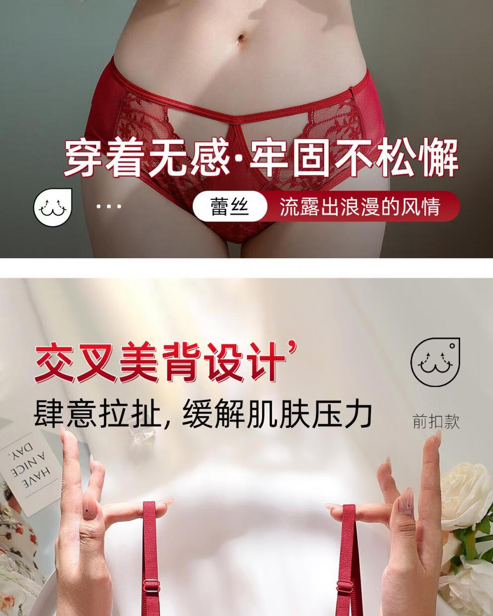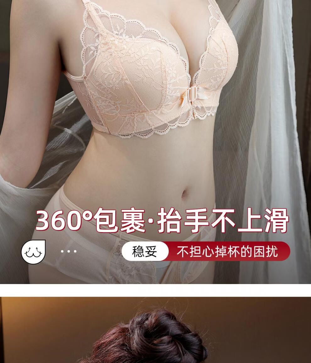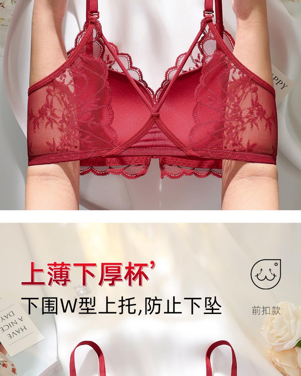 Victoria's Secret Birth Buckle Lace Beautiful Back Deep V Sexy Underwear for Women to Push Up Small Breasts Skin Color Single Piece + Wine Red Single Piece 85B 38