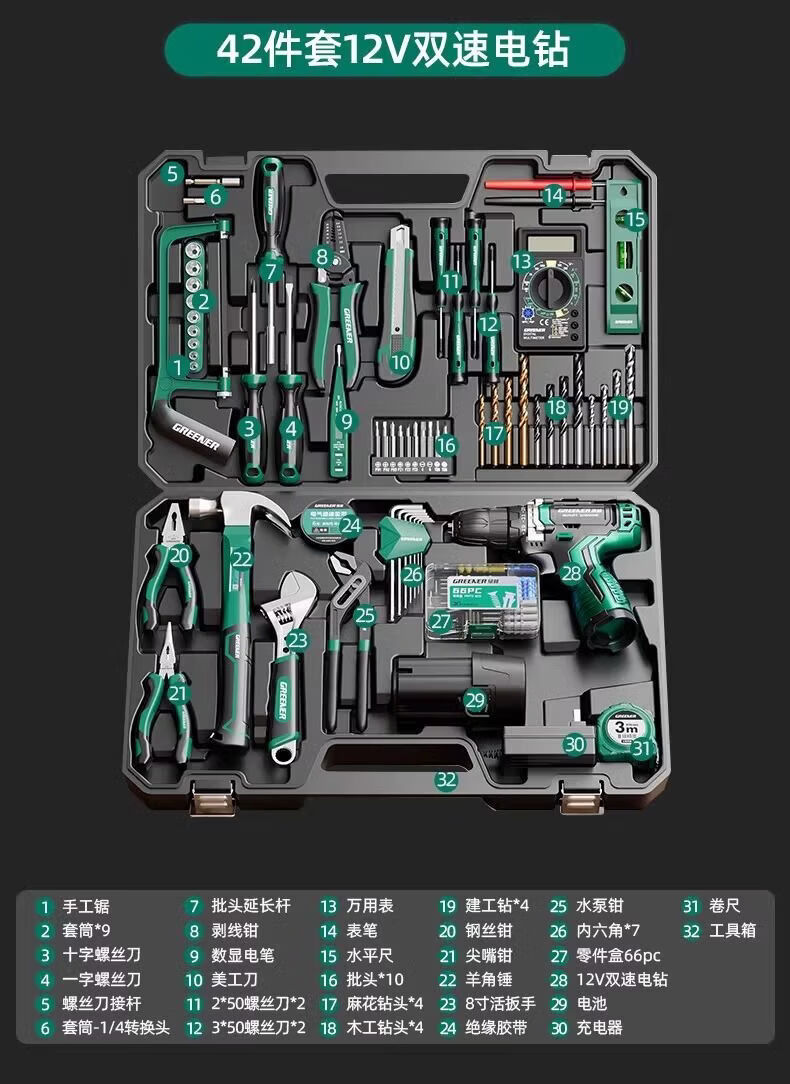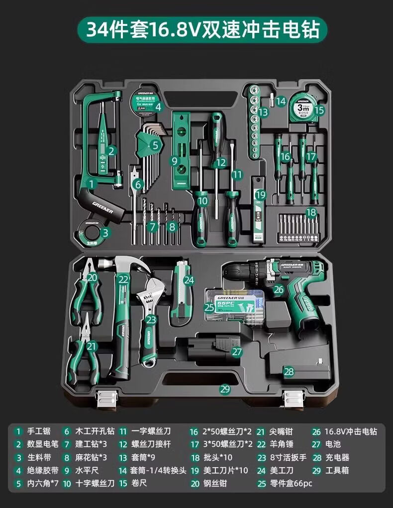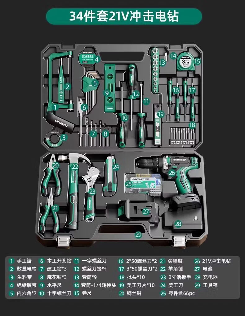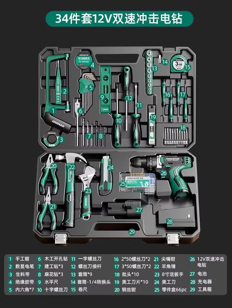 Green Forest Hardware Tool Set Household Tool Box Repair Combination Complete Set Daily Electrician Woodworking Encyclopedia 153-piece Tool Set
