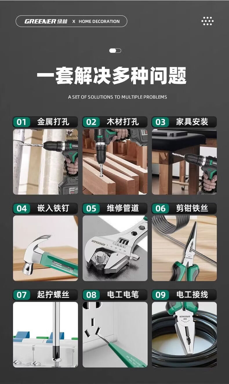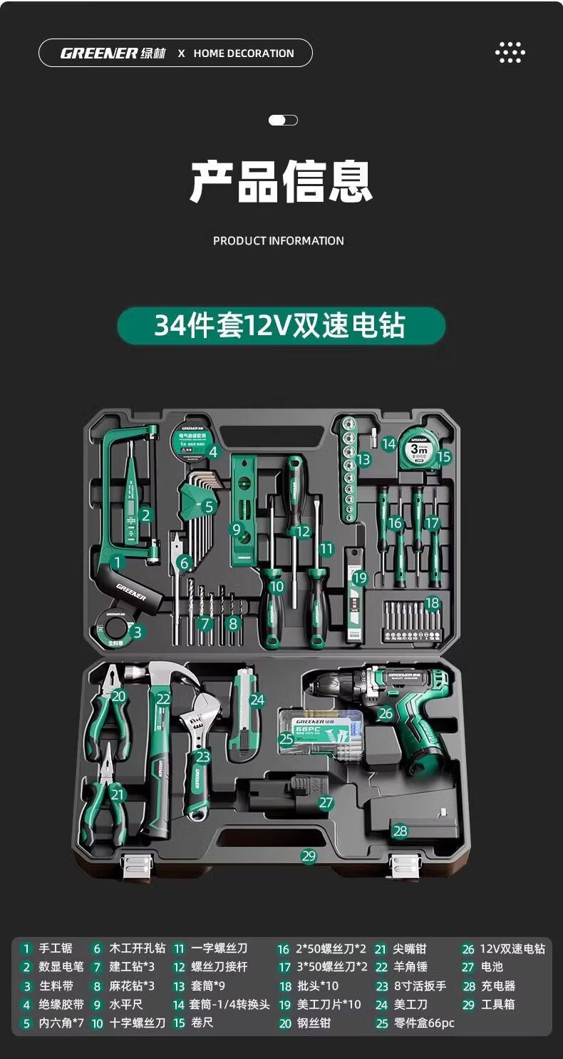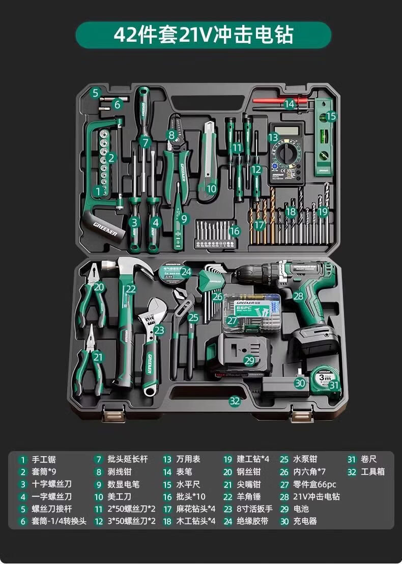Green Forest Hardware Tool Set Household Tool Box Repair Combination Complete Set Daily Electrician Woodworking Encyclopedia 153-piece Tool Set