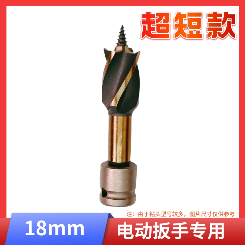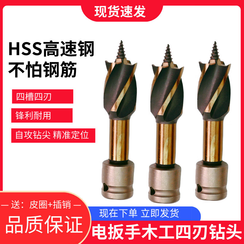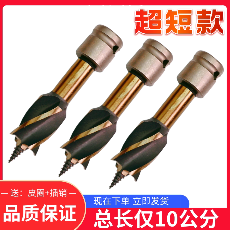 Electric wrench woodworking support drill four-slot drill extended twist drill bit template drill short high speed steel woodworking drill bit high speed steel HSS + electric wrench 20mm drill bit ultra short
