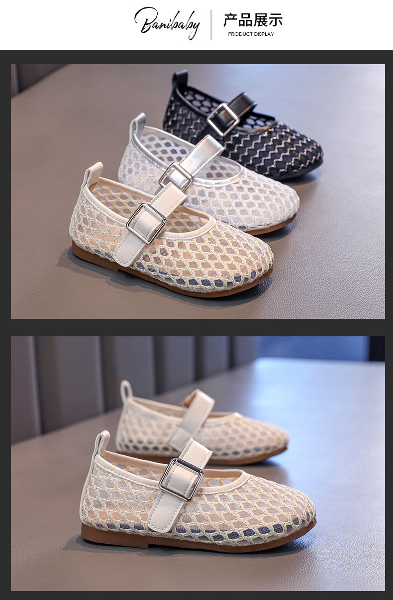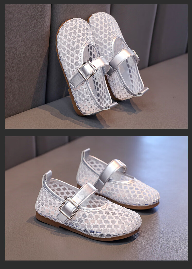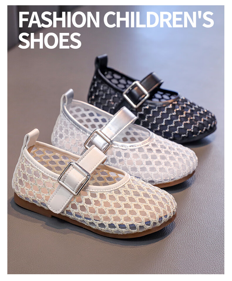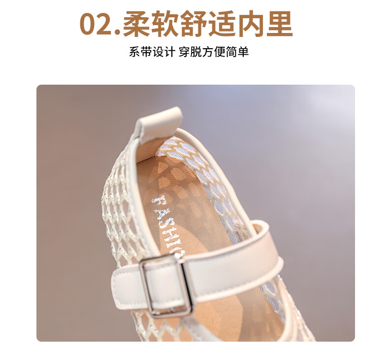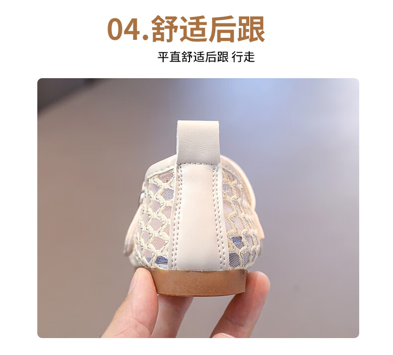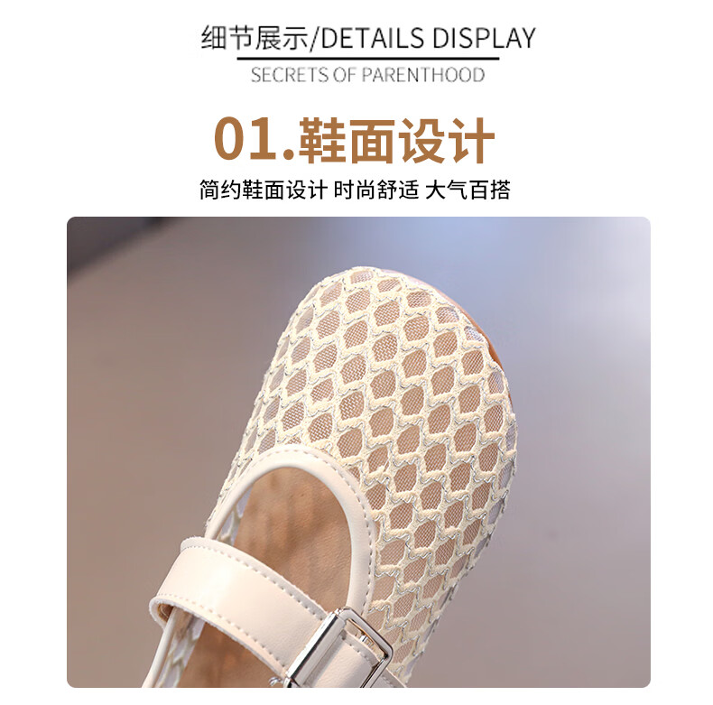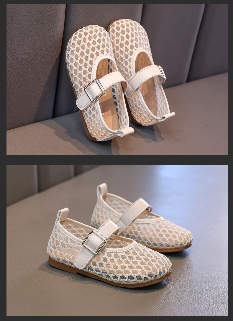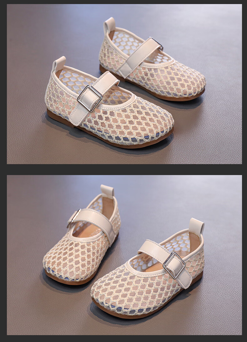 Girls sandals and children's shoes summer Korean new style breathable mesh shoes hollow children's shoes little girl princess shoes beige 26 size 26 / inner length about 16.0 cm