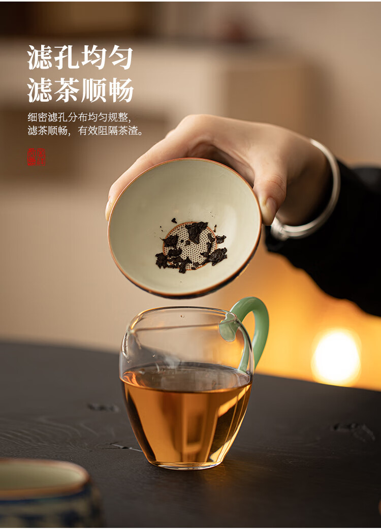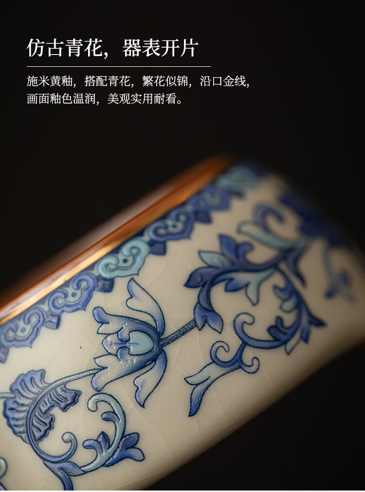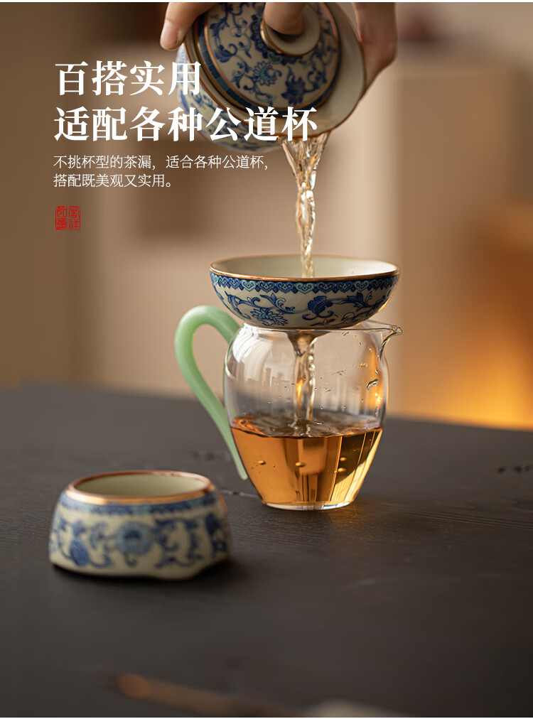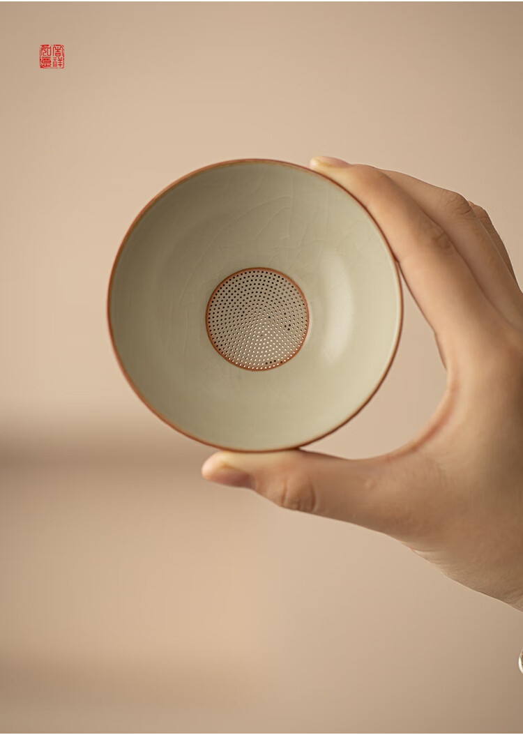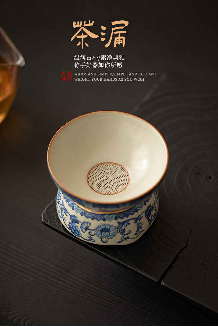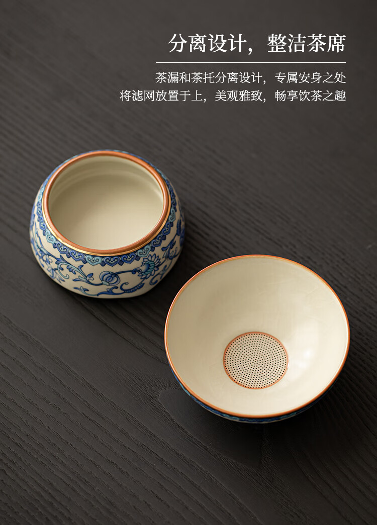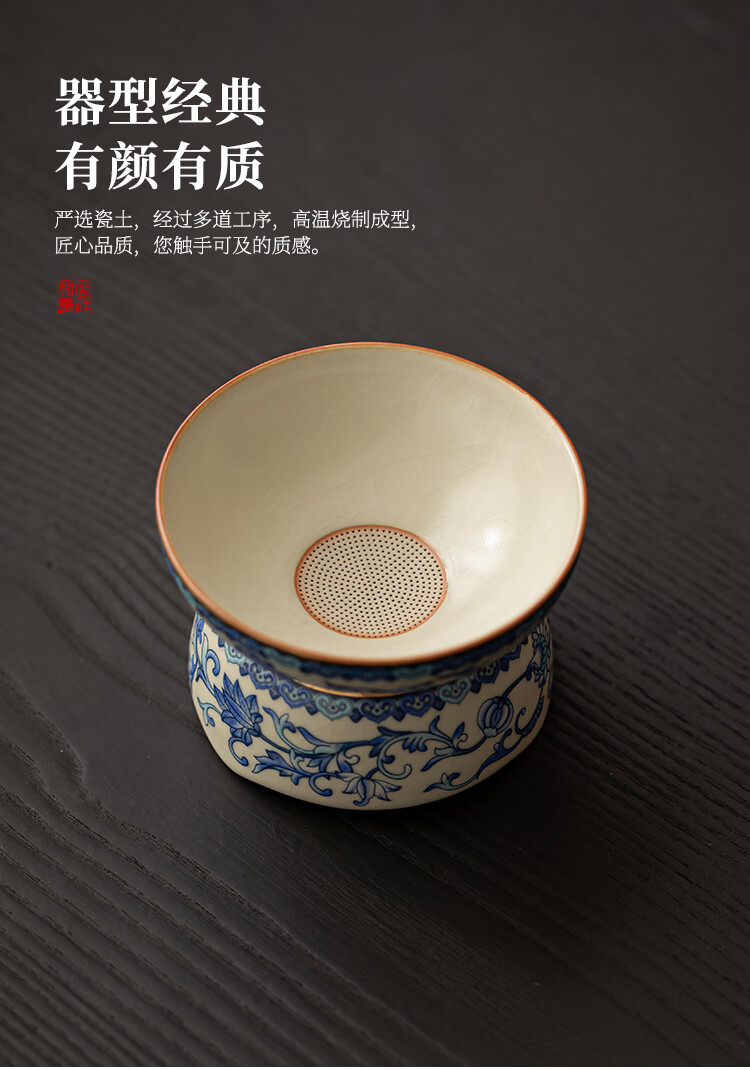 Huale set blue and white Ru kiln tea leak filter tea filter all-in-one tea filter tea brewing artifact tea separator with full flower beige Ru kiln lid bowl three-piece set