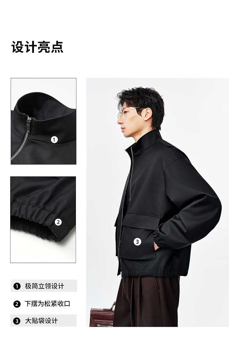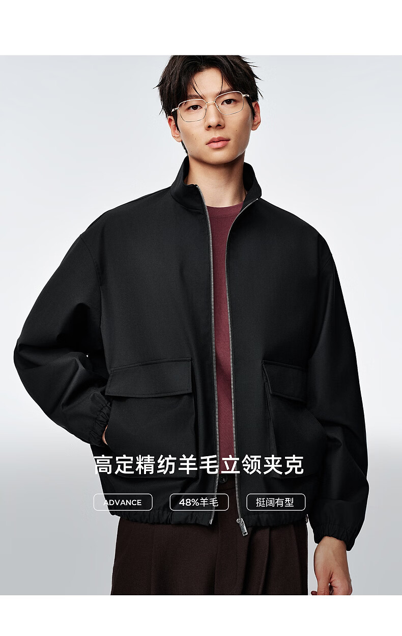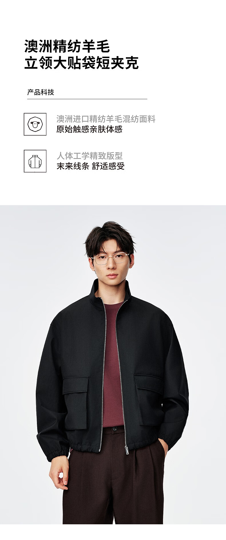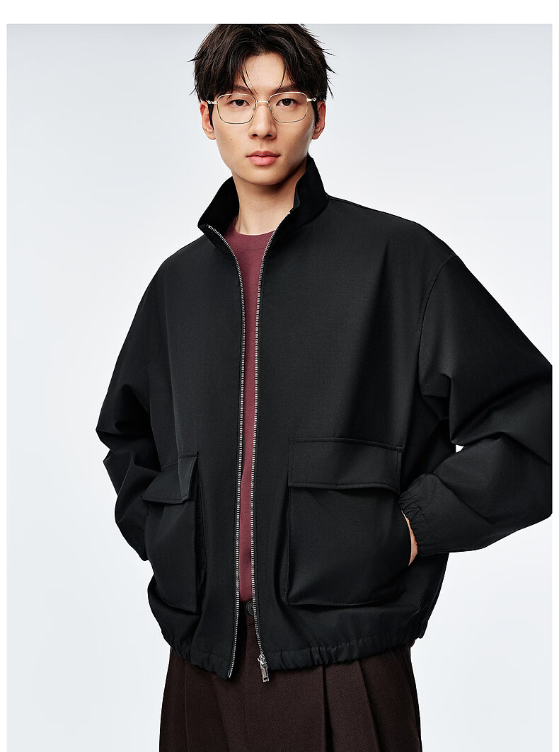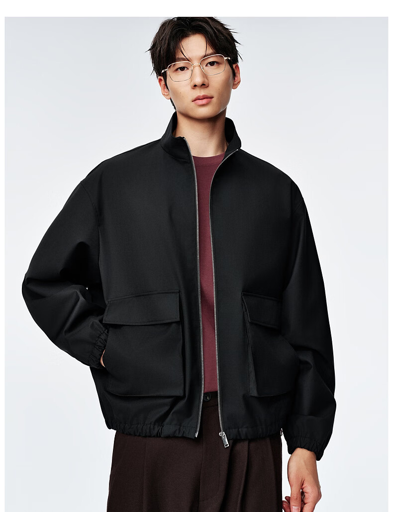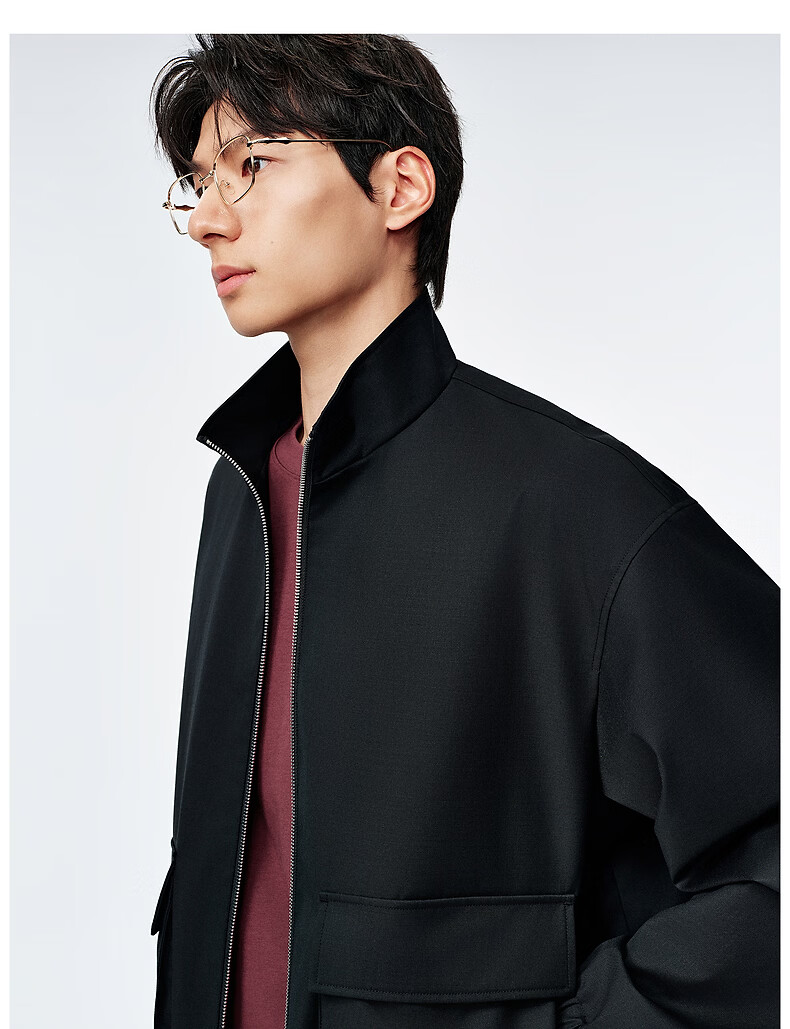 Mr. Cotton Australian imported wool large patch pocket short stand collar jacket for men spring short black jacket for men classic black 2XL