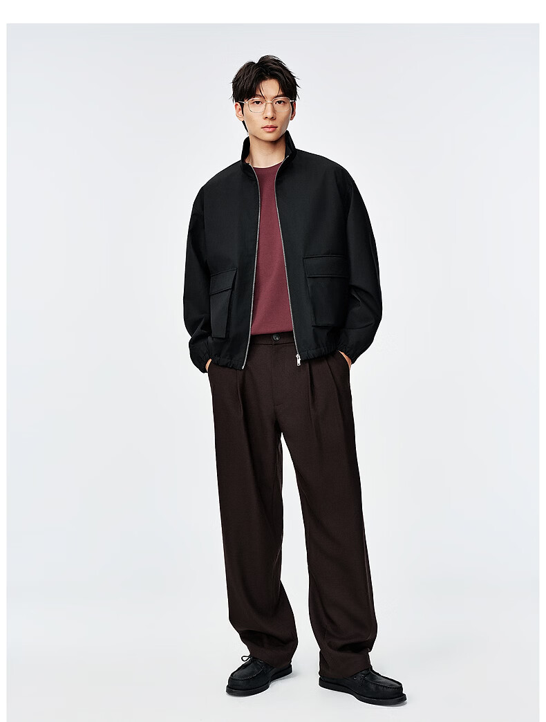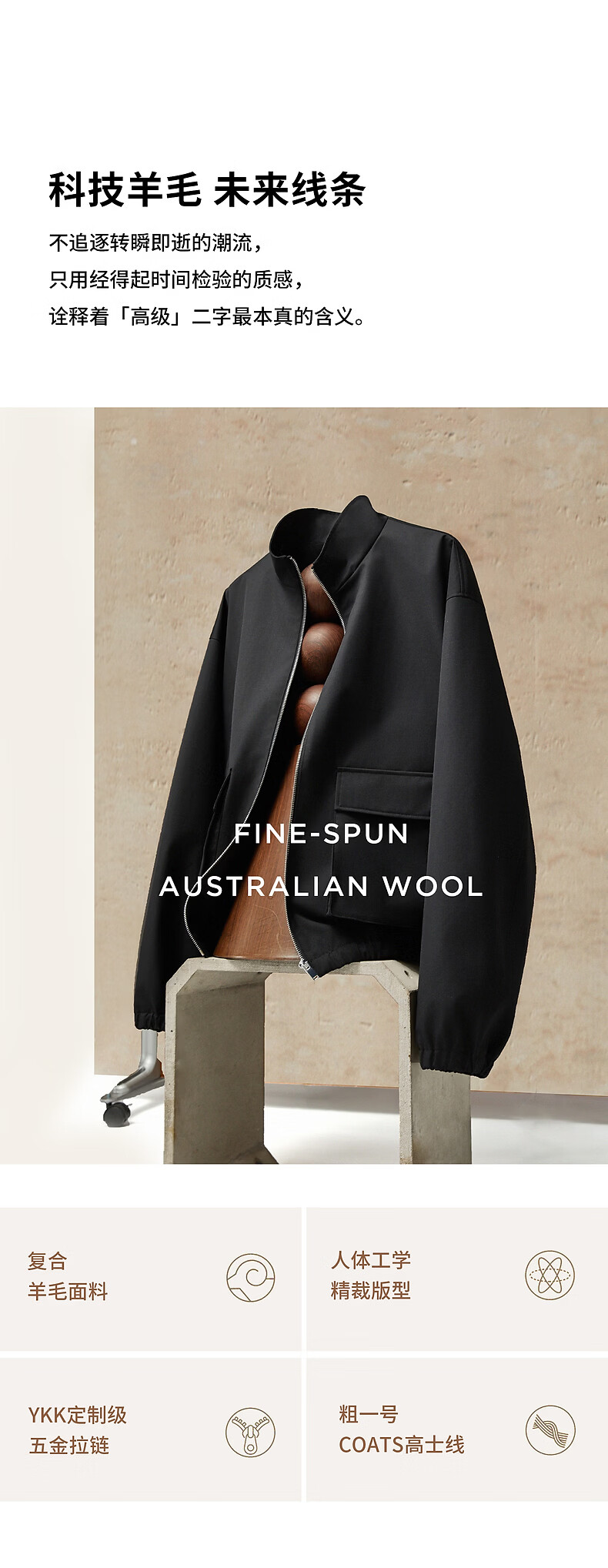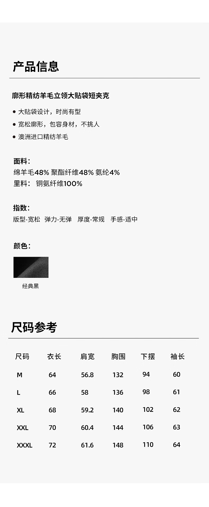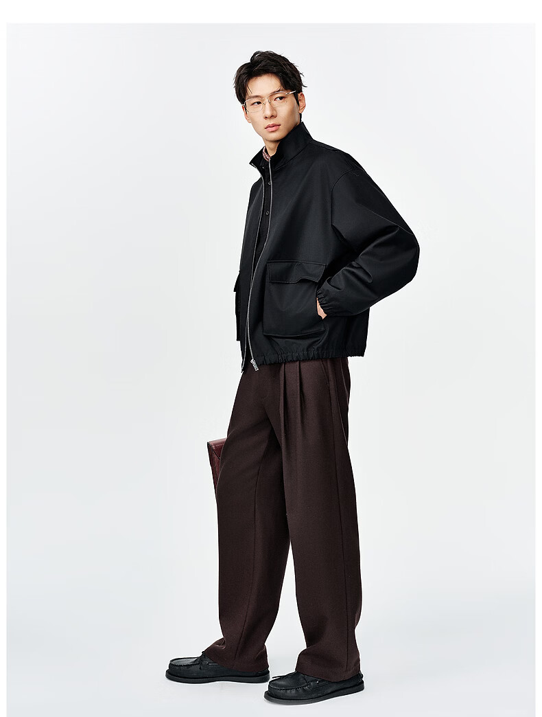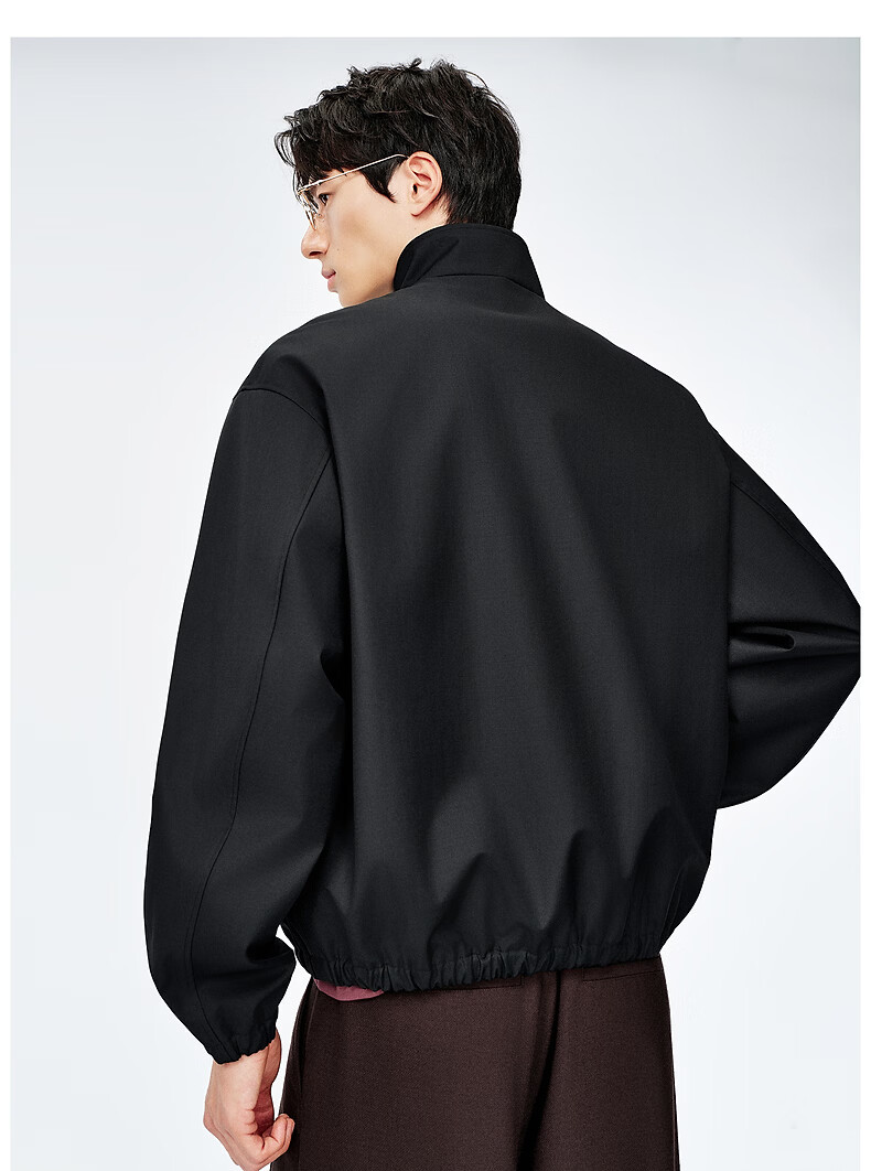 Mr. Cotton Australian imported wool large patch pocket short stand collar jacket for men spring short black jacket for men classic black 2XL