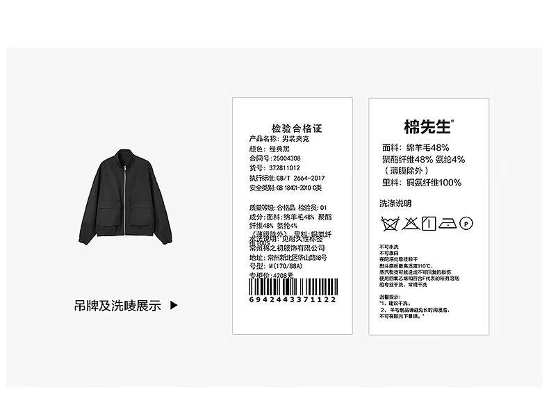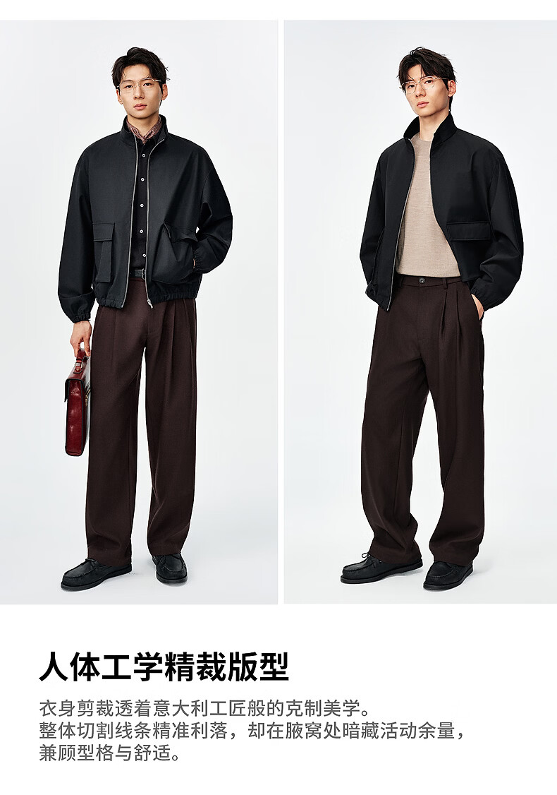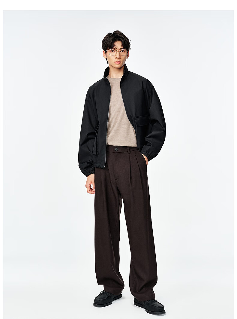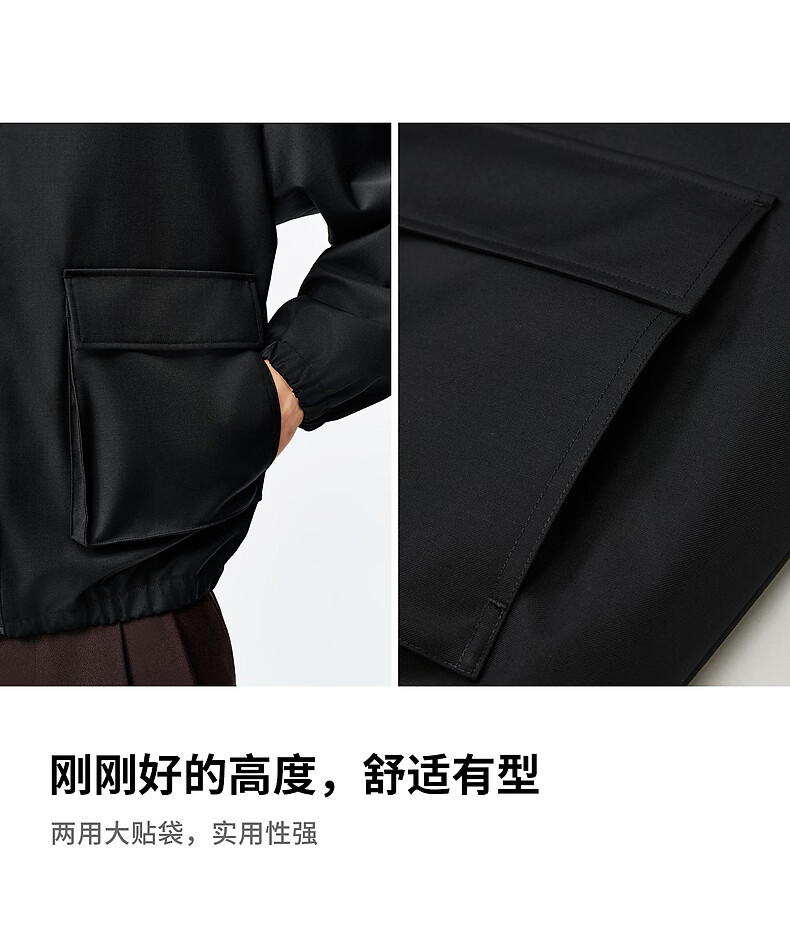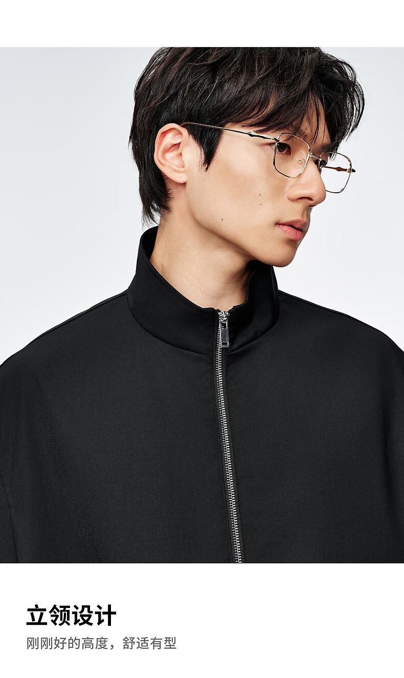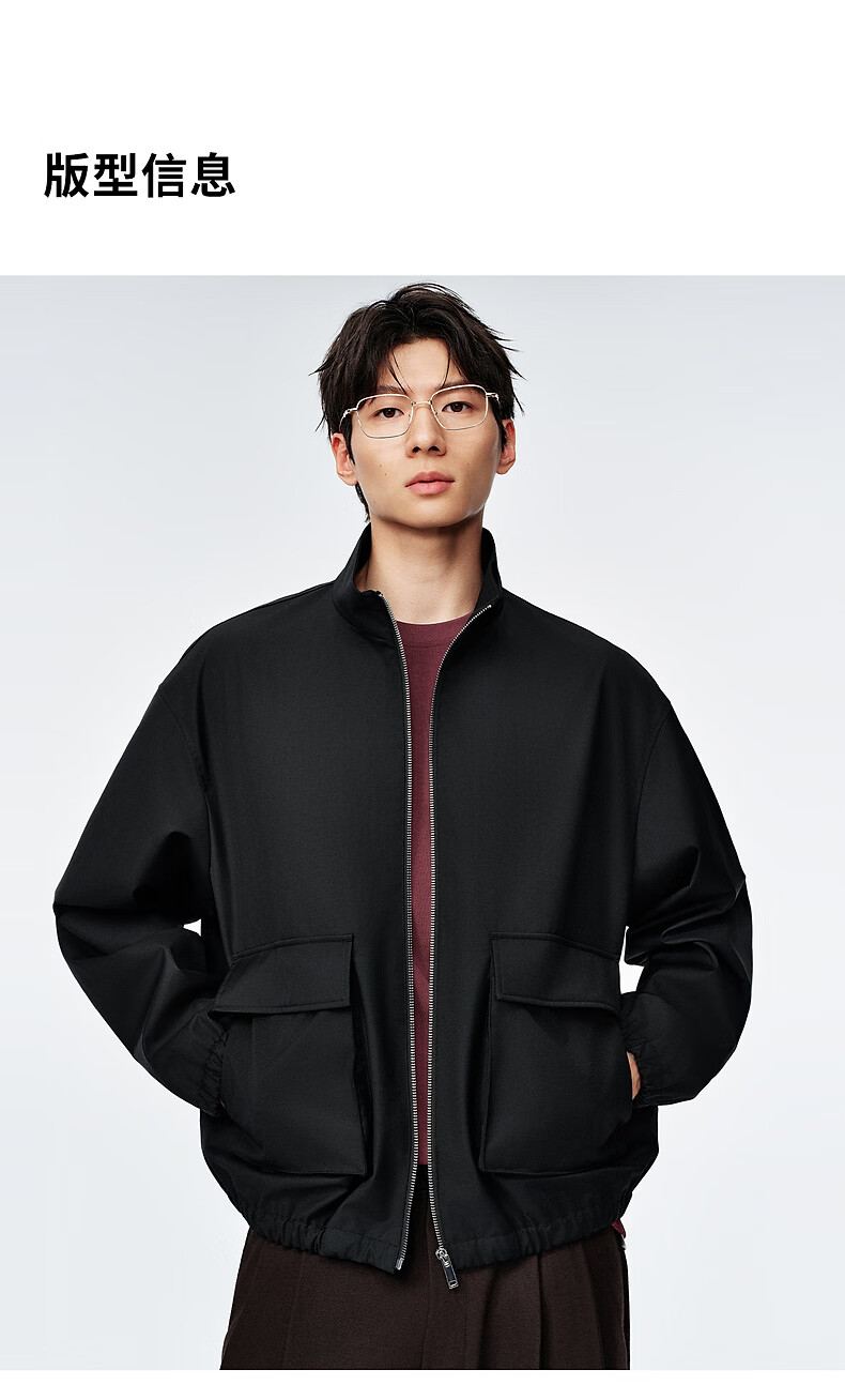 Mr. Cotton Australian imported wool large patch pocket short stand collar jacket for men spring short black jacket for men classic black 2XL