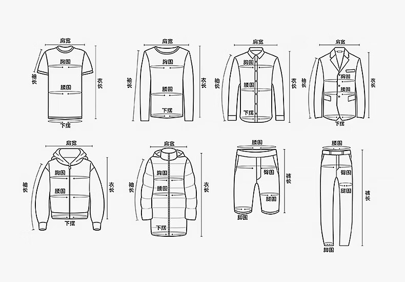 China (cm) 165 / 88-90 170 / 96-98 175 / 108-110 180 / 118-122 185 / 126-130