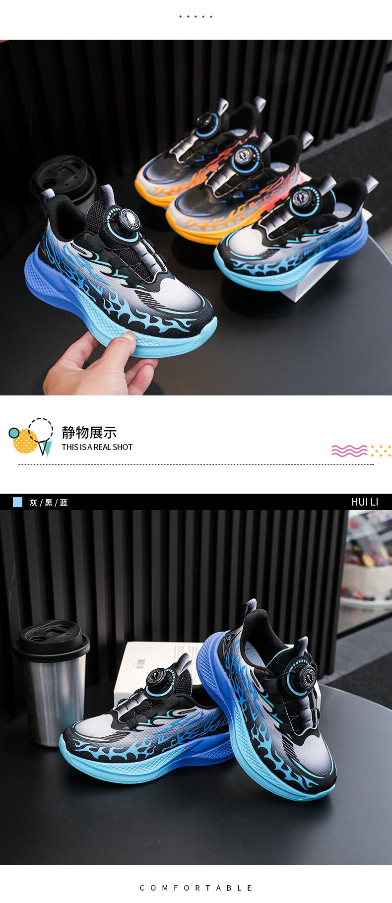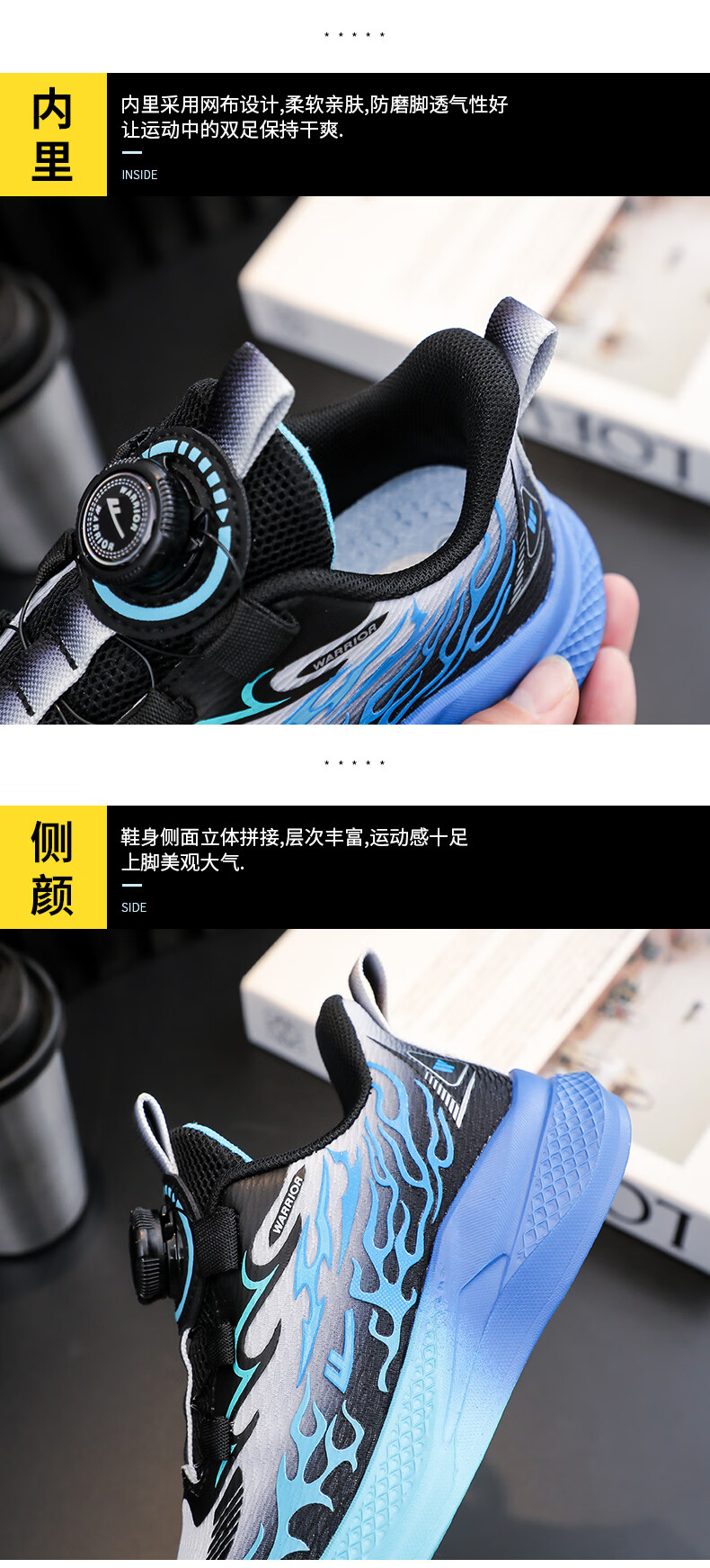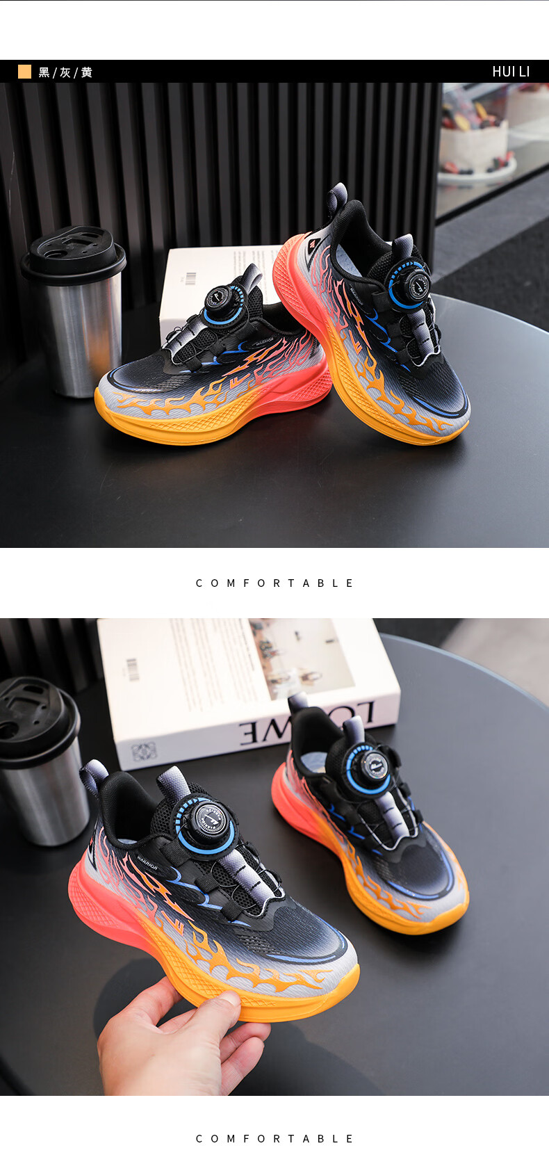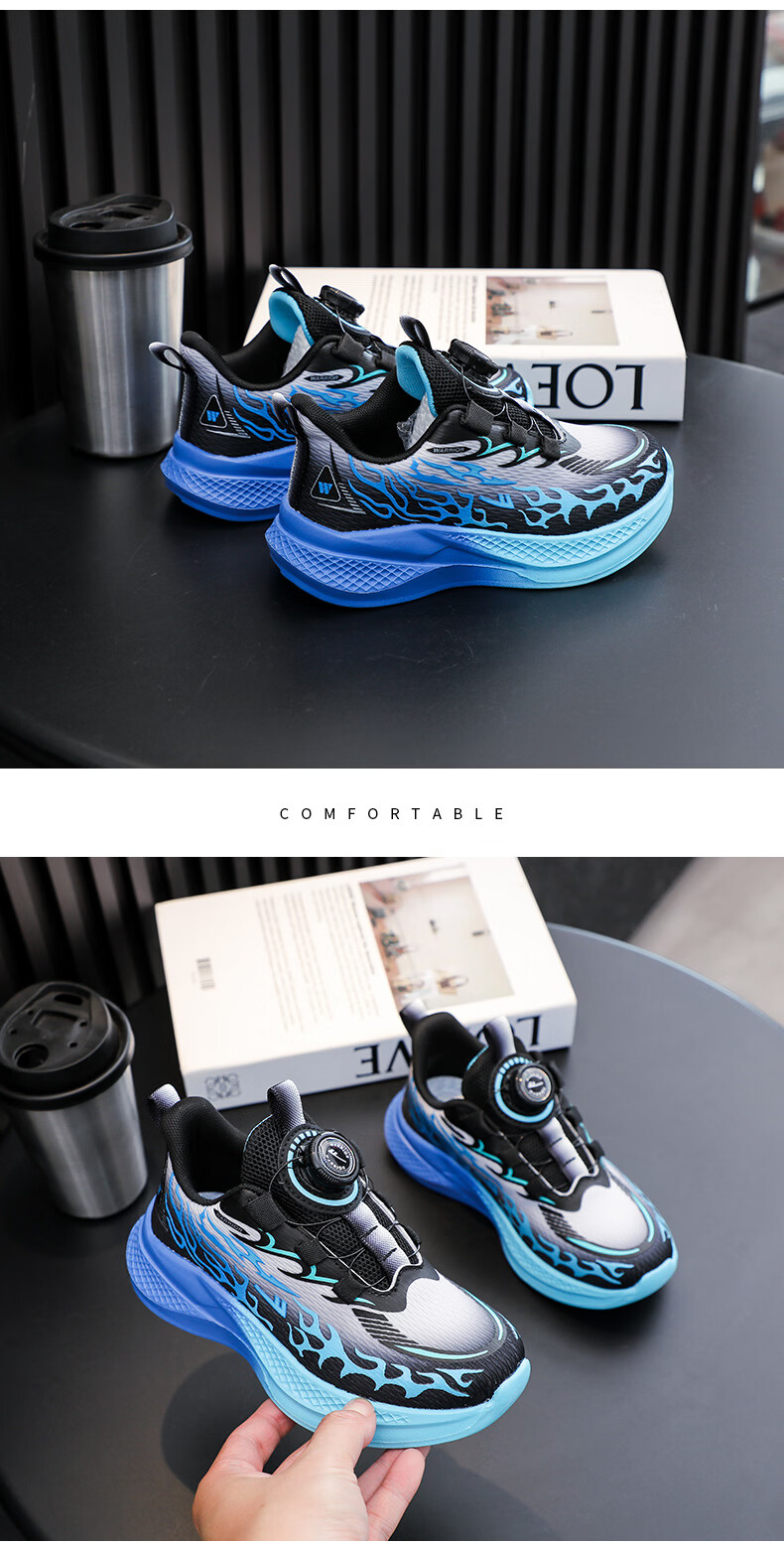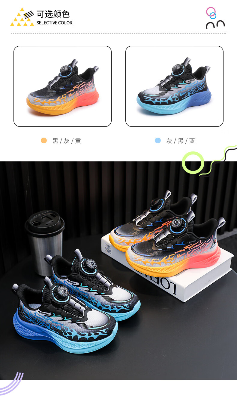 Pull back boys' sports shoes 2026 spring new rotating button mesh breathable lightweight children's running shoes WZ-C512N black gray/yellow (mesh) 26 inner length 16.5/suitable for foot length 15.5