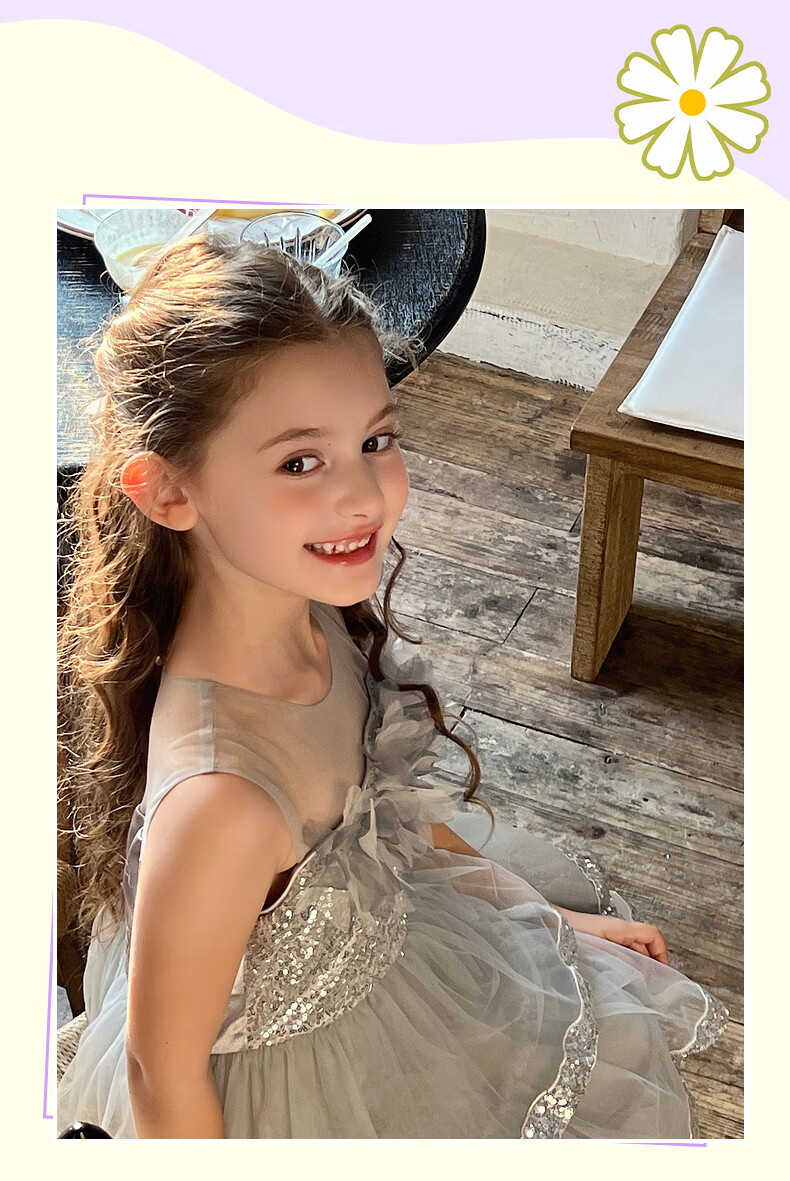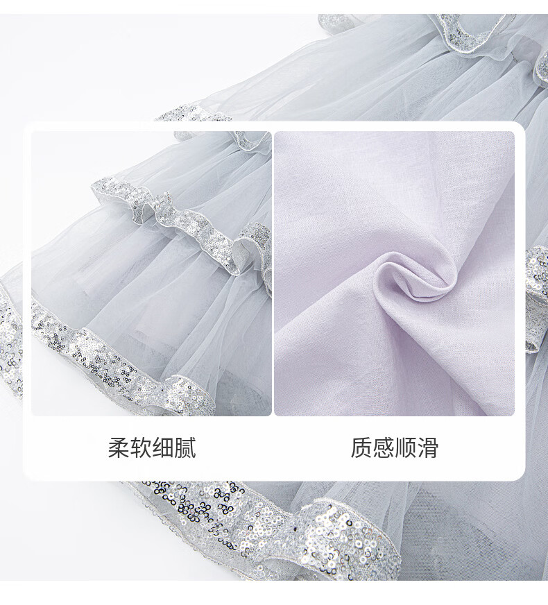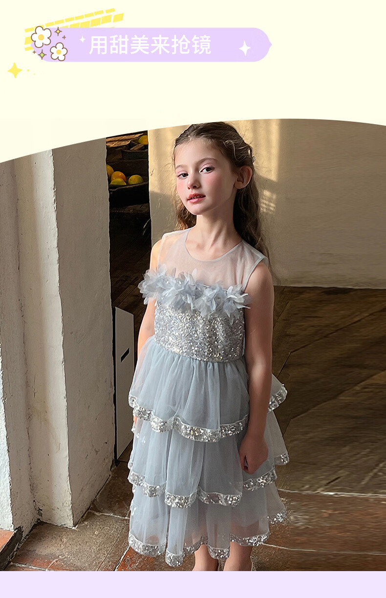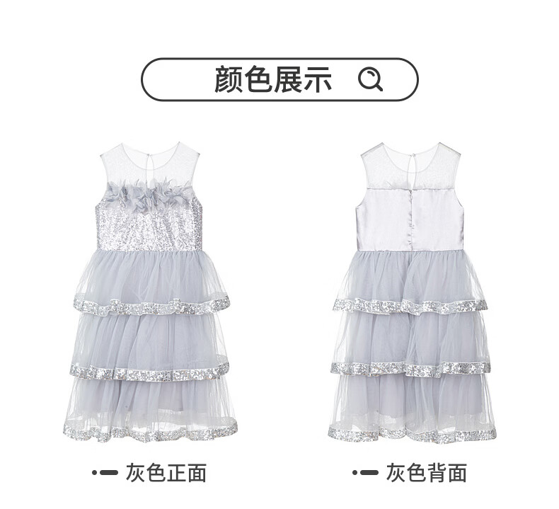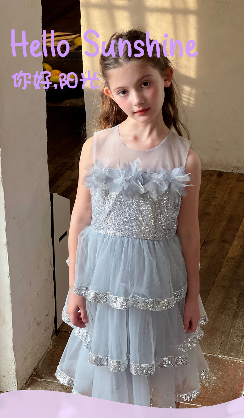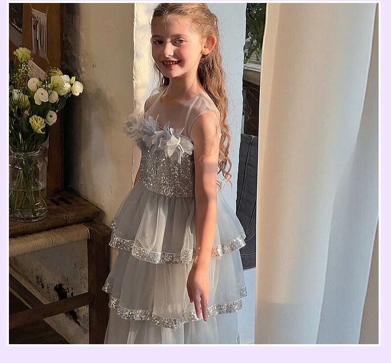 Fuluomi Fuluomi girls princess dress summer new children's sweet sequined mesh dress gray 110