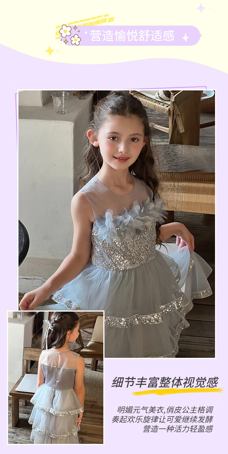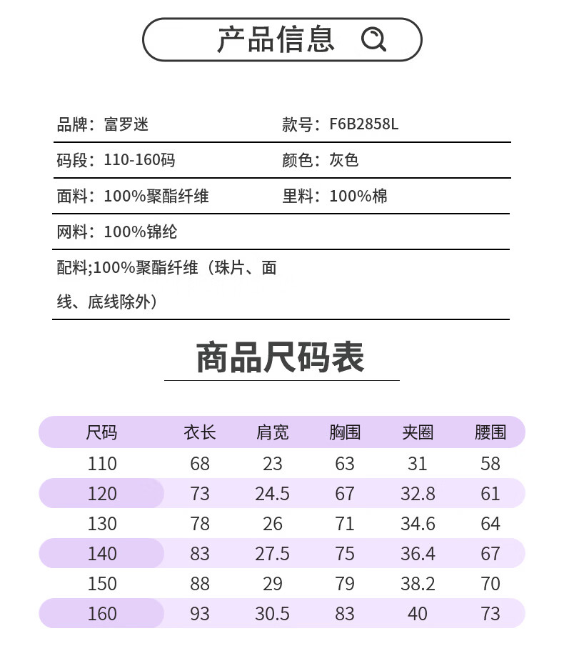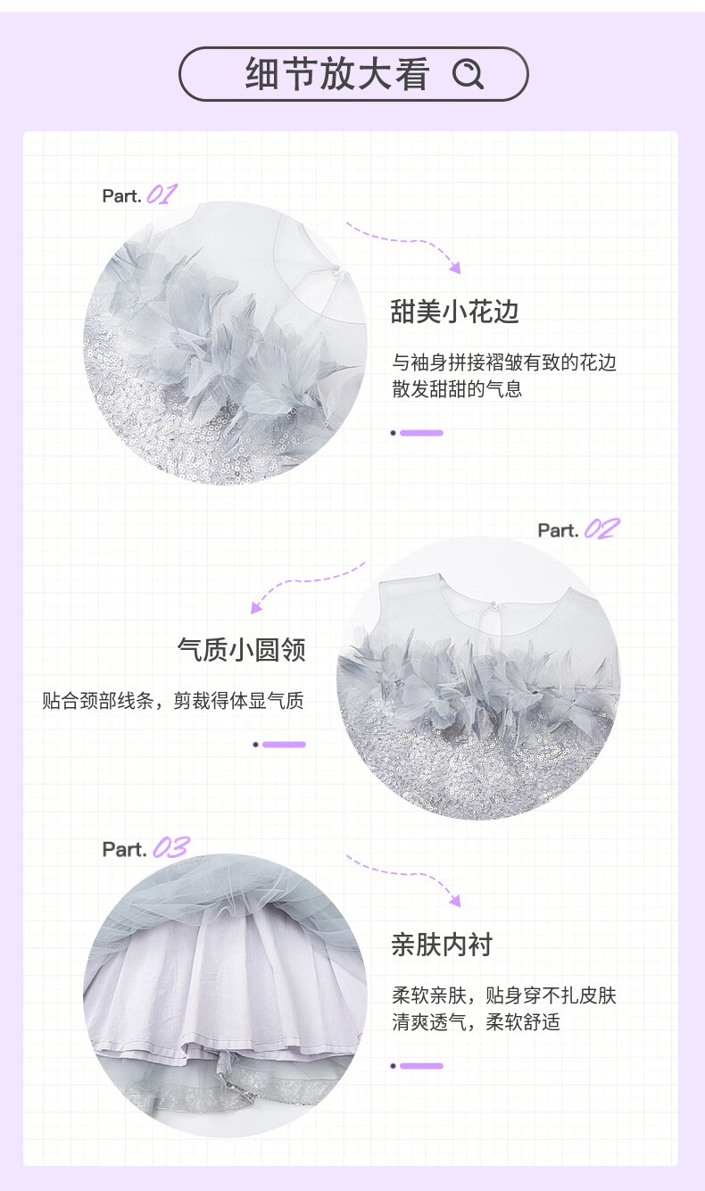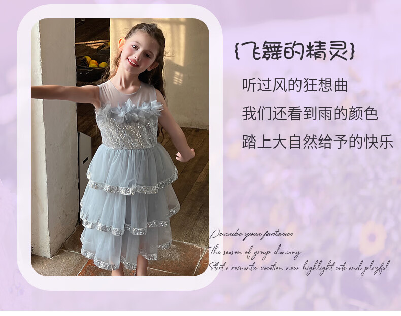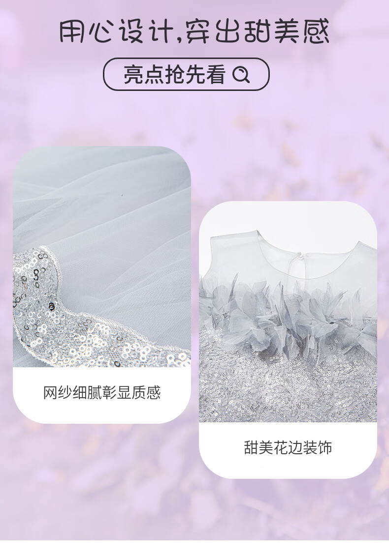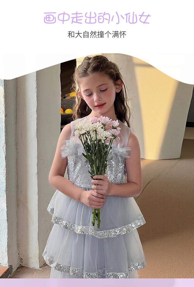 Fuluomi Fuluomi girls princess dress summer new children's sweet sequined mesh dress gray 110