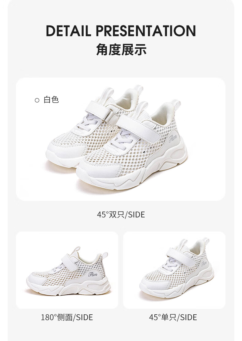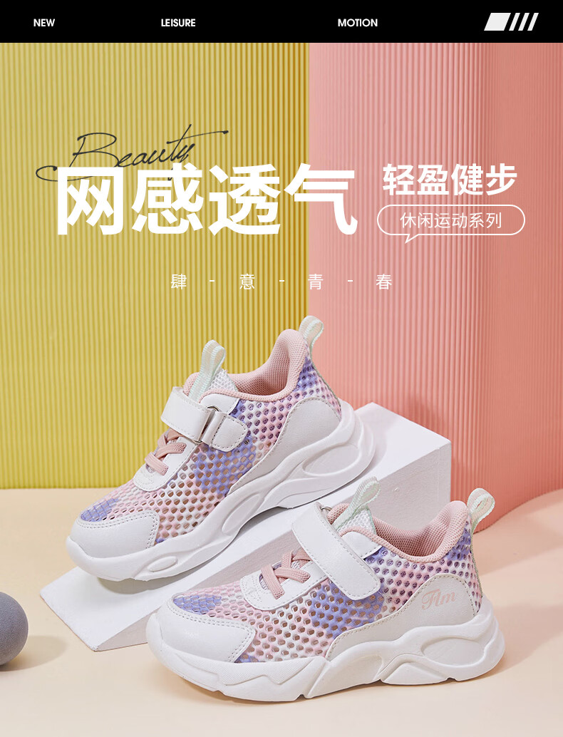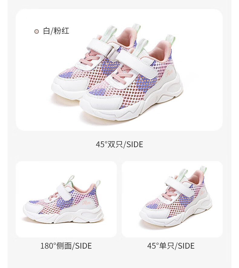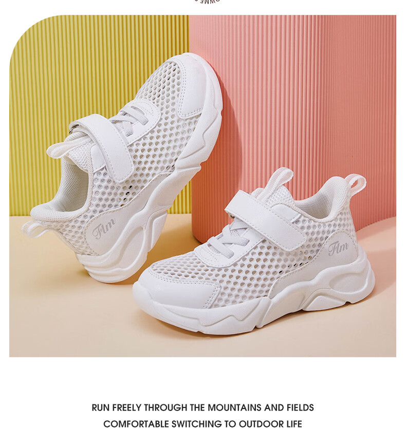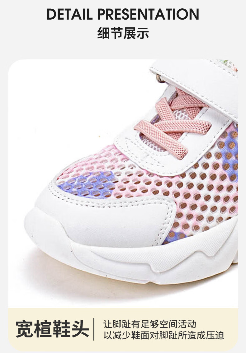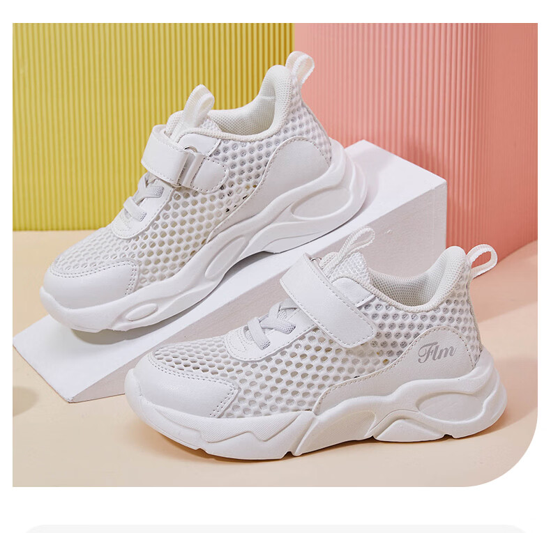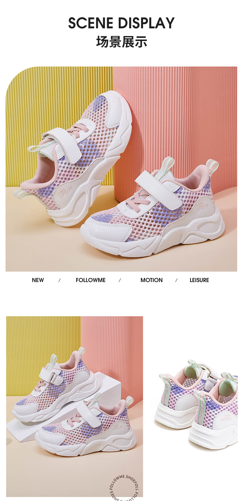 Fuluo Mi Girls Fashionable Versatile Mesh Sports Shoes Spring and Autumn Single Mesh Fashion Running Shoes Comfortable Children's Shoes Students White/Pink 35