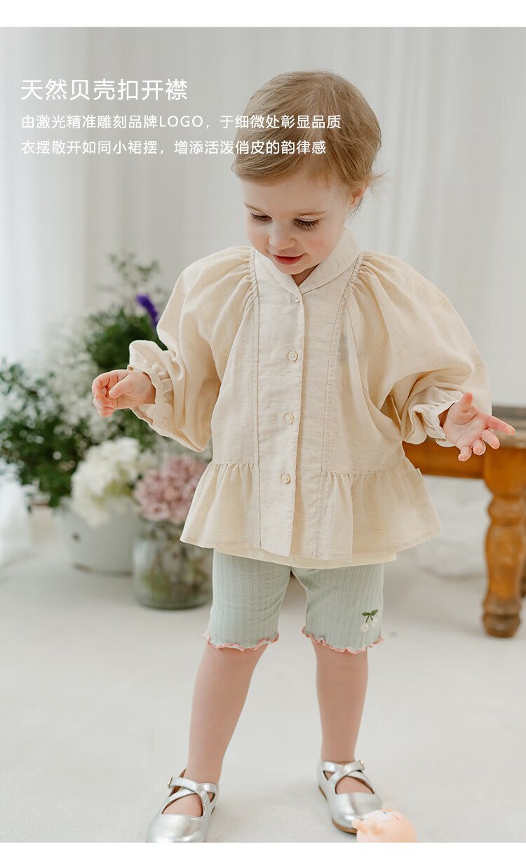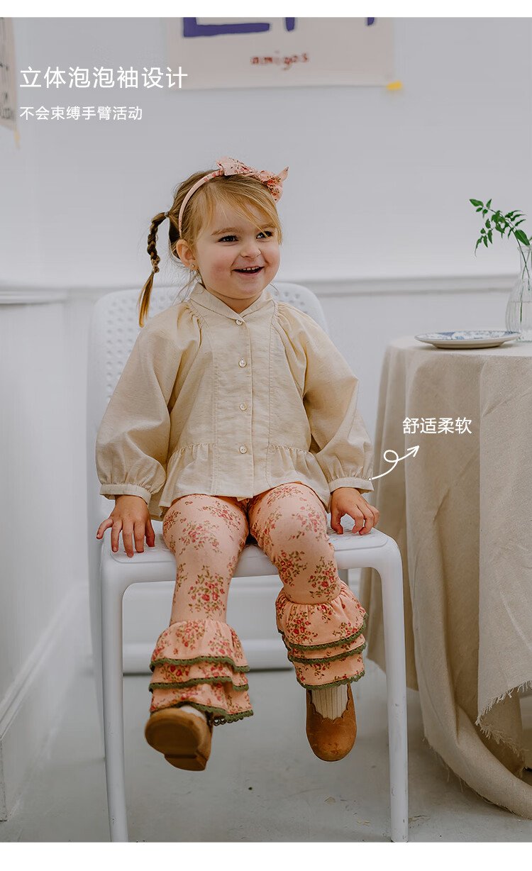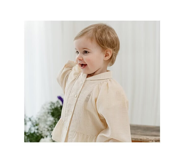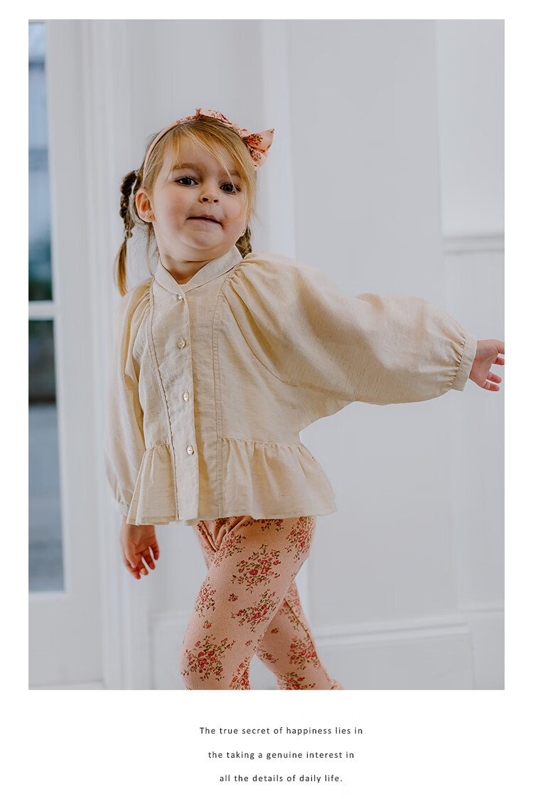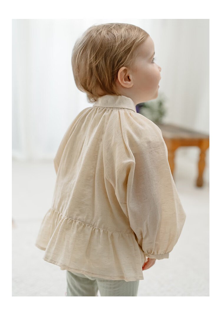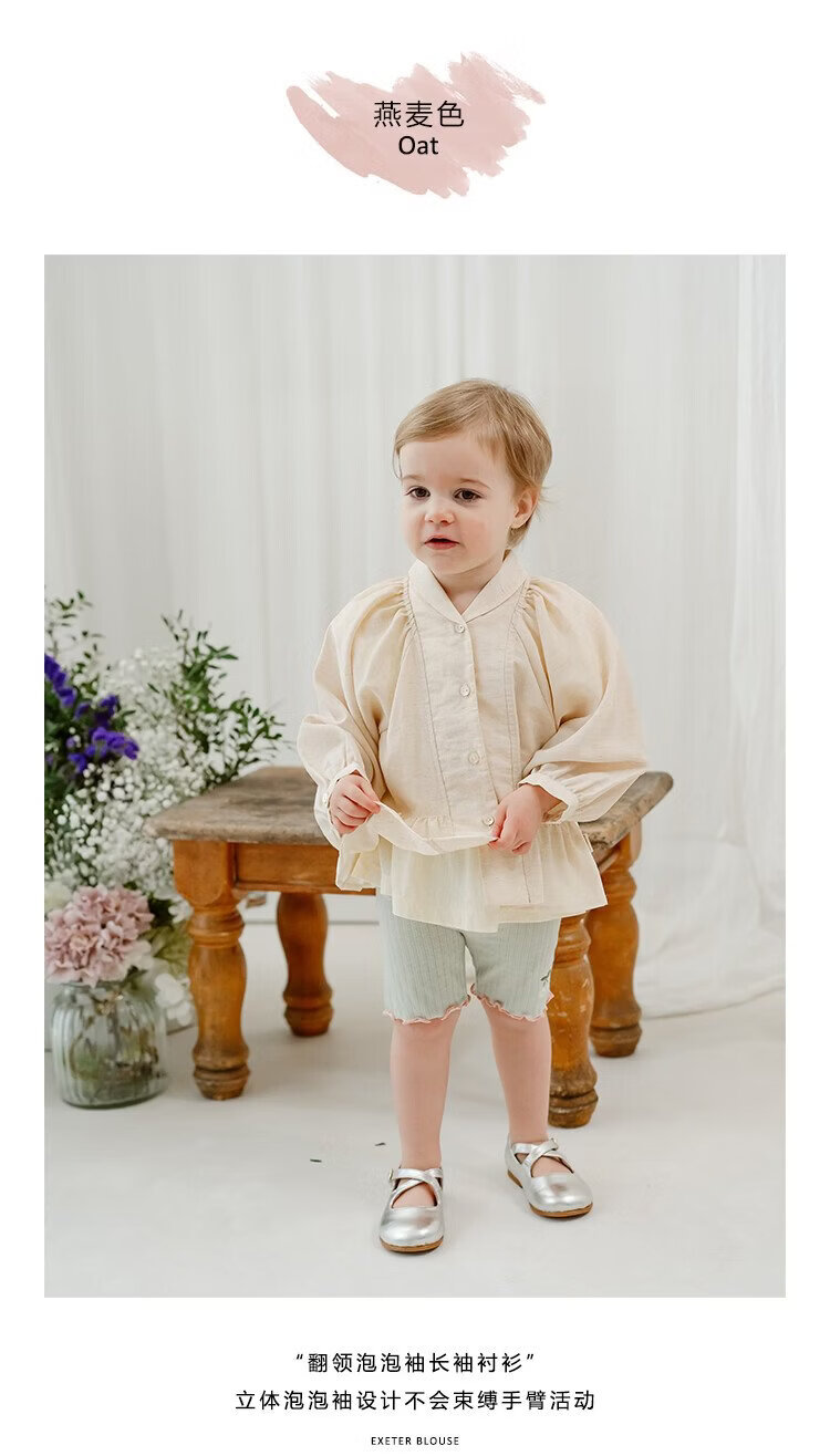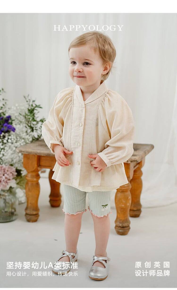 Happyology British children's spring new baby shirt lapel embroidered top puff sleeve long-sleeved shirt oatmeal color 92 (92cm)