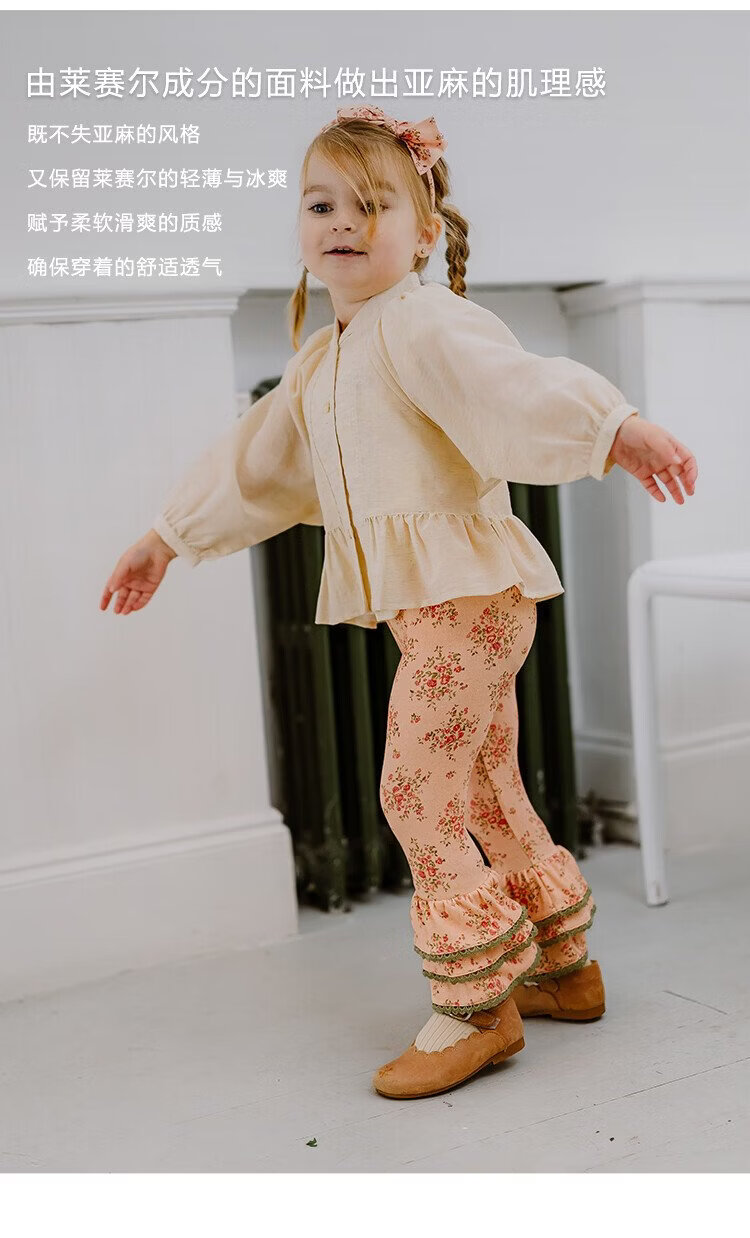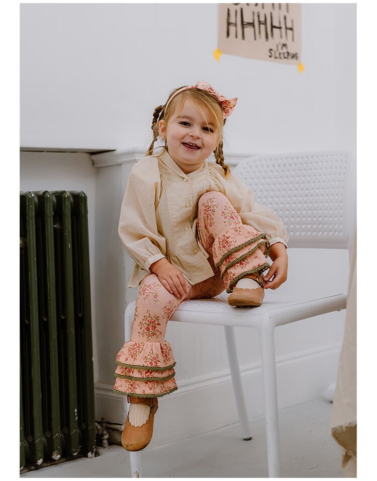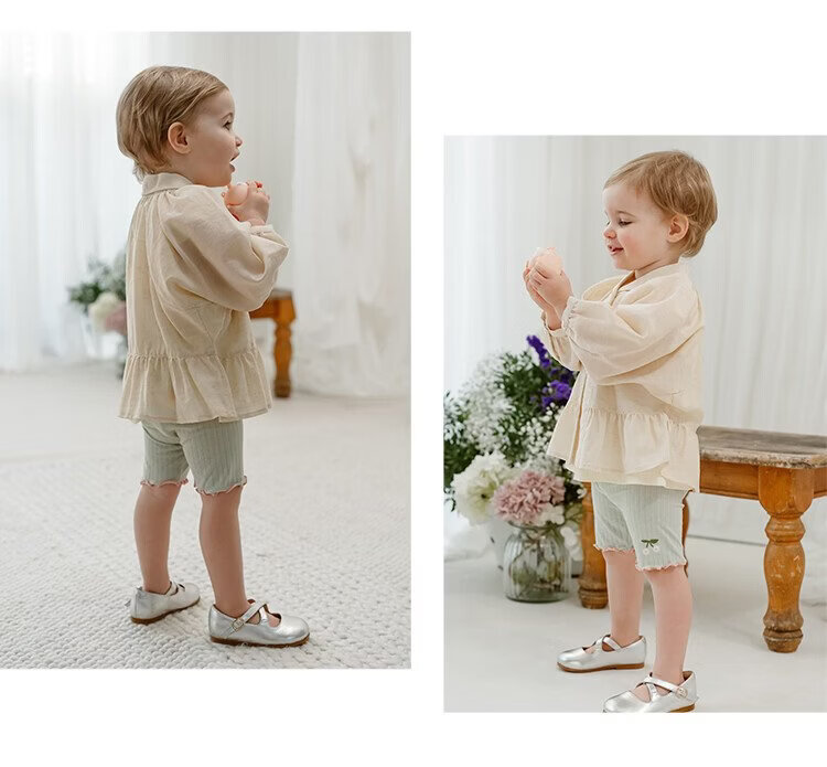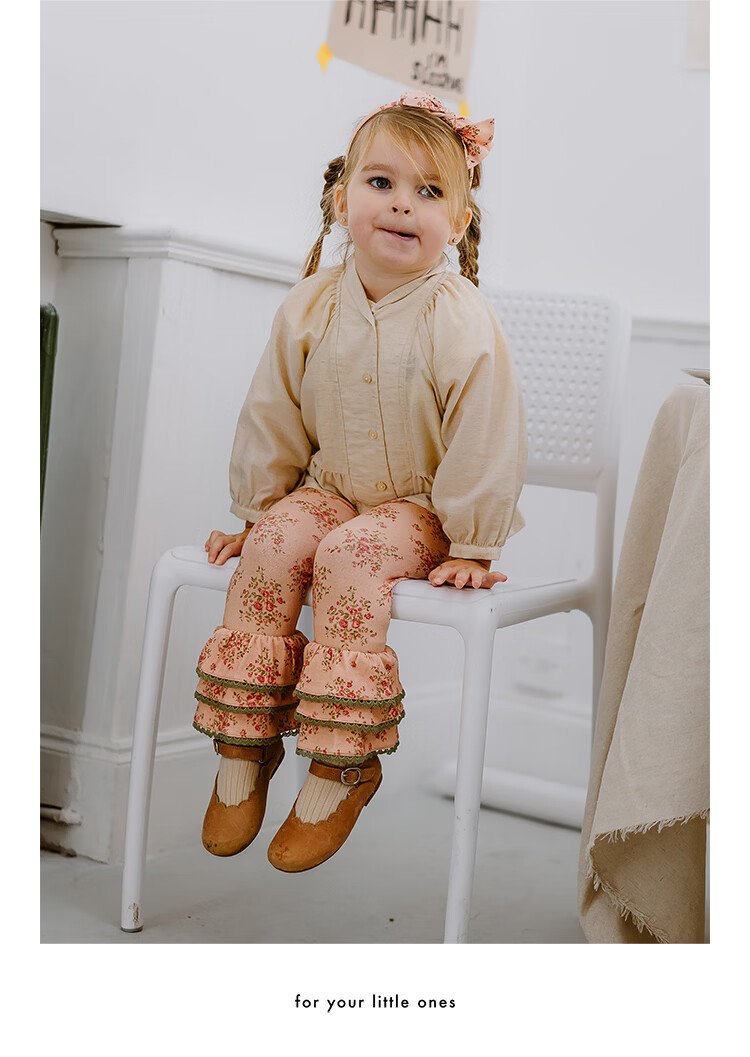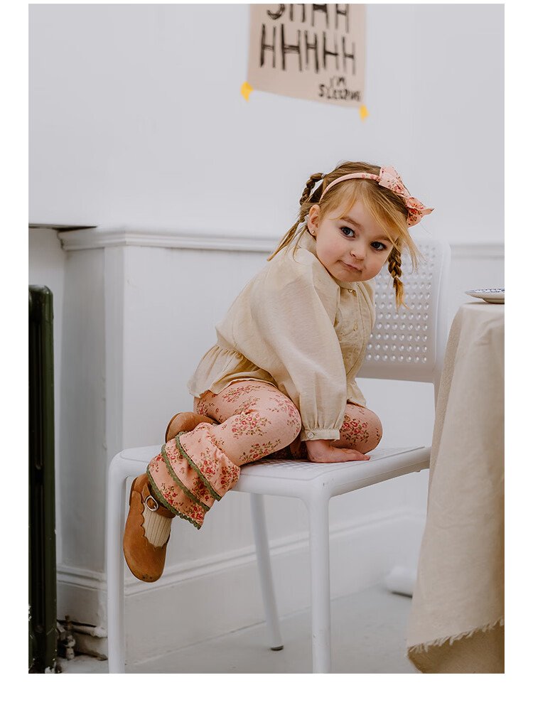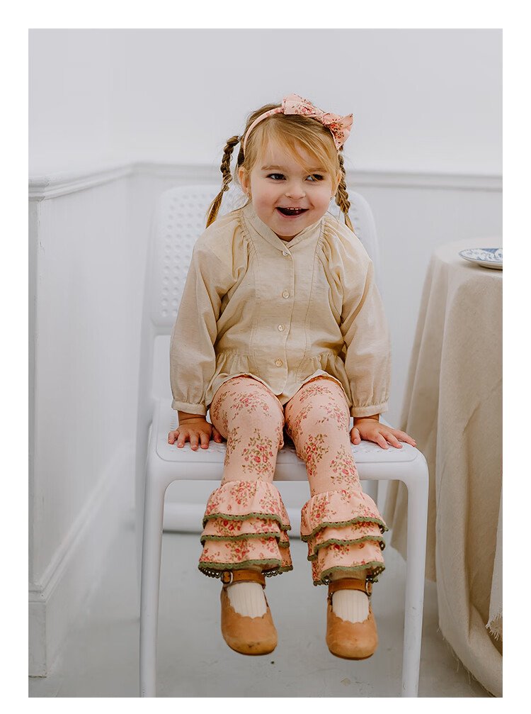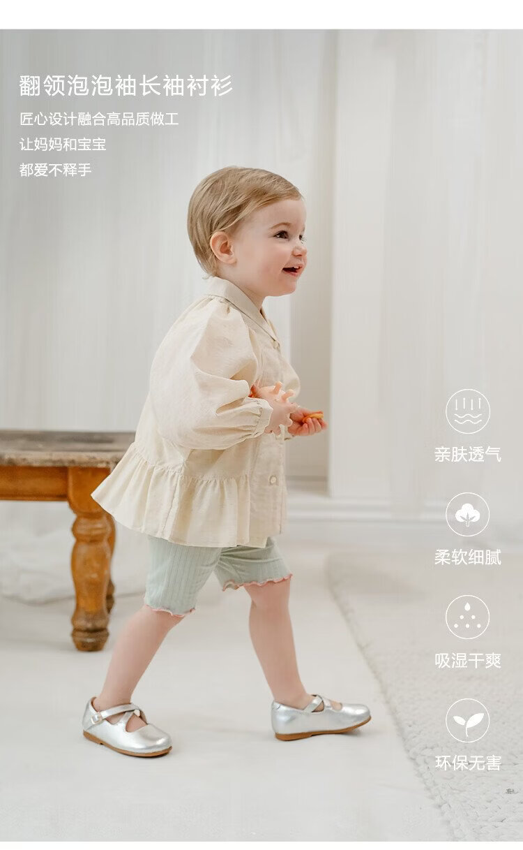 Happyology British children's spring new baby shirt lapel embroidered top puff sleeve long-sleeved shirt oatmeal color 92 (92cm)