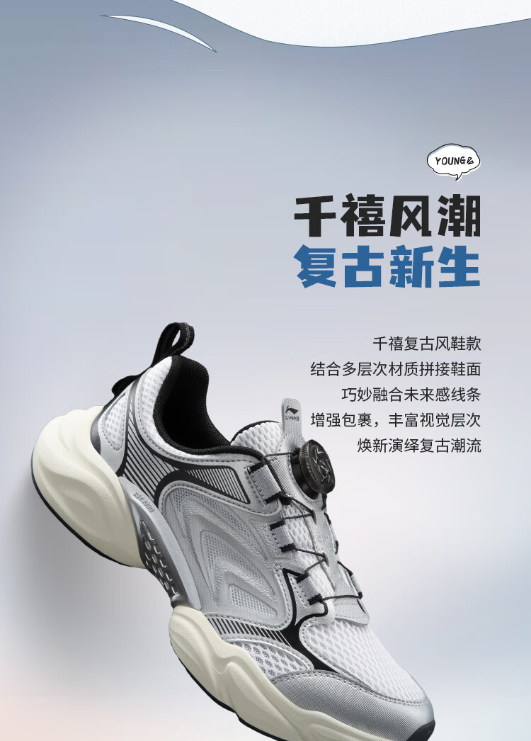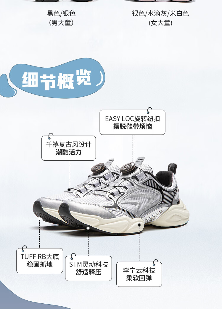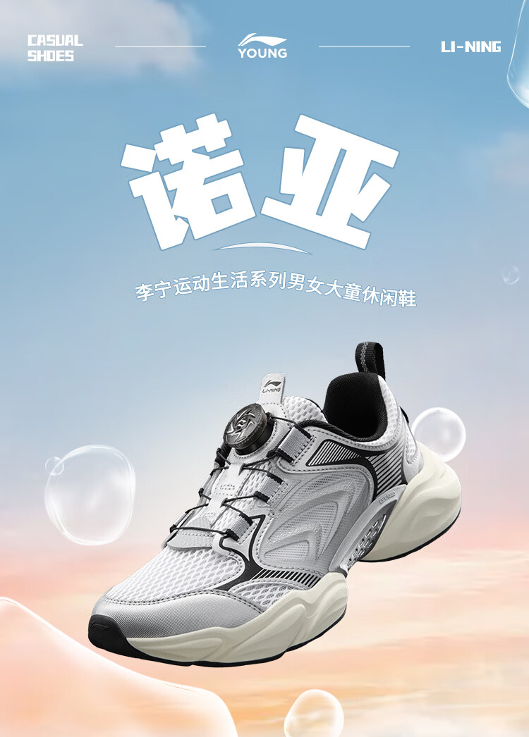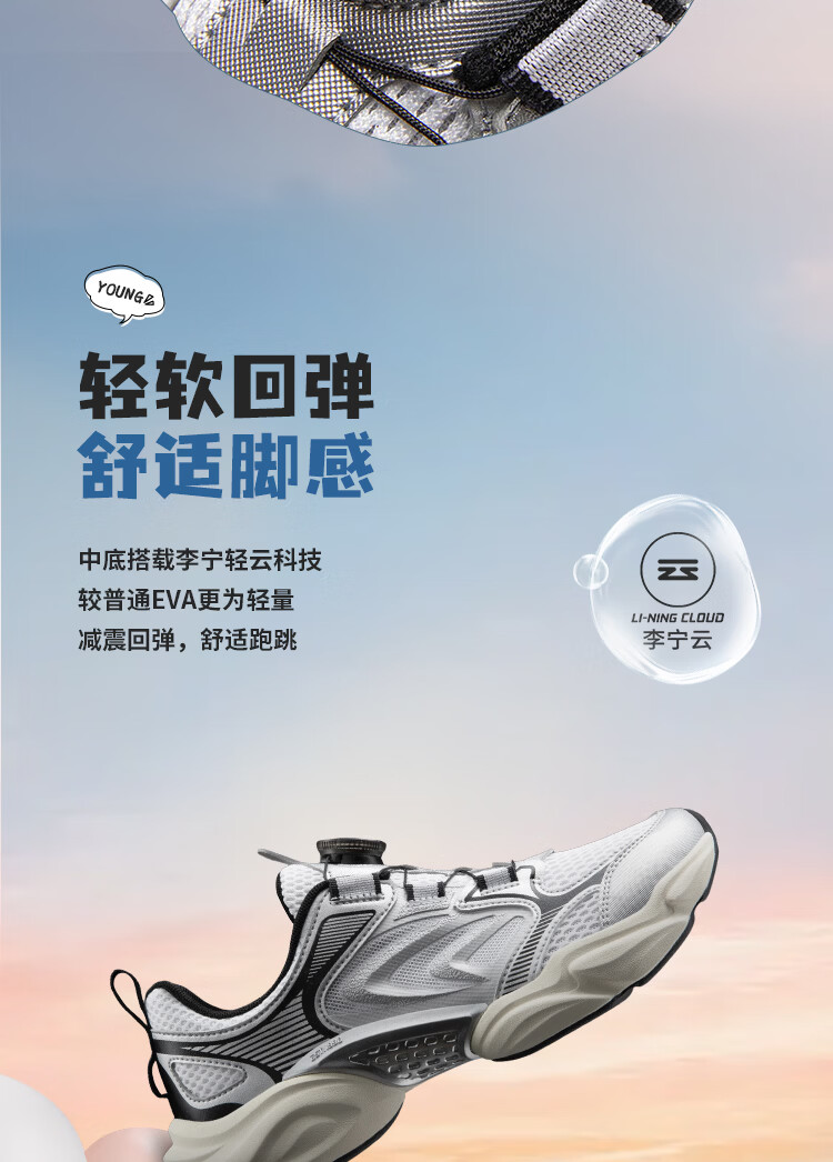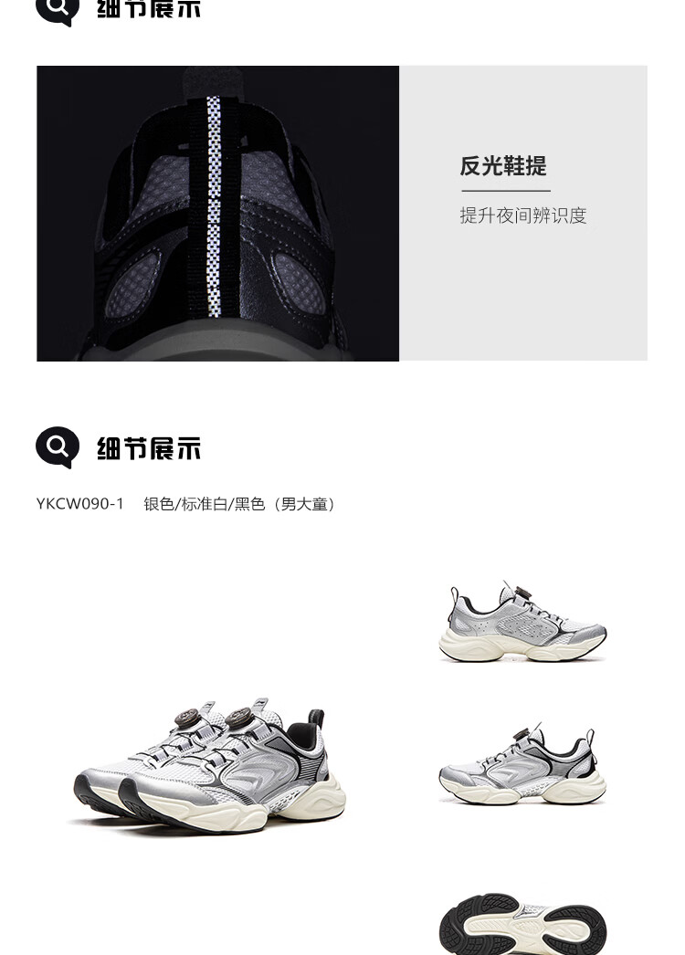 Li Ning Children's Shoes Children's Sports Shoes for Men and Women Big Children Noah Reflective Soft Rebound Casual Shoes YKCW090 Silver/Standard White/Black-1 33
