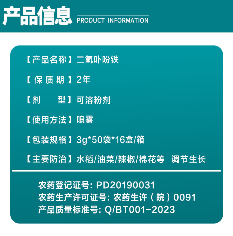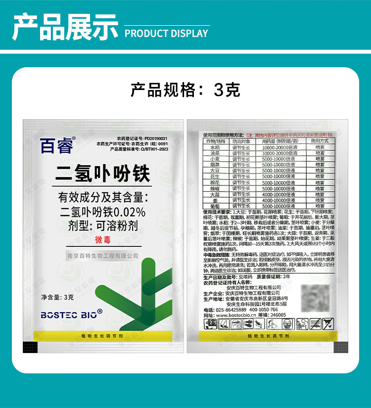 Bairui 0.02% iron chlorin for rice, wheat and cotton to increase fruit setting rate genuine agricultural growth regulator 3g
