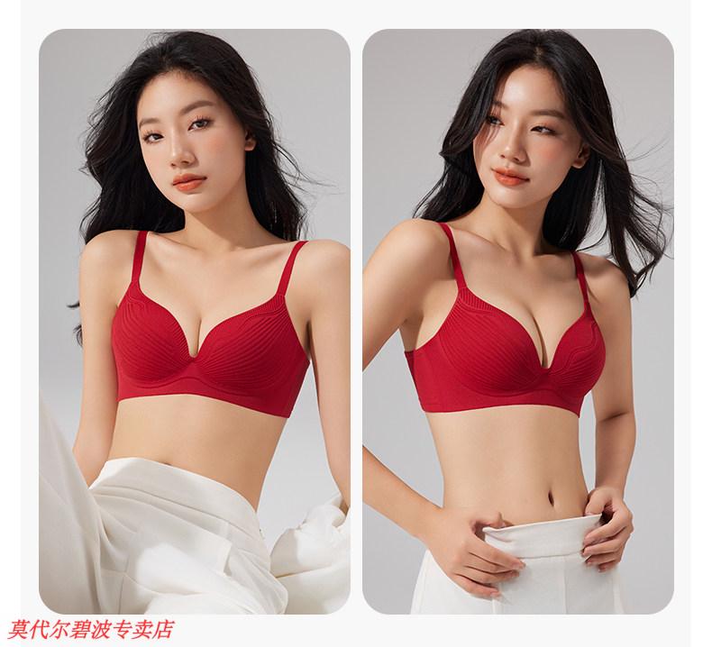 Modal Red Underwear Women's Zodiac Year Gift Box Gathering Breasts and Preventing Sagging Bridal Wedding Soft Support Bra Burgundy Strong Support Anti-Sagging S 32/70ABC (Approximately 90-100Jin Jin is equal to 0.5kg)