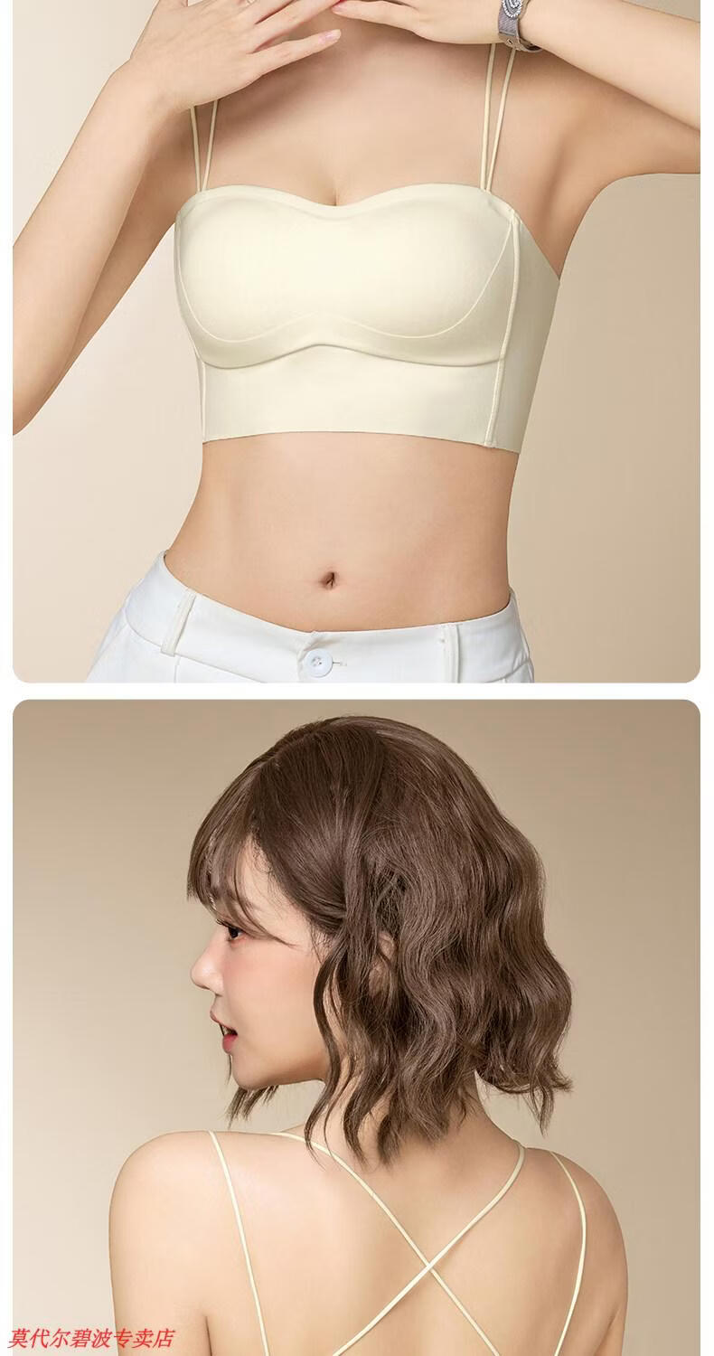 Modal Beautiful Back Bra 2026 New Small Breast Gathered Thin Shoulders Seamless Breathable Tube Top Wrapped Breast Invisible Sling Bra Skin Color + Almond Gray 4XL 38/85 AB Cup (C cup can be tried, returns and exchanges included)