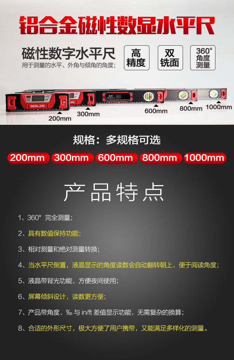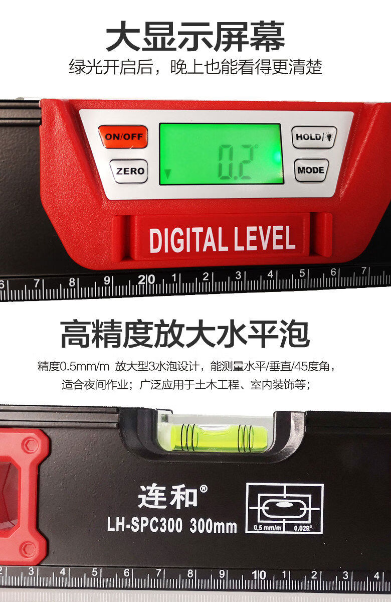 Fantasy and strong magnetic digital display level ruler slope ruler angle ruler electronic slope measuring instrument inclinometer digital level instrument 120cm digital display magnetic level ruler upgrade