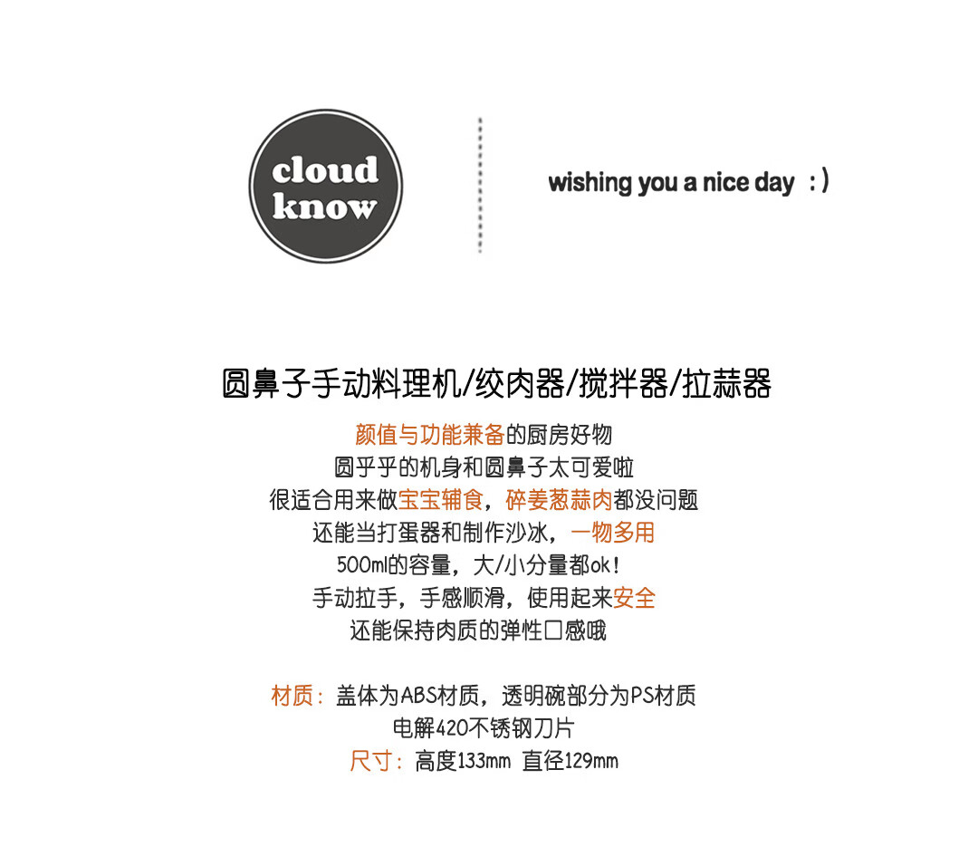 RSRDDY Korean round-nosed garlic masher, garlic masher, household kitchen manual meat grinder, garlic masher, white