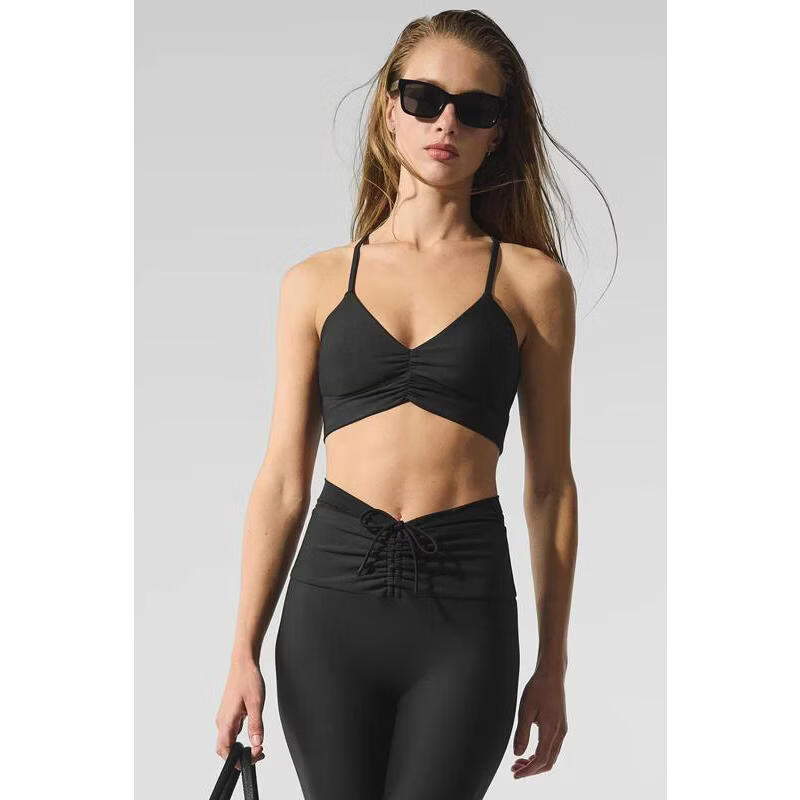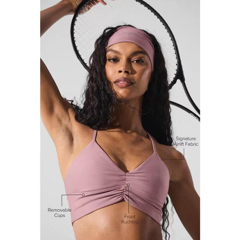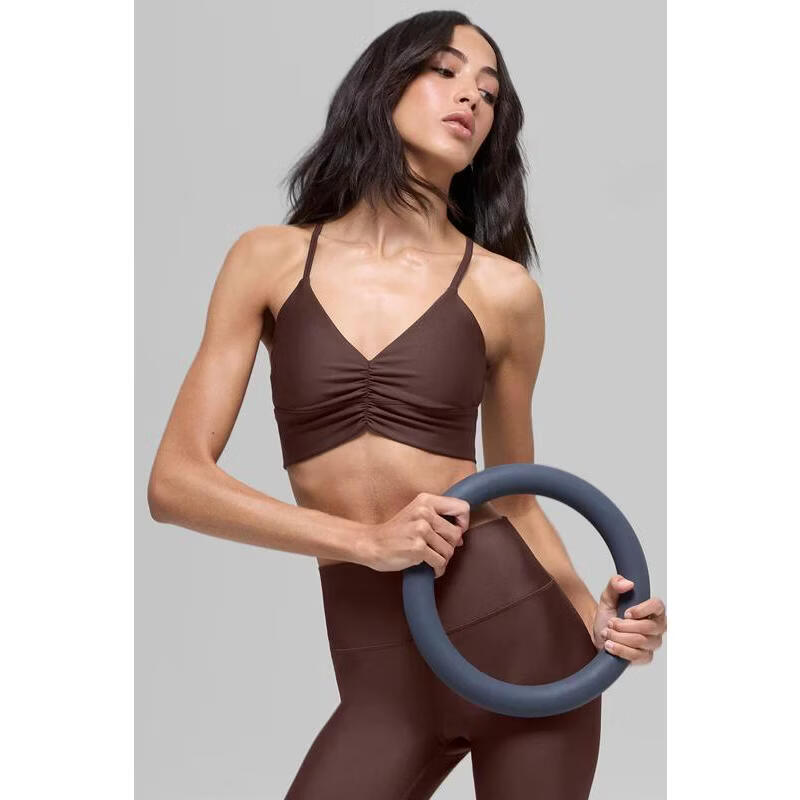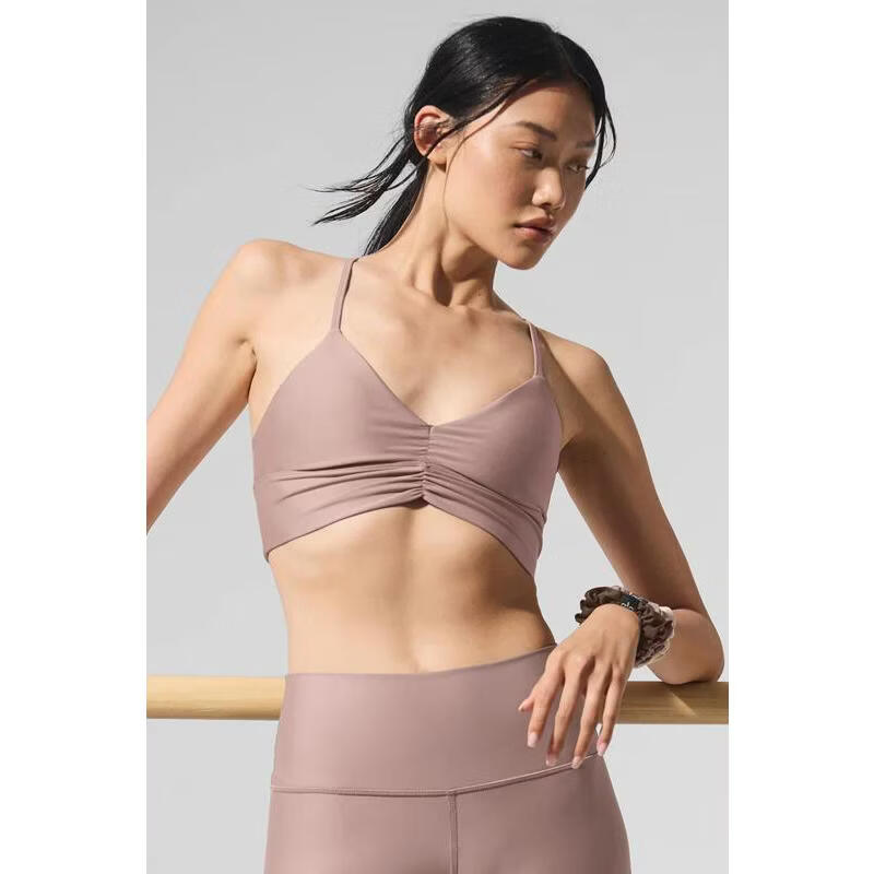 ALO YOGA Women's Bra Support Seamless Thin Push-Up Sports Daily Bra Simple Macadamia One Size | S