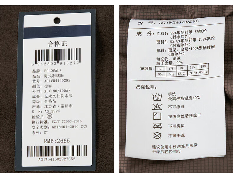 POLOWALK Men's Leather Jacket 2025 Winter New Product 90 Goose Down Retro Splicing Short Zipper Down Jacket Brown Coffee M