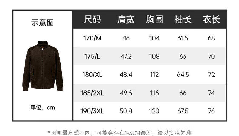 China (cm) 165 / 88-90 170 / 96-98 175 / 108-110 180 / 118-122 185 / 126-130